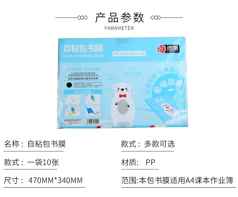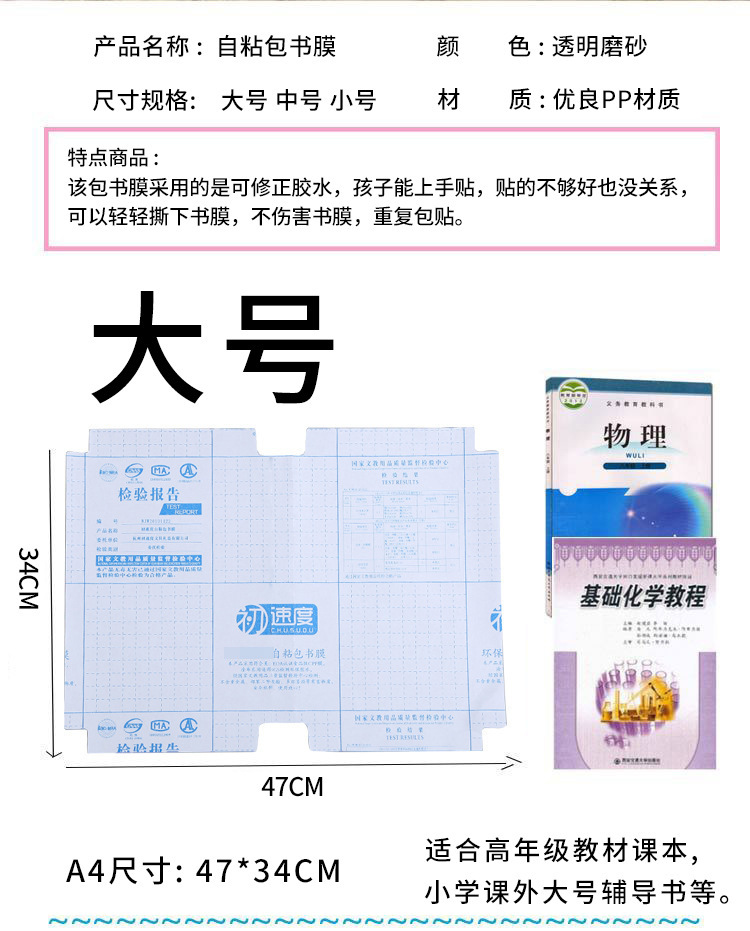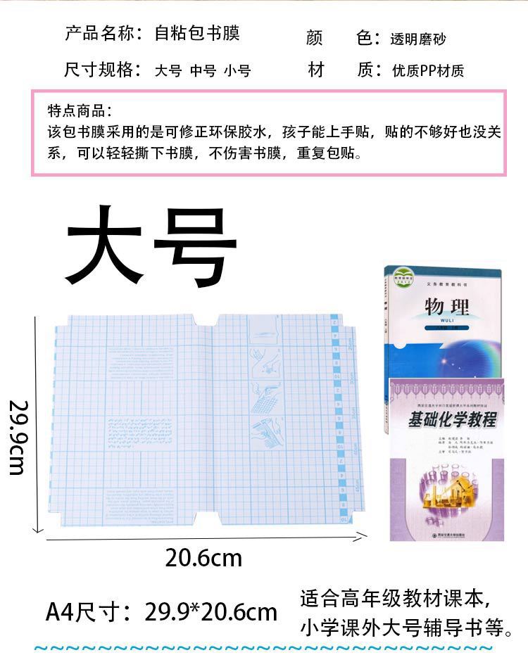 书皮保护套加厚透明PP磨砂防水材质文件课本书模自夹自粘书皮纸套