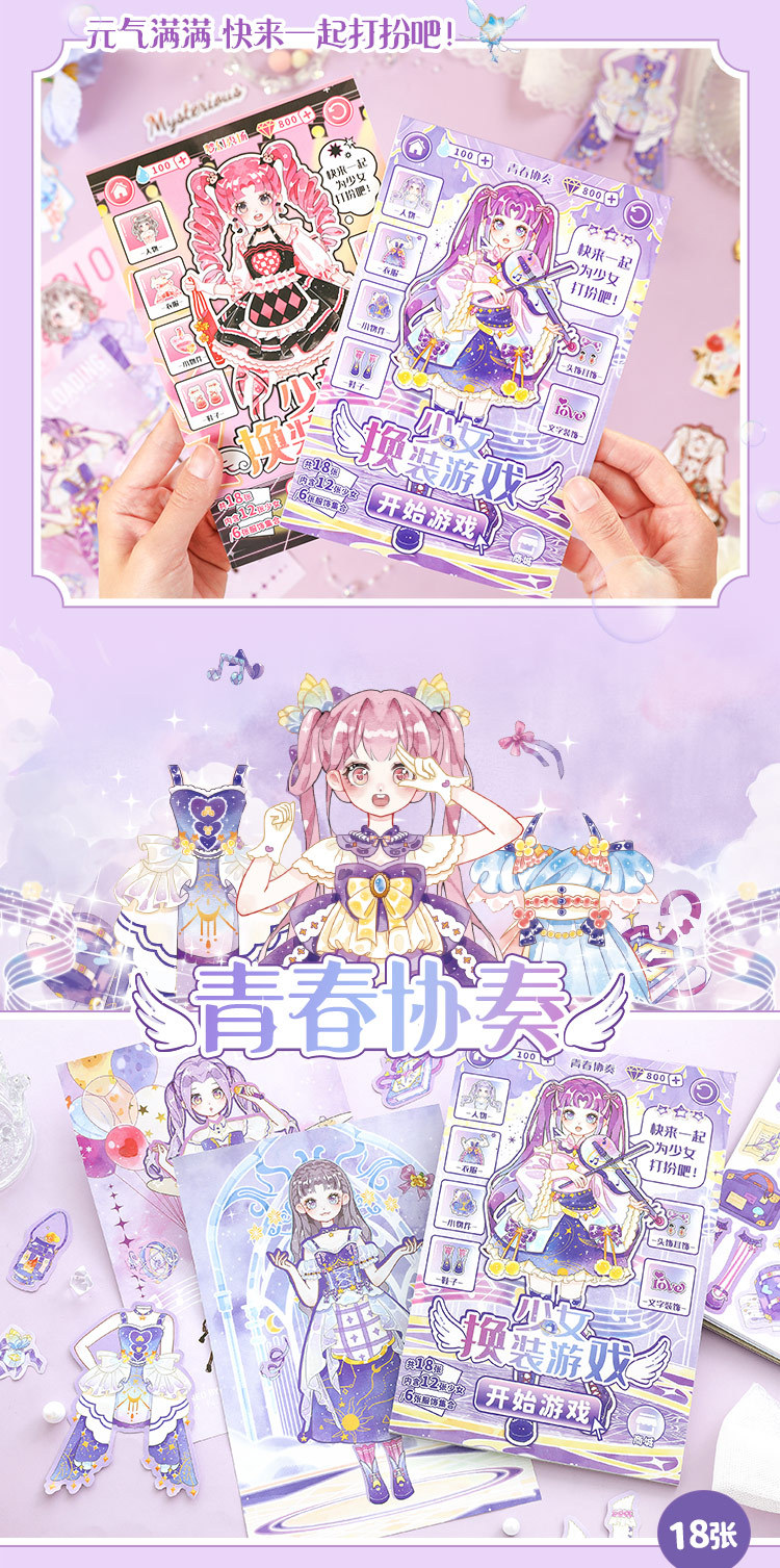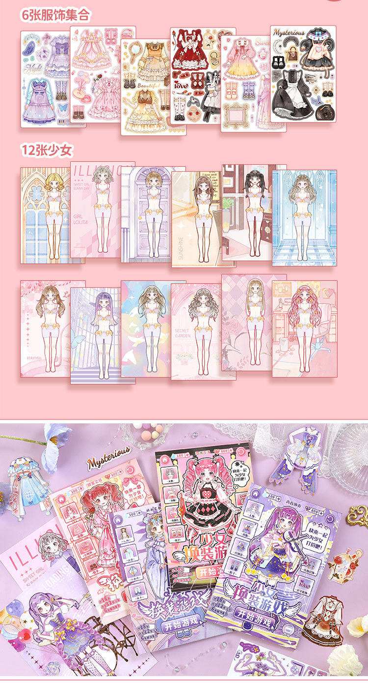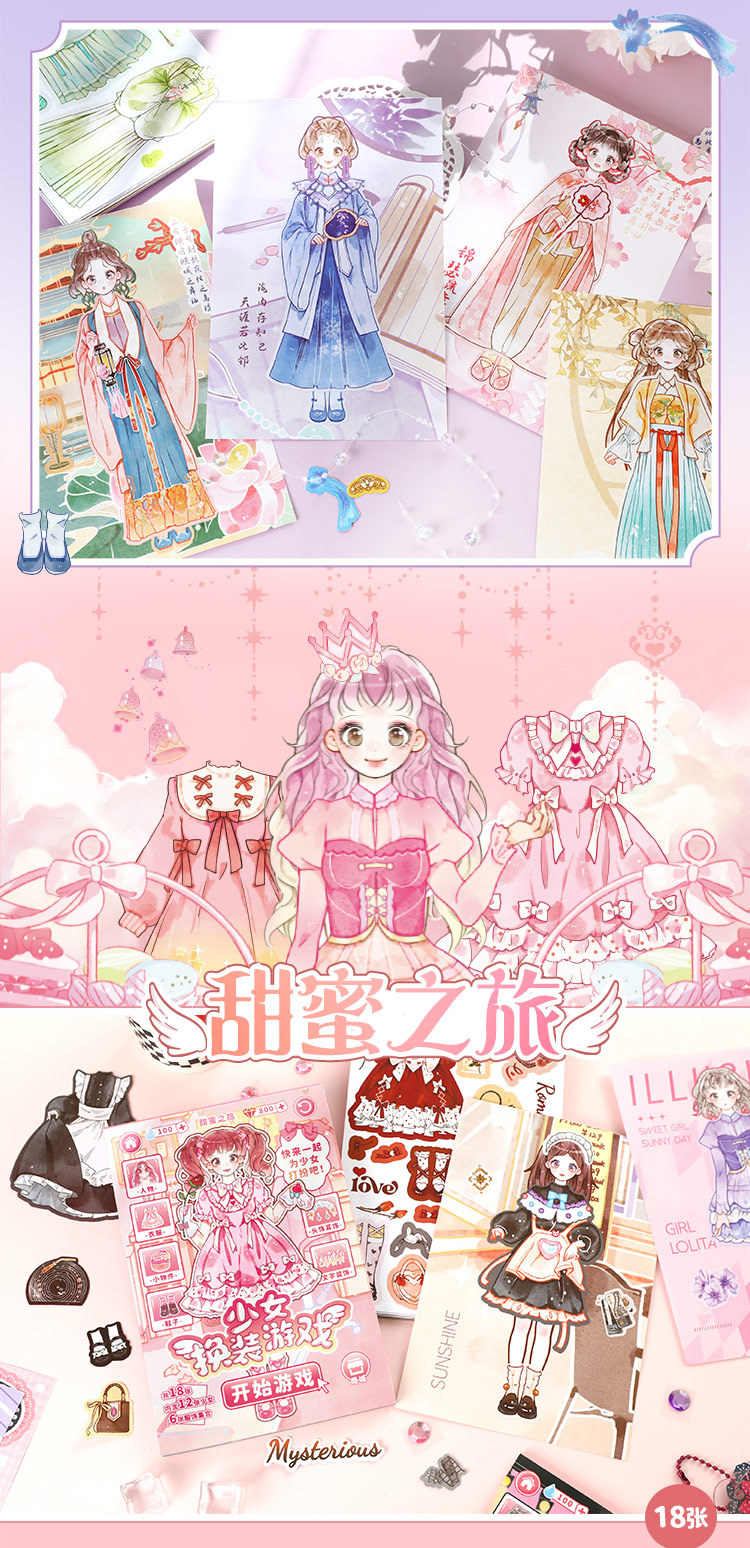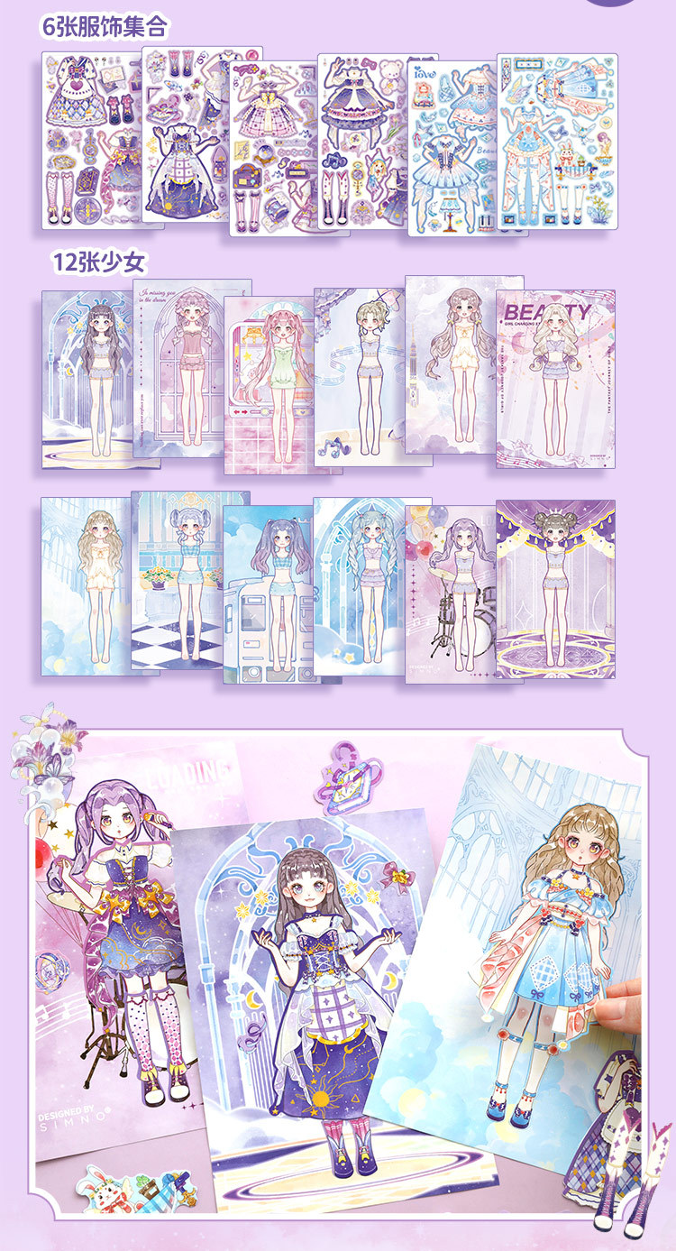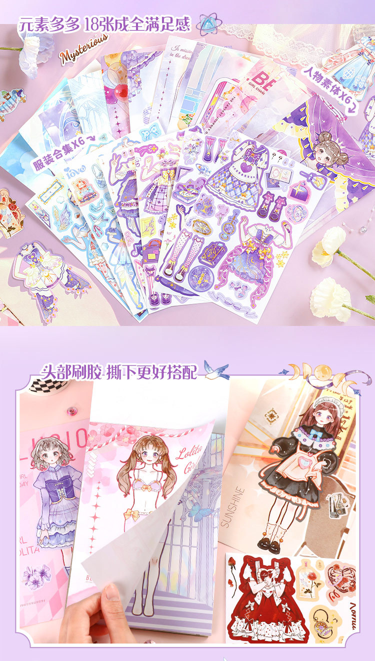 芯陌 少女换装游戏系列贴纸本 卡通女孩穿搭图鉴创意搭配素材贴纸