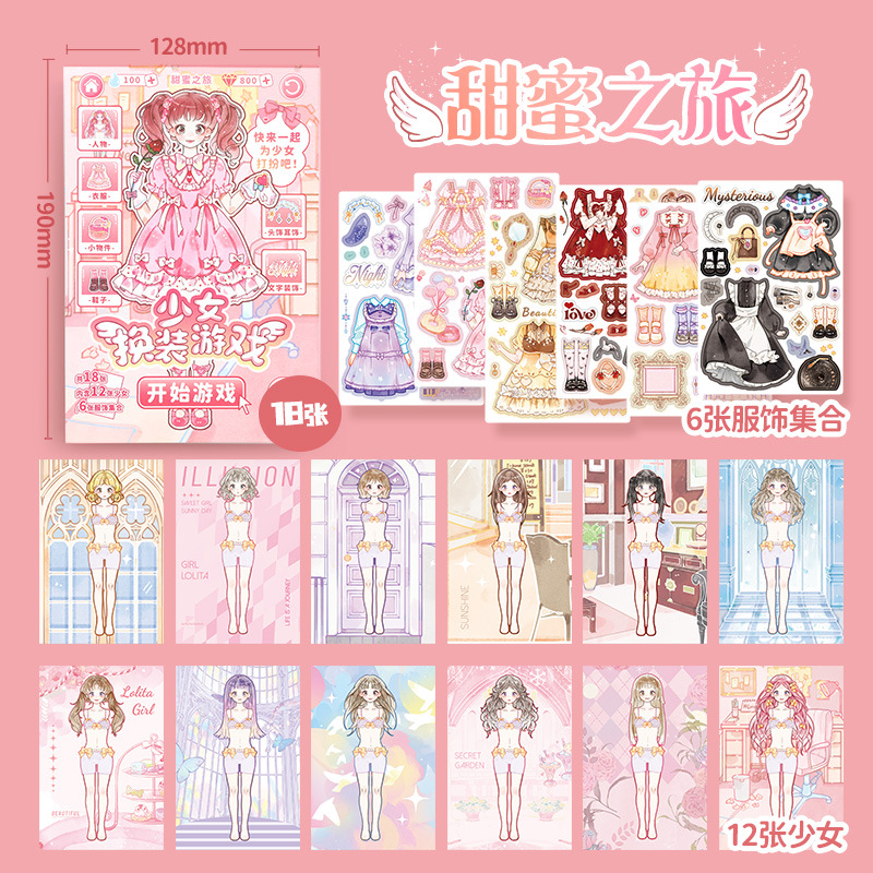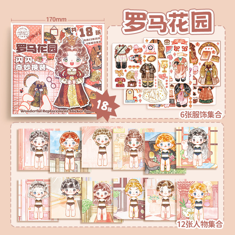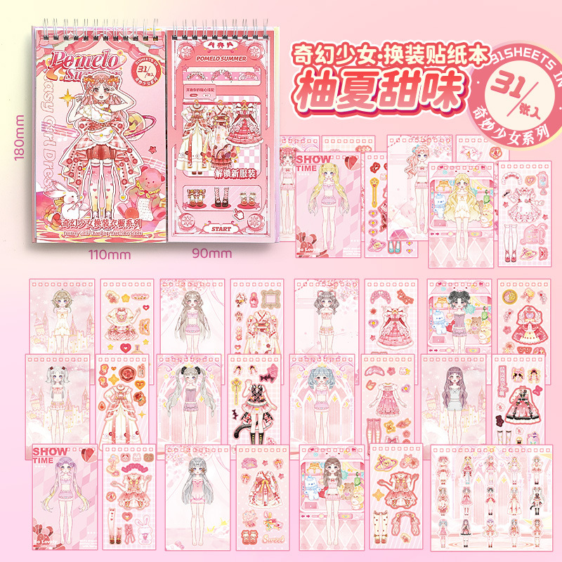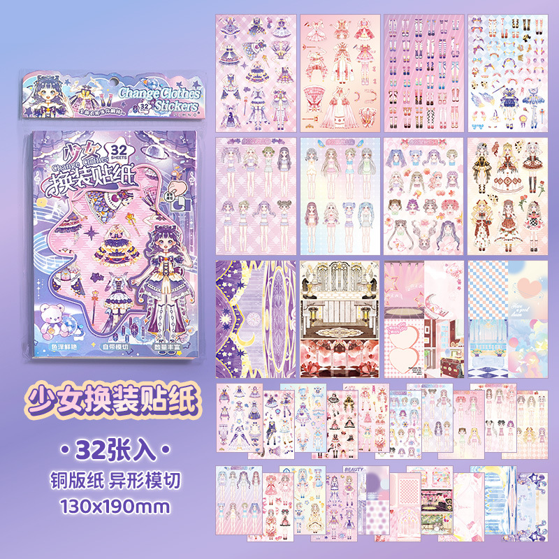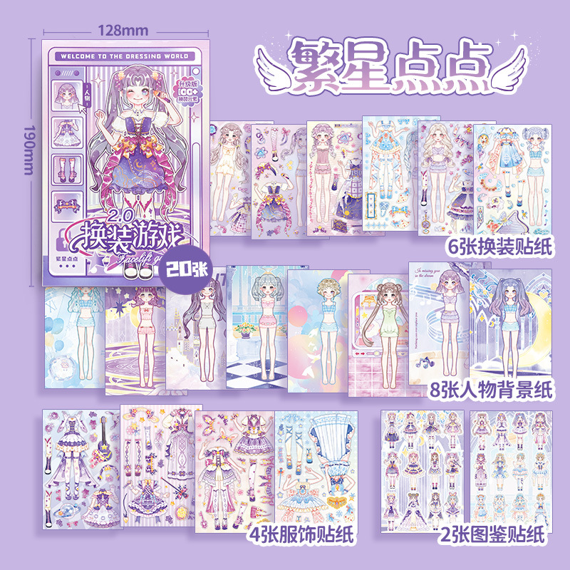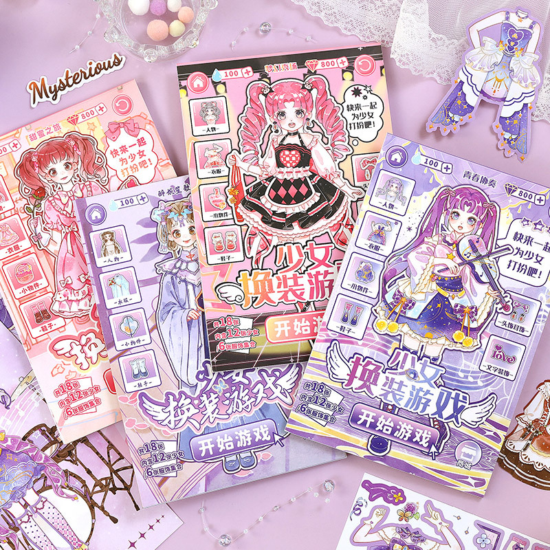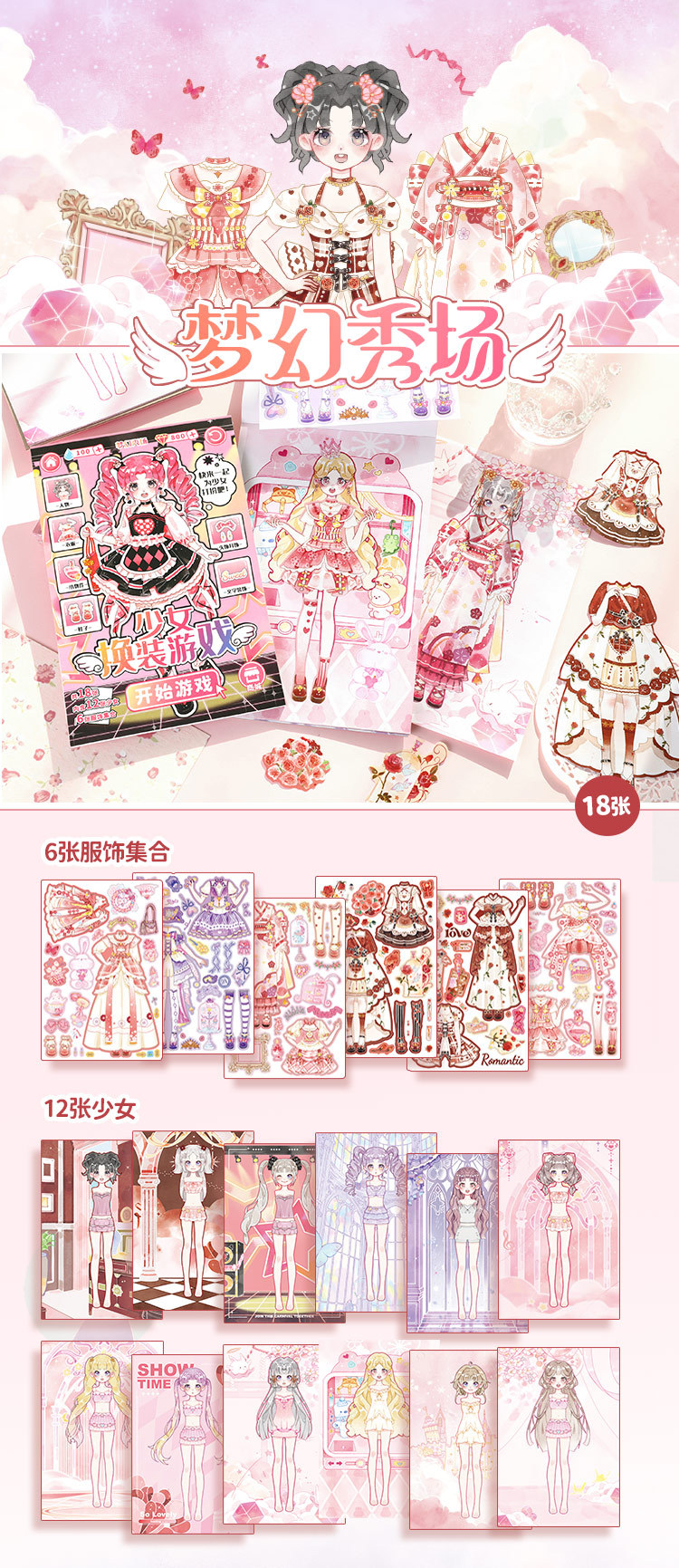 芯陌 少女换装游戏系列贴纸本 卡通女孩穿搭图鉴创意搭配素材贴纸