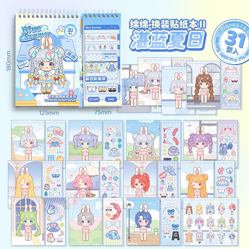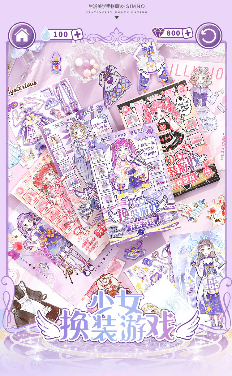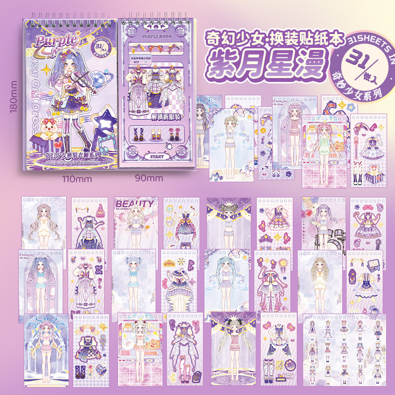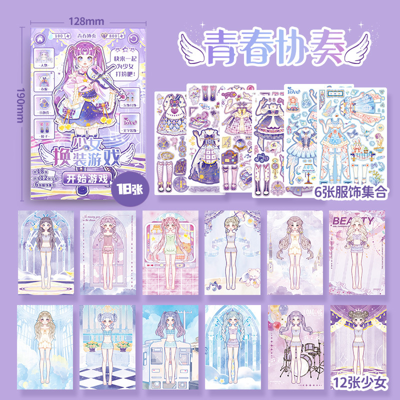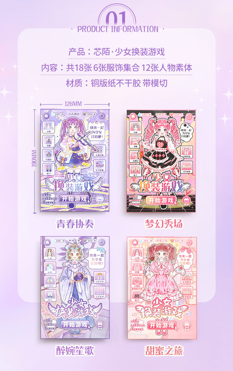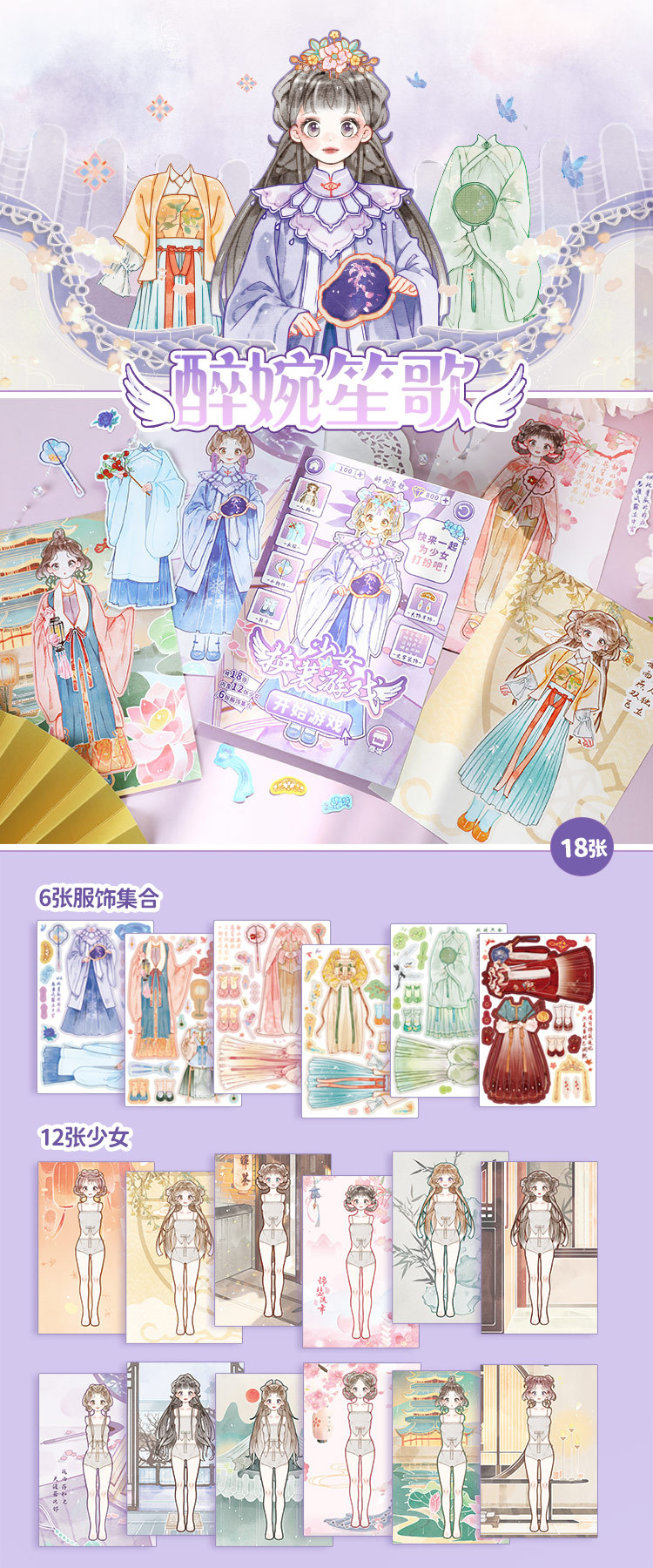 芯陌 少女换装游戏系列贴纸本 卡通女孩穿搭图鉴创意搭配素材贴纸