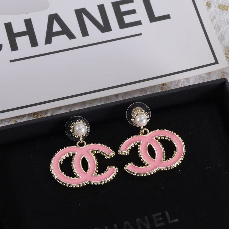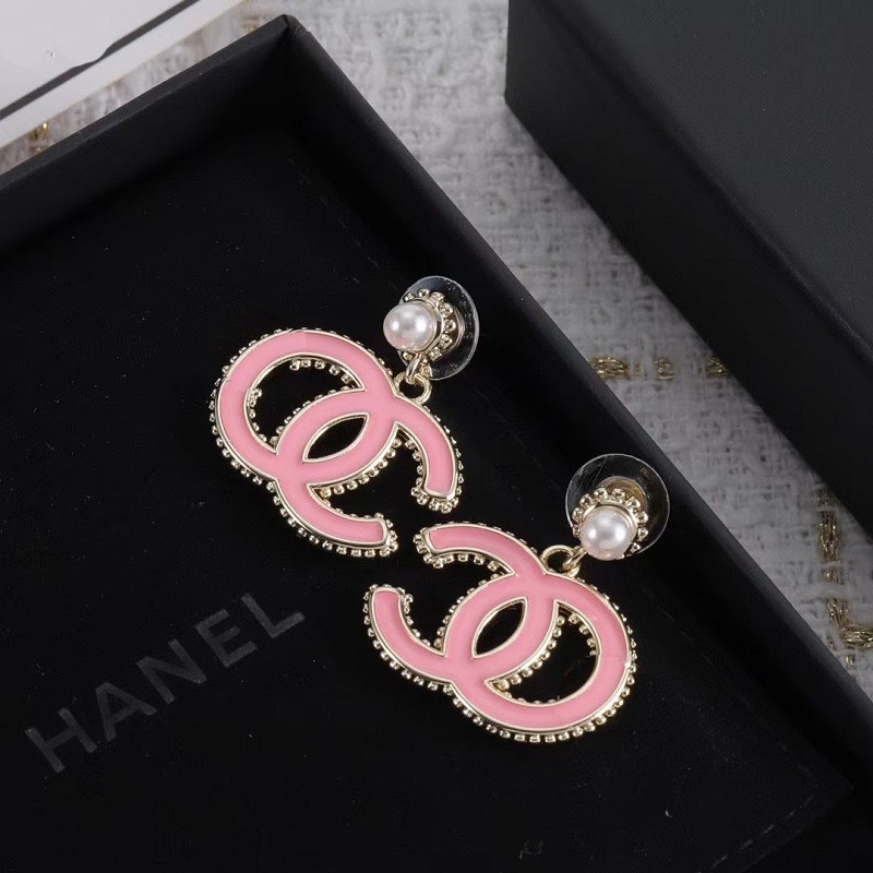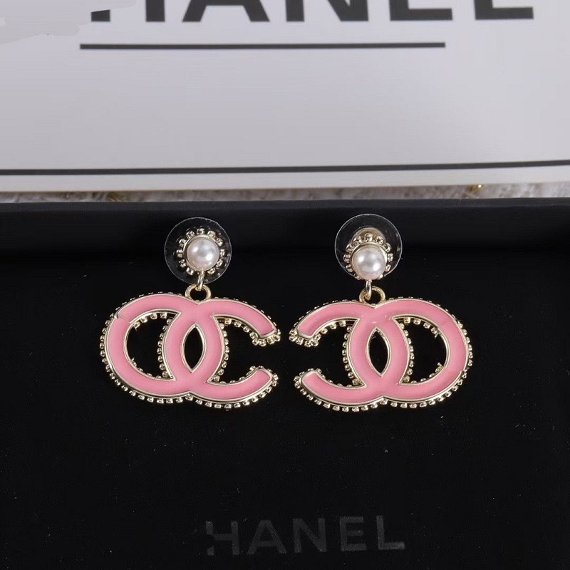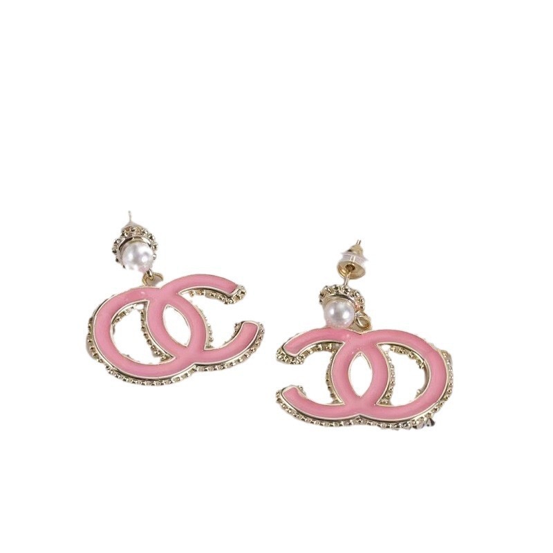 耳钉双C滴粉色胶珍珠银针耳钉小香风欧美时尚潮流黄铜耳钉女