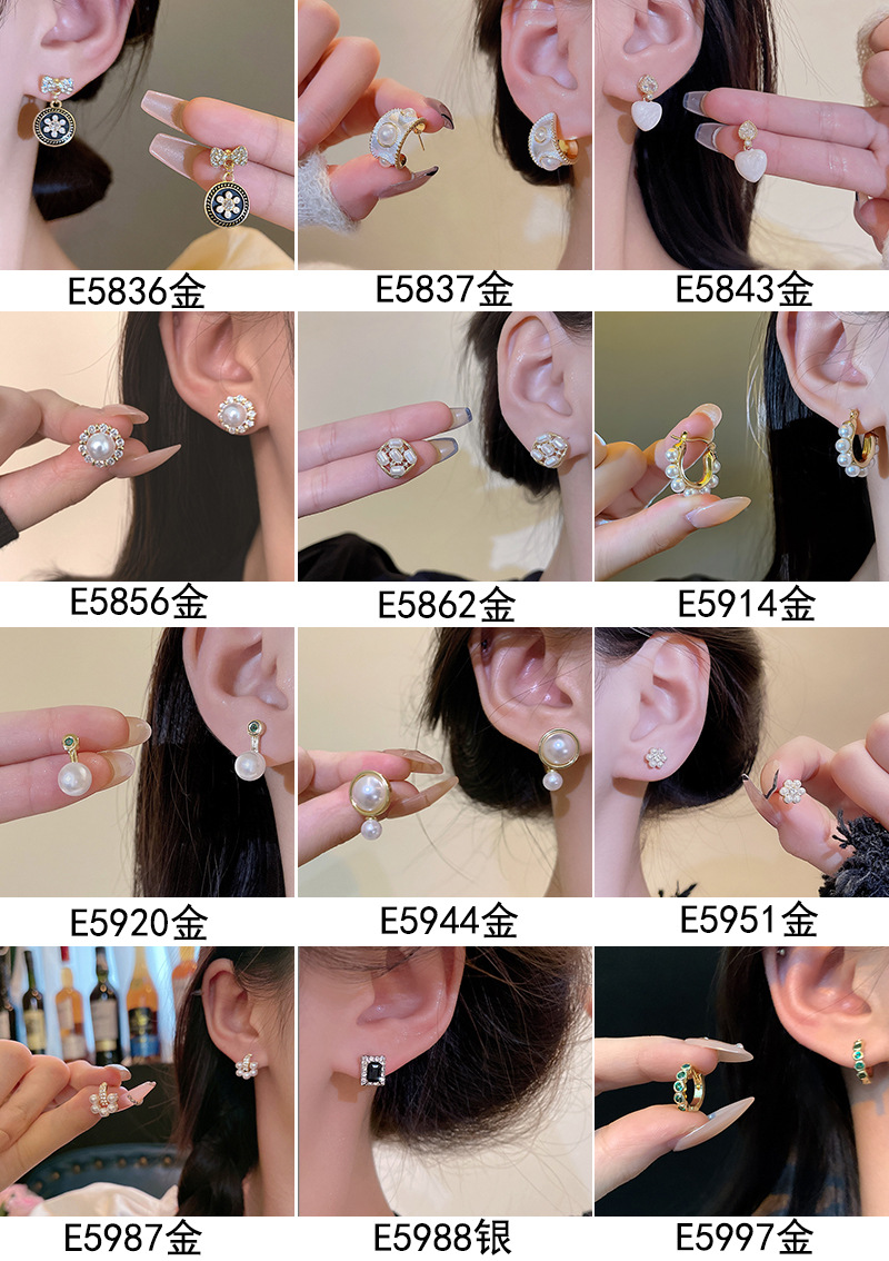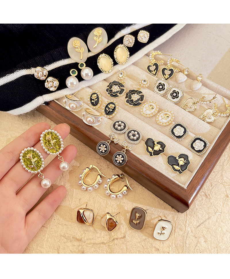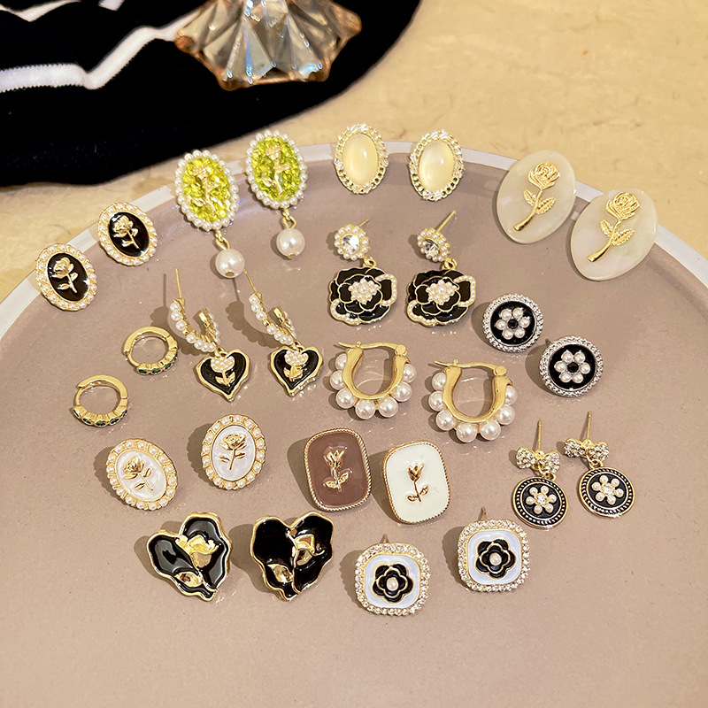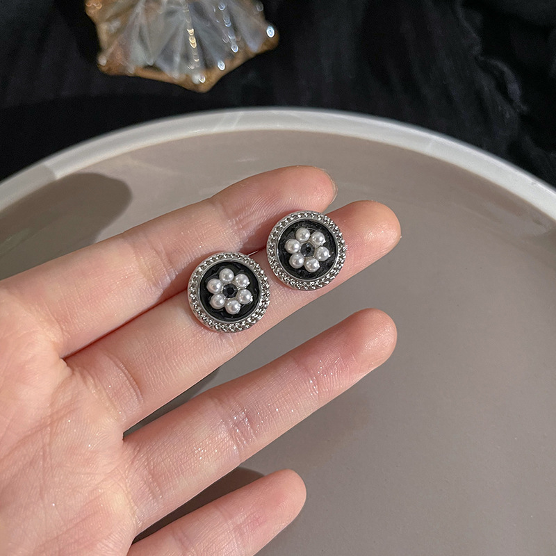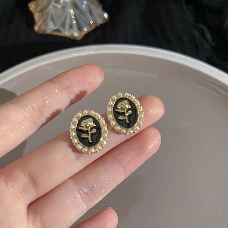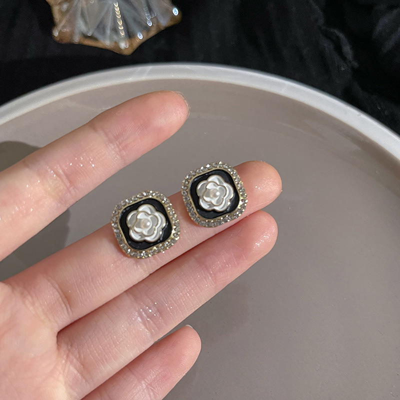 S925银针山茶花珍珠耳环法式复古小众高级感耳钉女韩版气质耳饰品