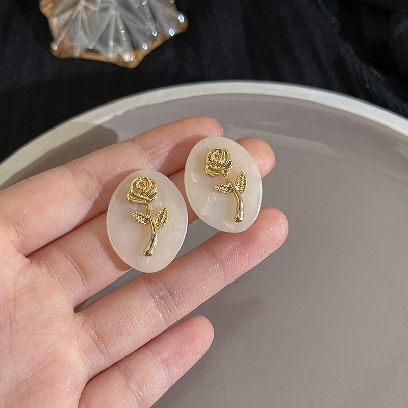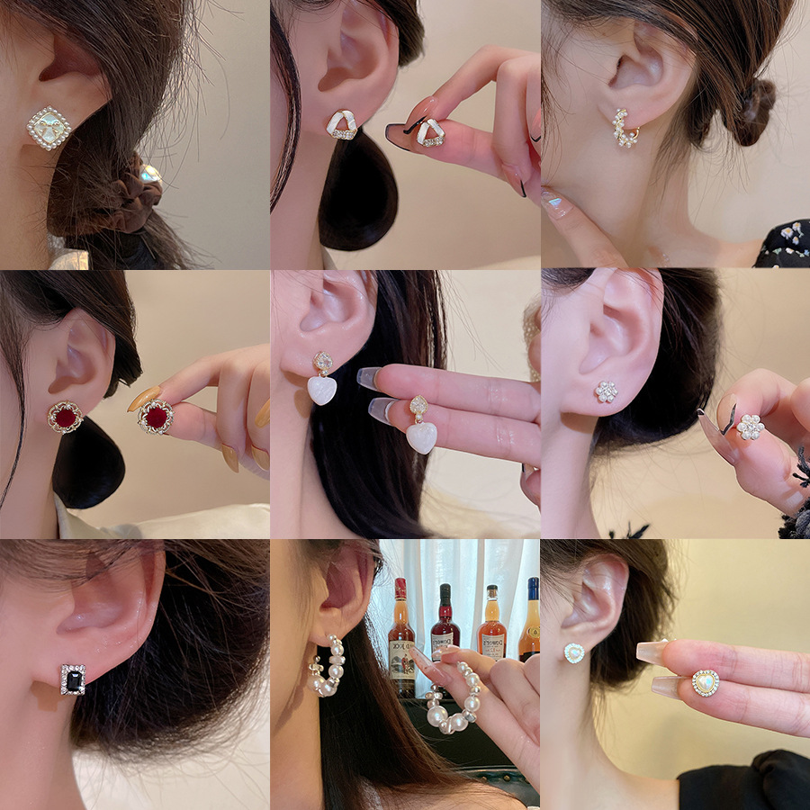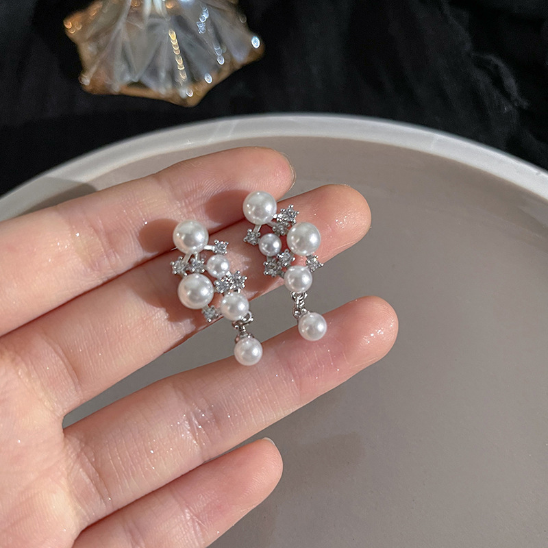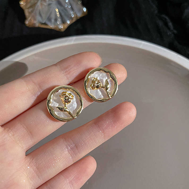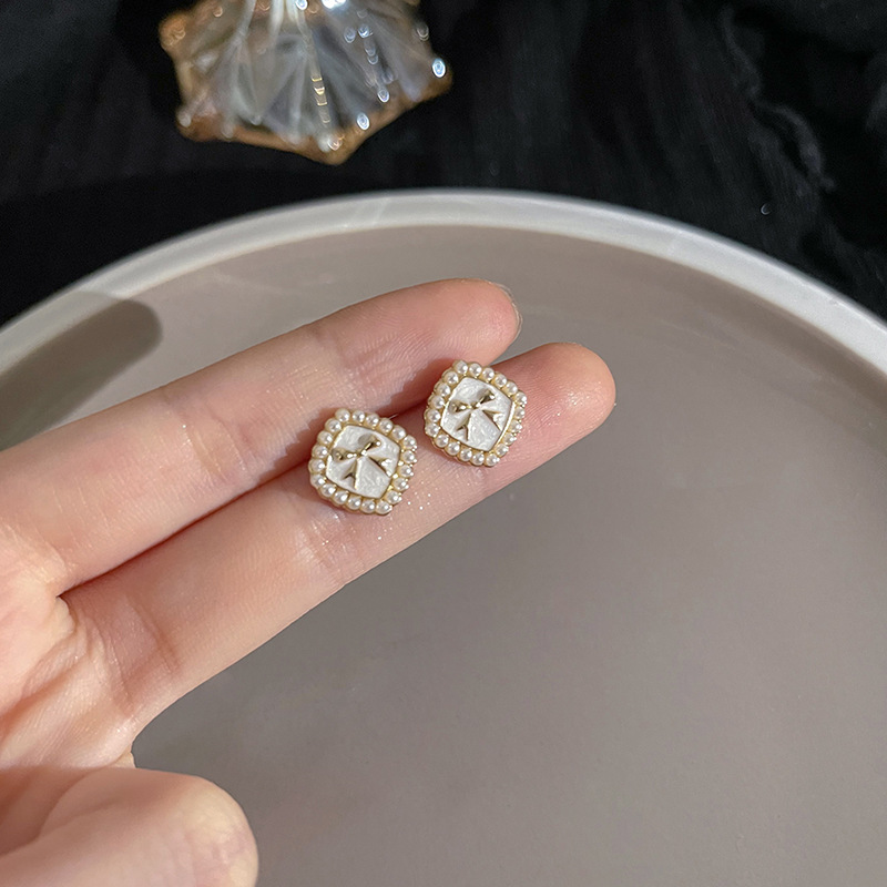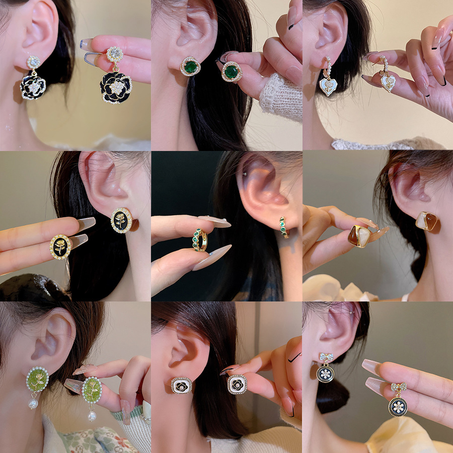 S925银针山茶花珍珠耳环法式复古小众高级感耳钉女韩版气质耳饰品