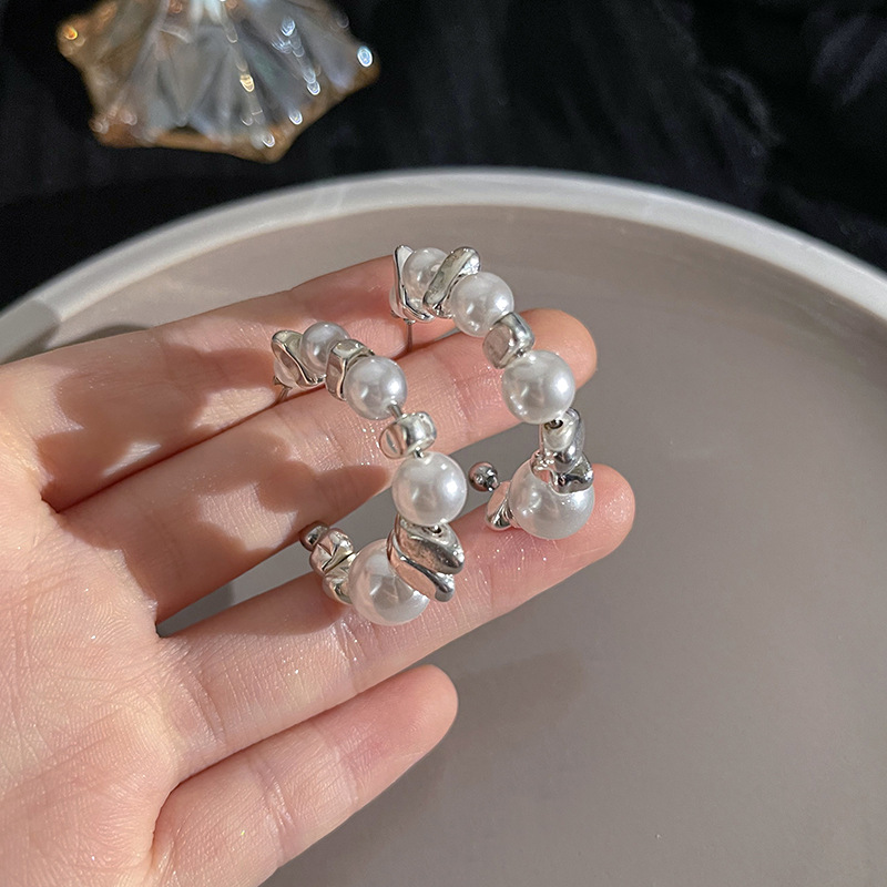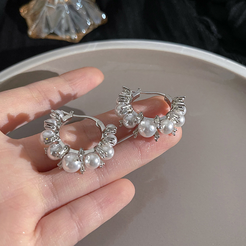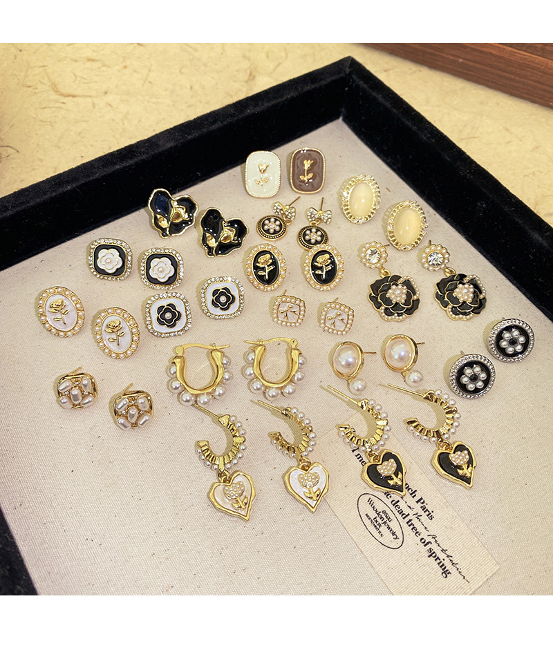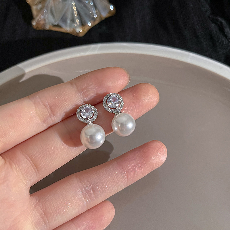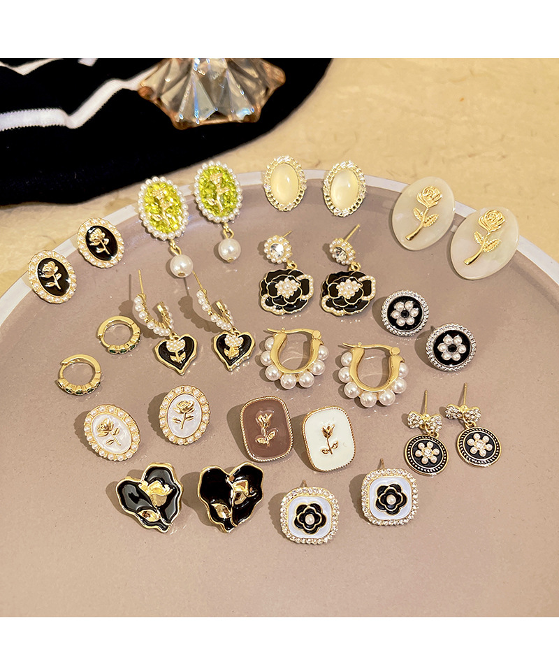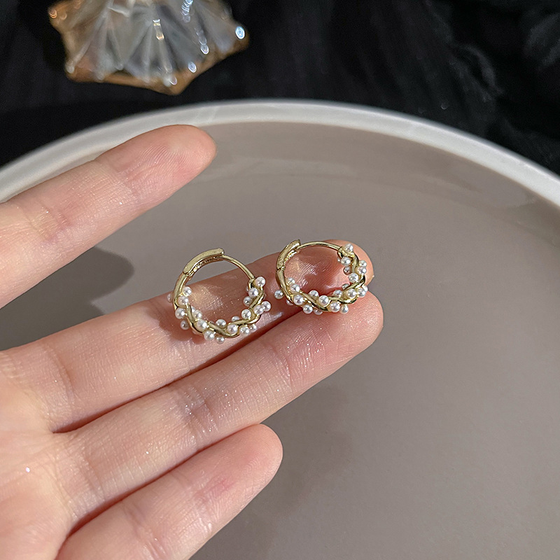 S925银针山茶花珍珠耳环法式复古小众高级感耳钉女韩版气质耳饰品