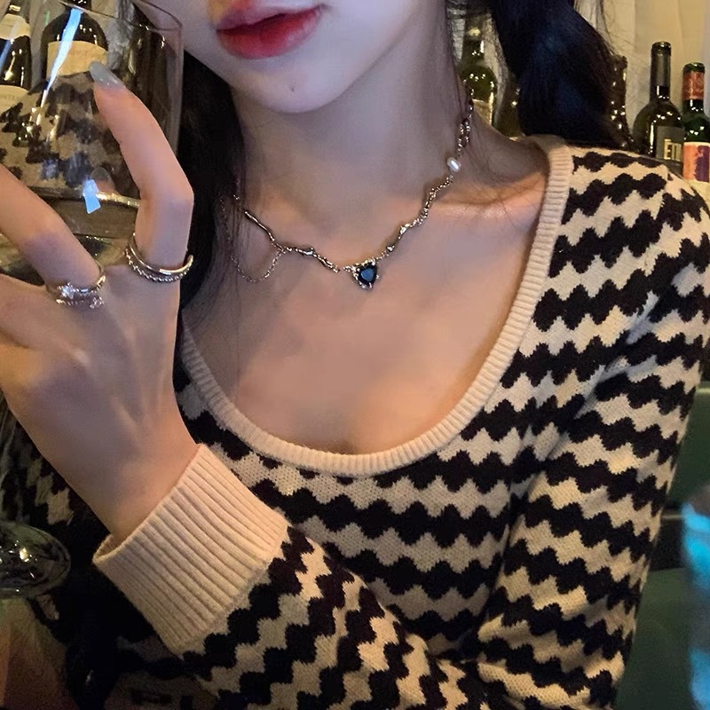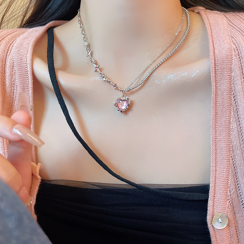 甜酷辣妹风ins潮毛衣链小众百搭秋冬款卫衣链拼接爱心项链女颈链