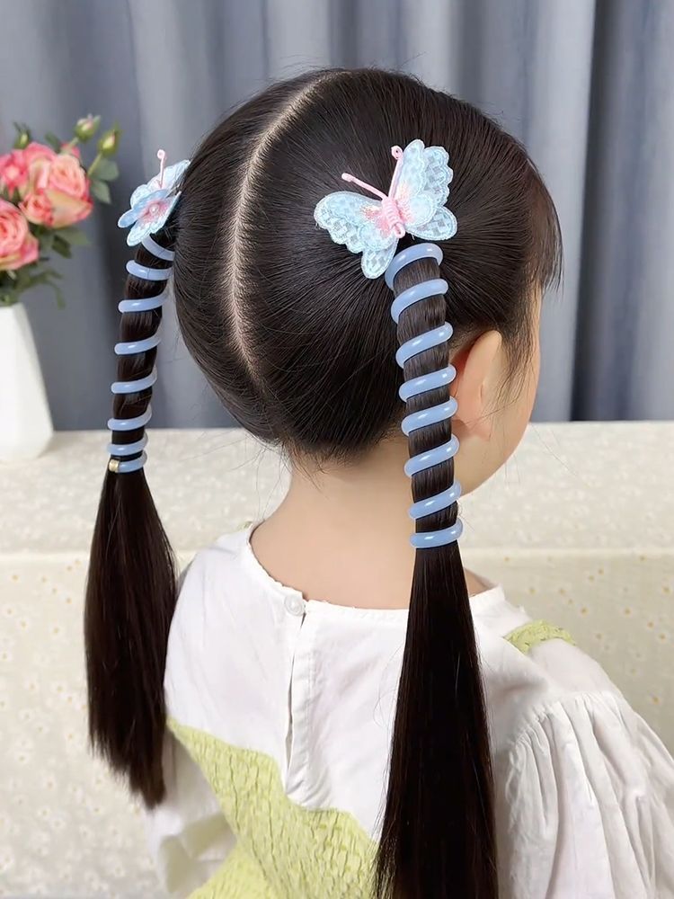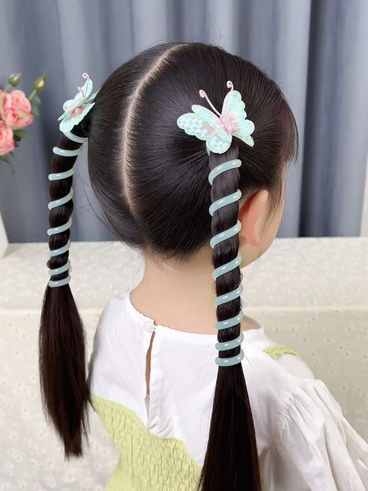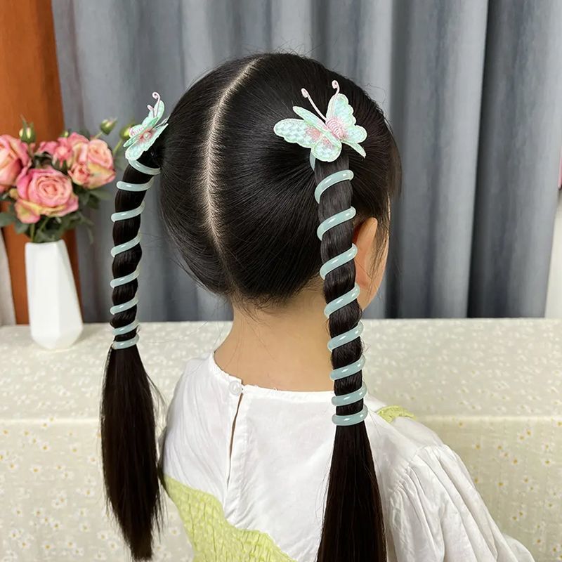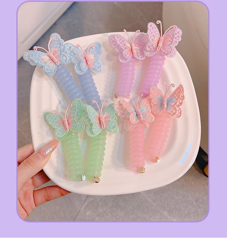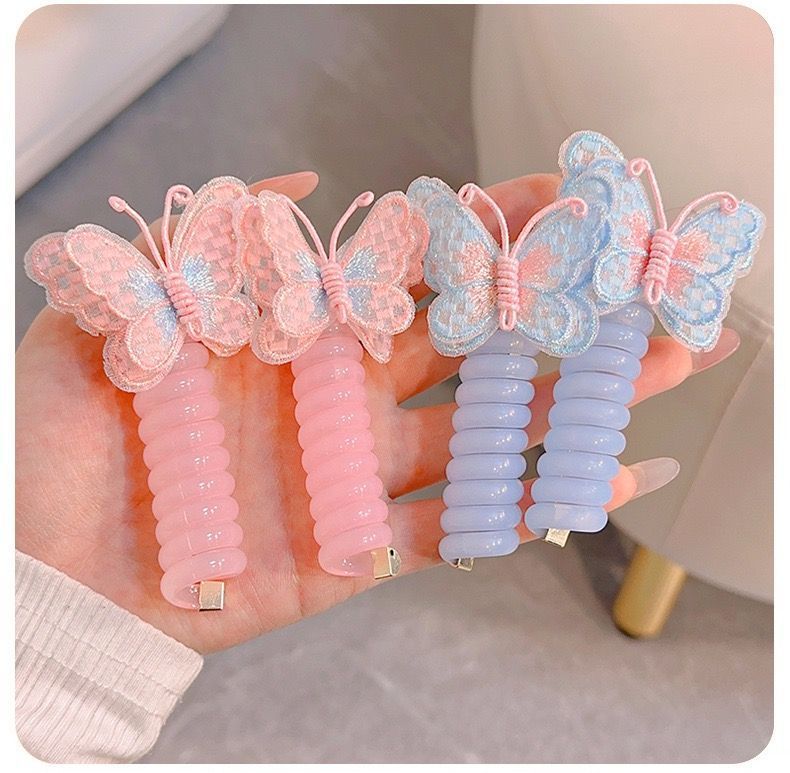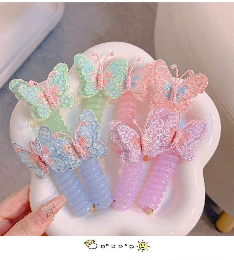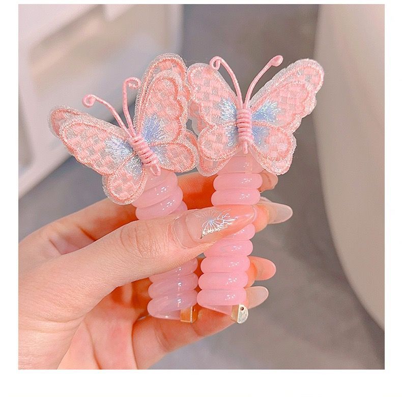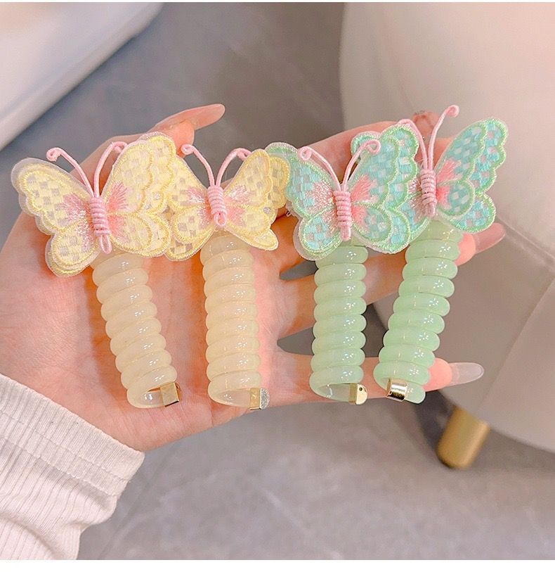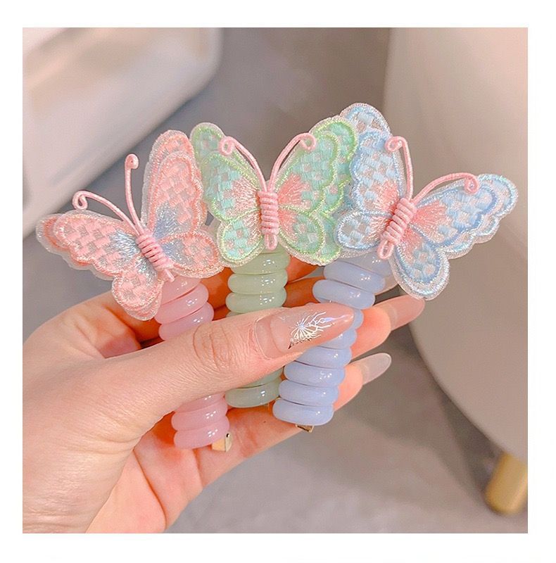 儿童仙气古风刺绣蝴蝶电话线发圈高马尾绕绕发绳头绳女童创意发饰