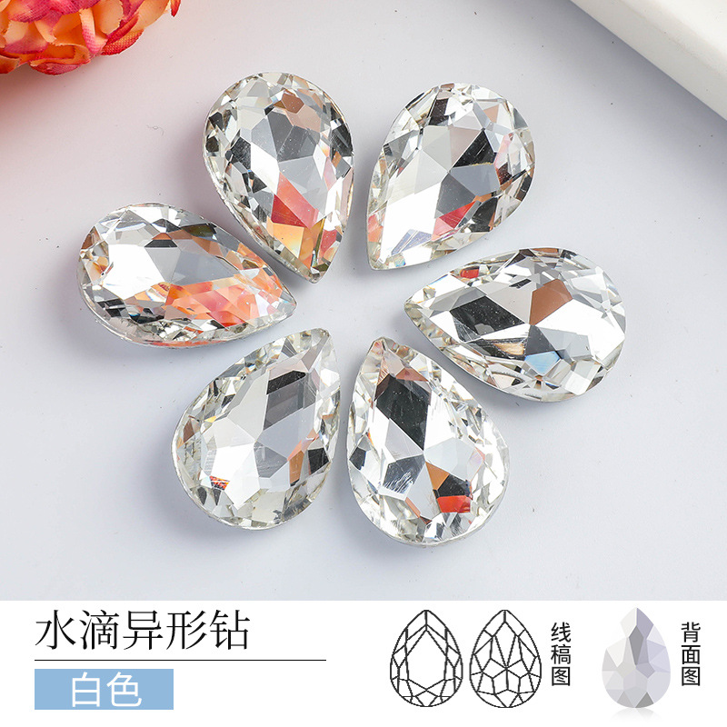 散珠批发水滴钻透明玻璃水钻尖底镀银异形钻手机diy贴钻饰品配件