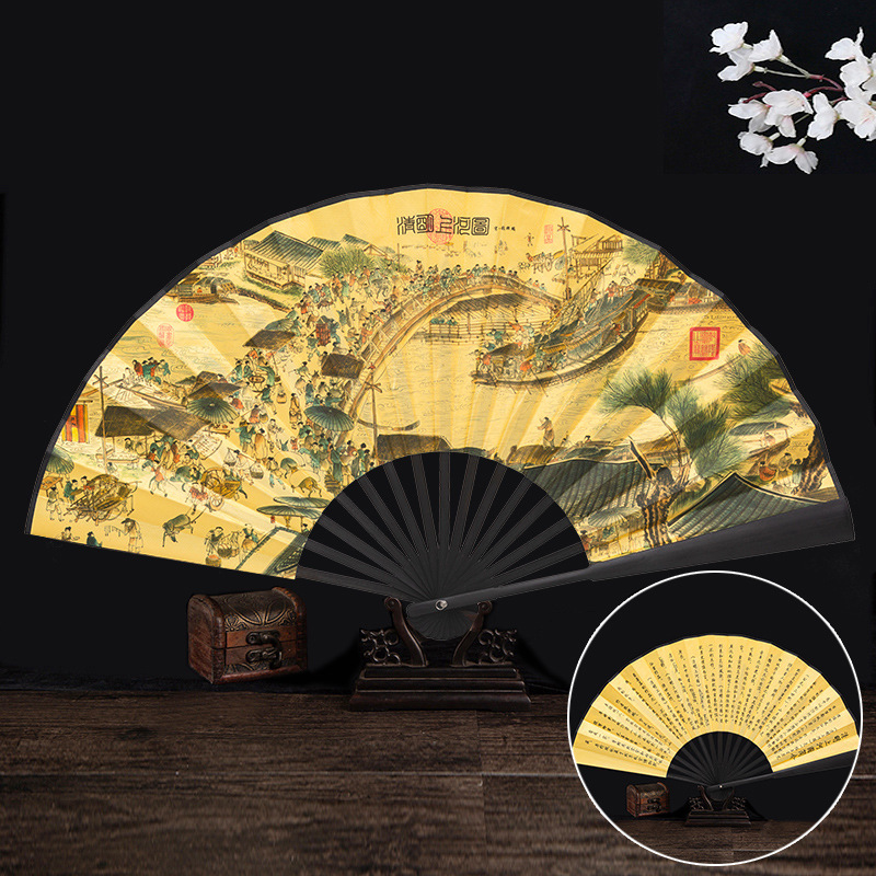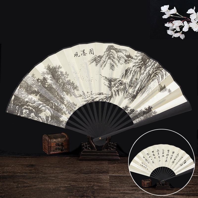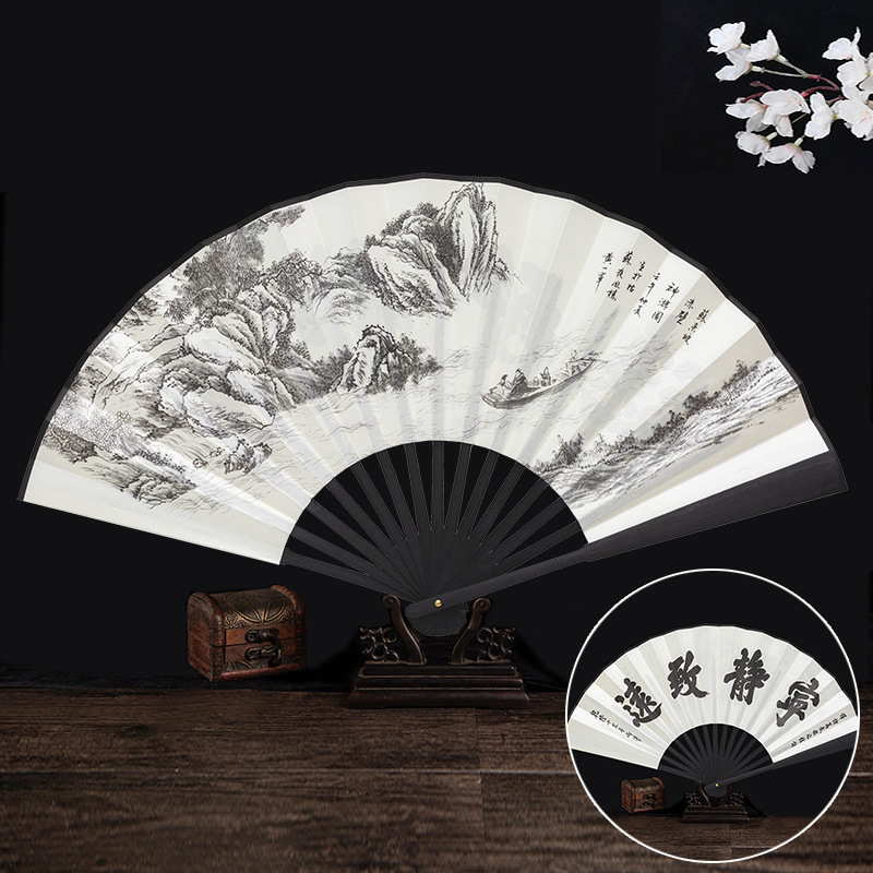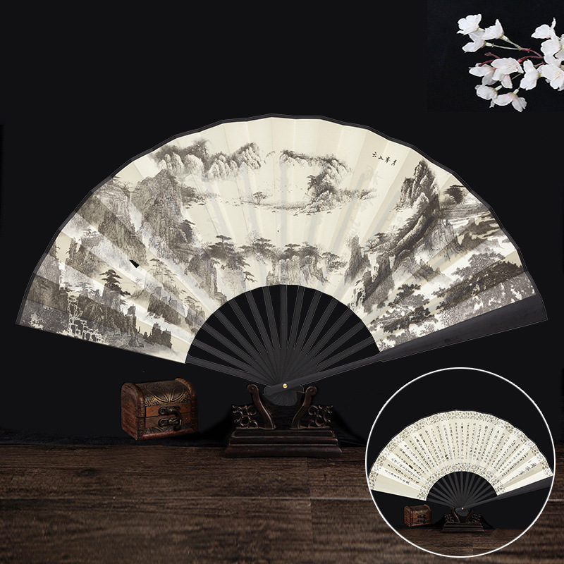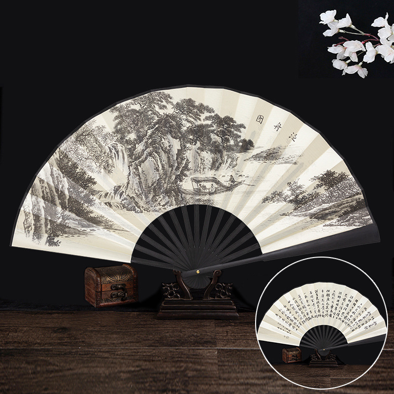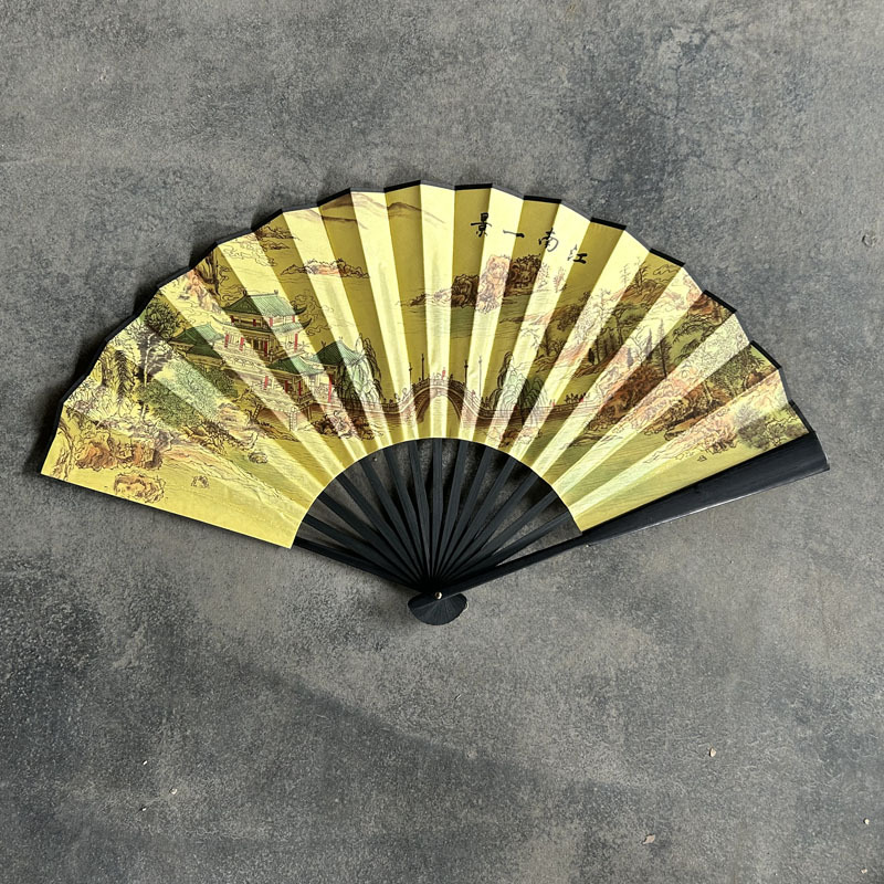 古风扇子折扇中国风景点男复古典中式空白扇工艺品摆摊折叠绢布扇