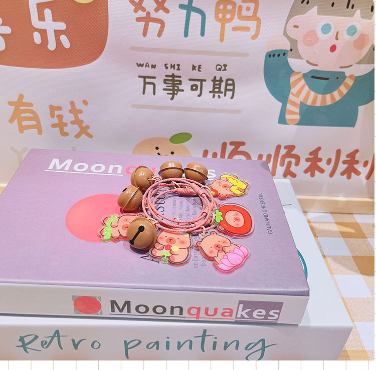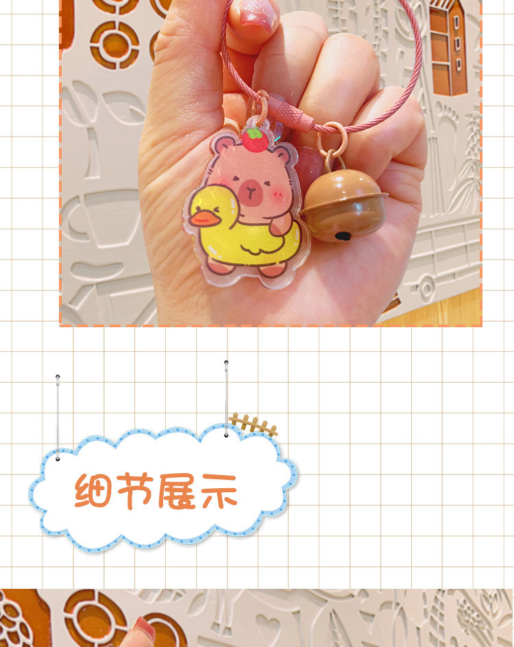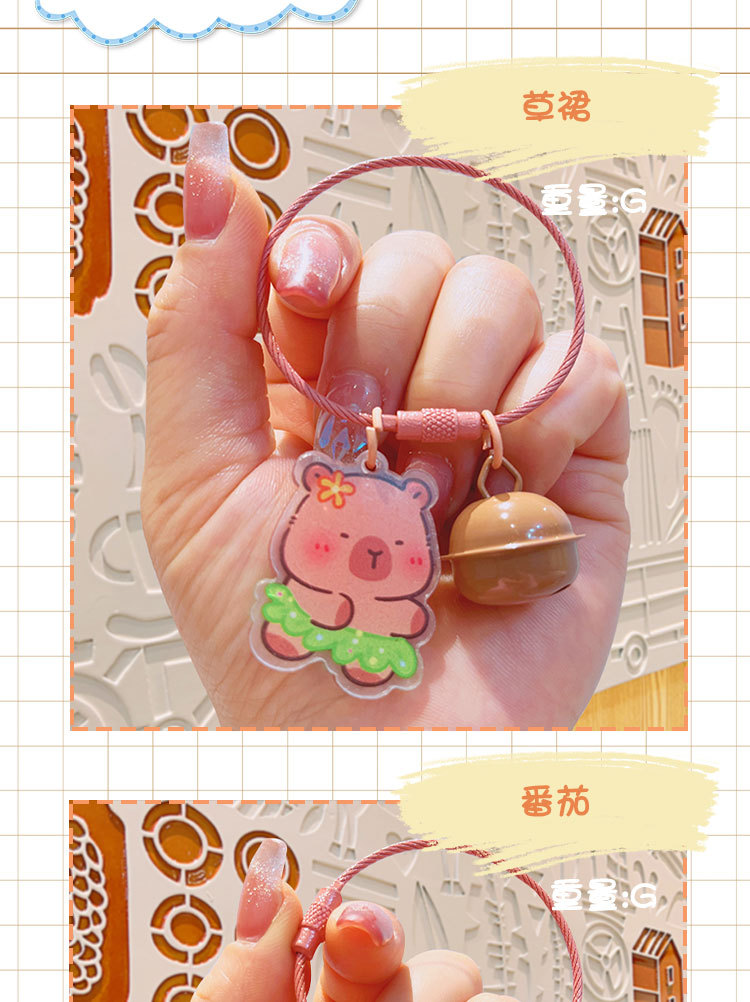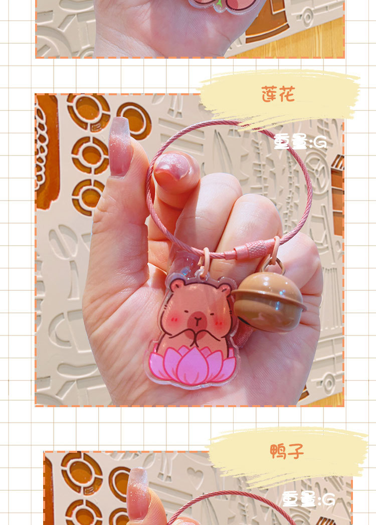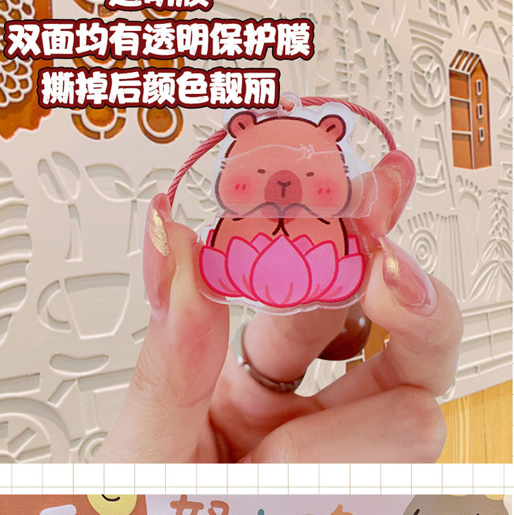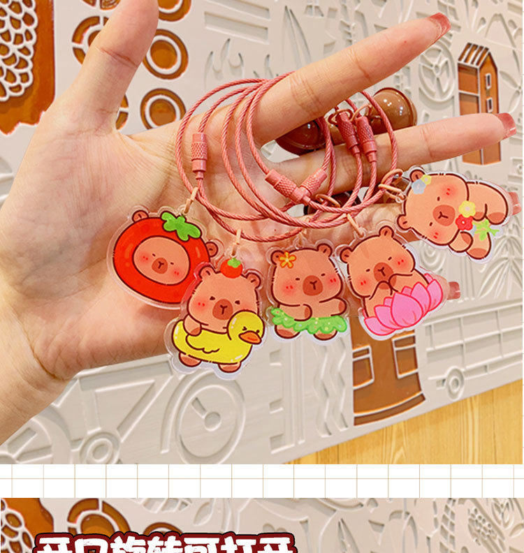 网红卡皮巴拉钥匙扣创意钢丝绳亚克力可爱书包挂饰卡通小饰品批发