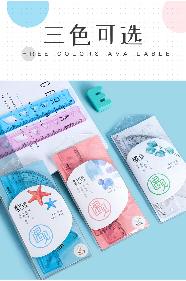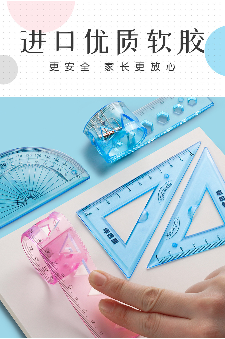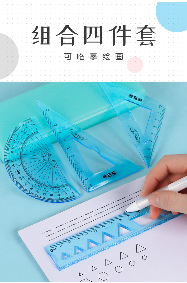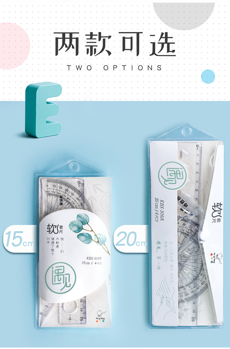 软尺四件套小学生15/20cm带波浪线学生文具尺子套装多功能尺子