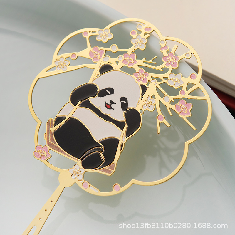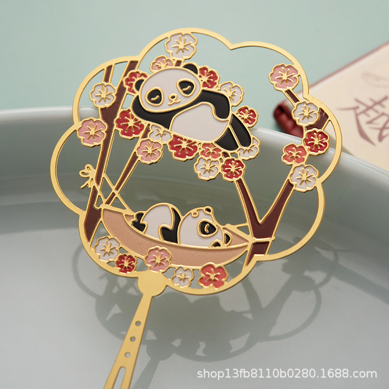 精致熊猫金属书签镂空流苏学生文具中国风成都基地文创纪念品礼物