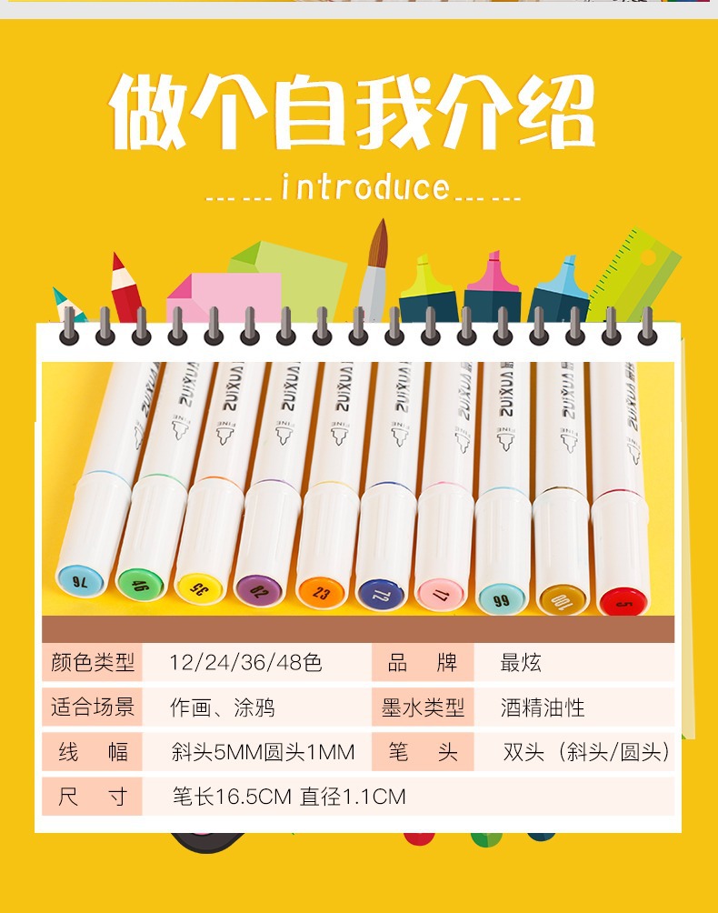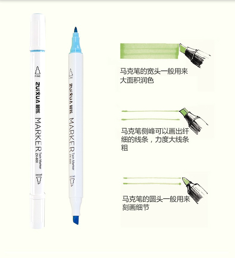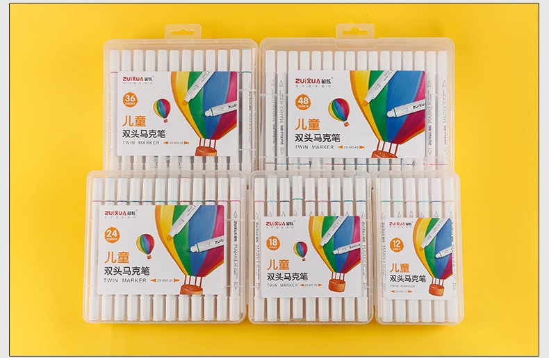 小学生双头马克笔套装儿童绘画美术水彩笔手绘彩色笔12色60色文具