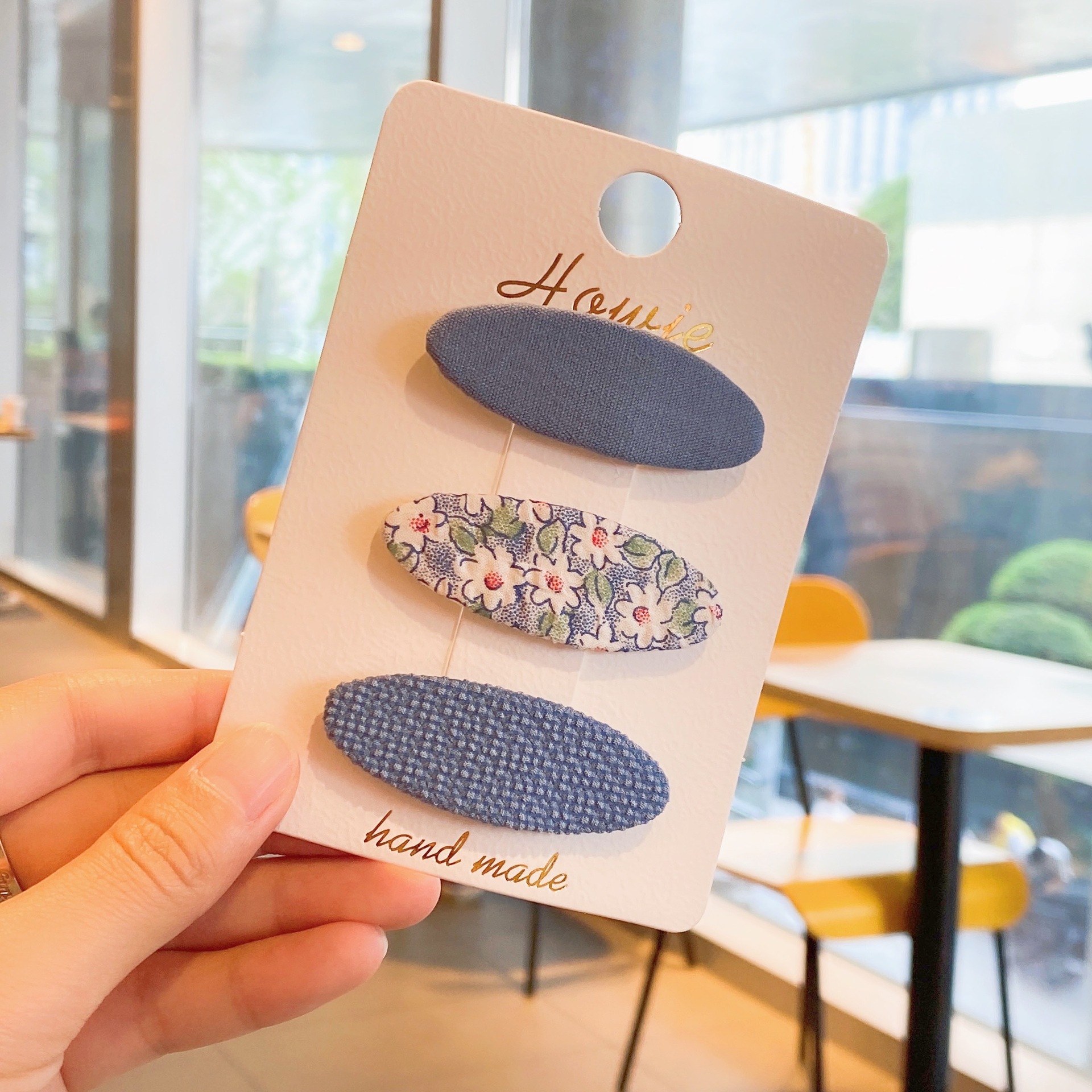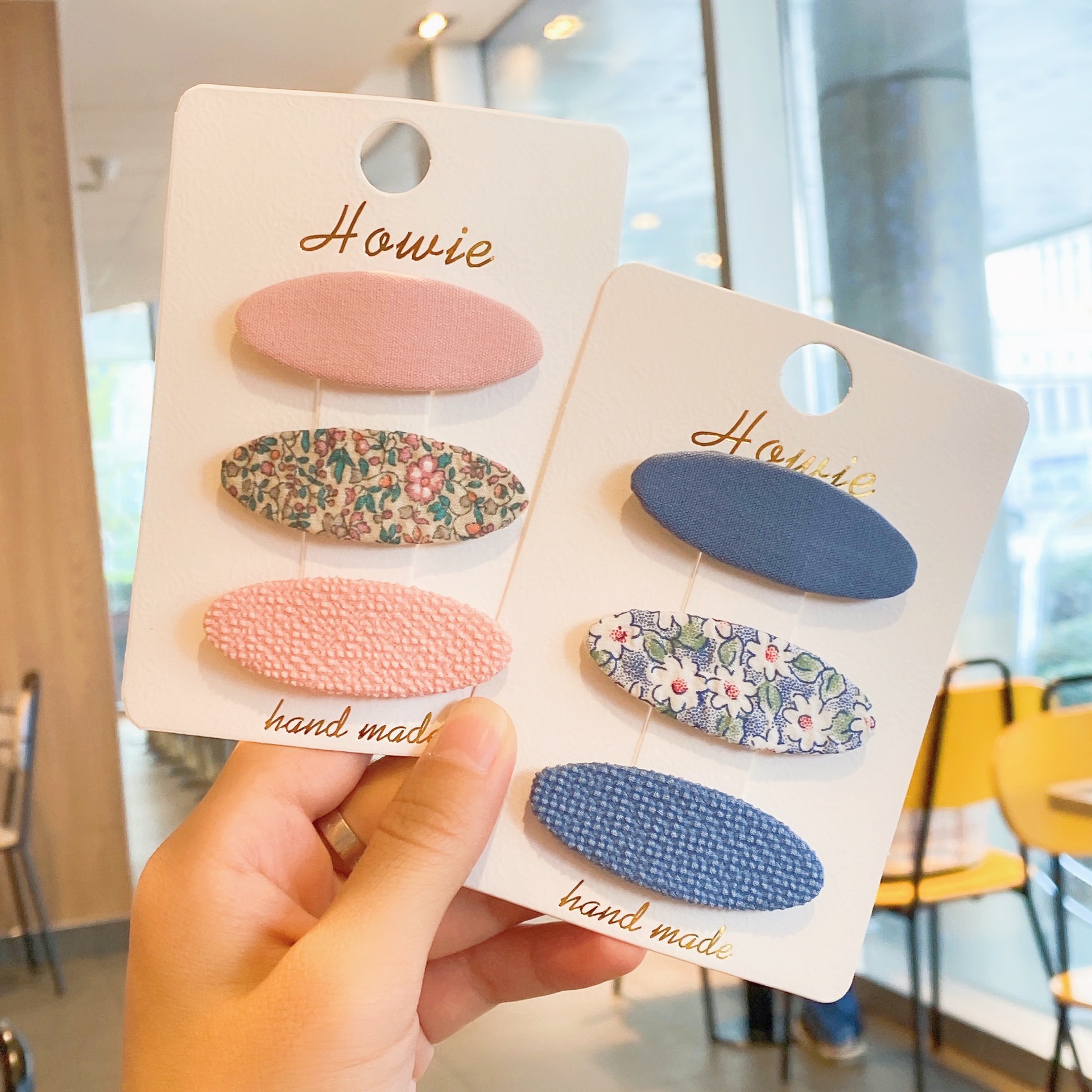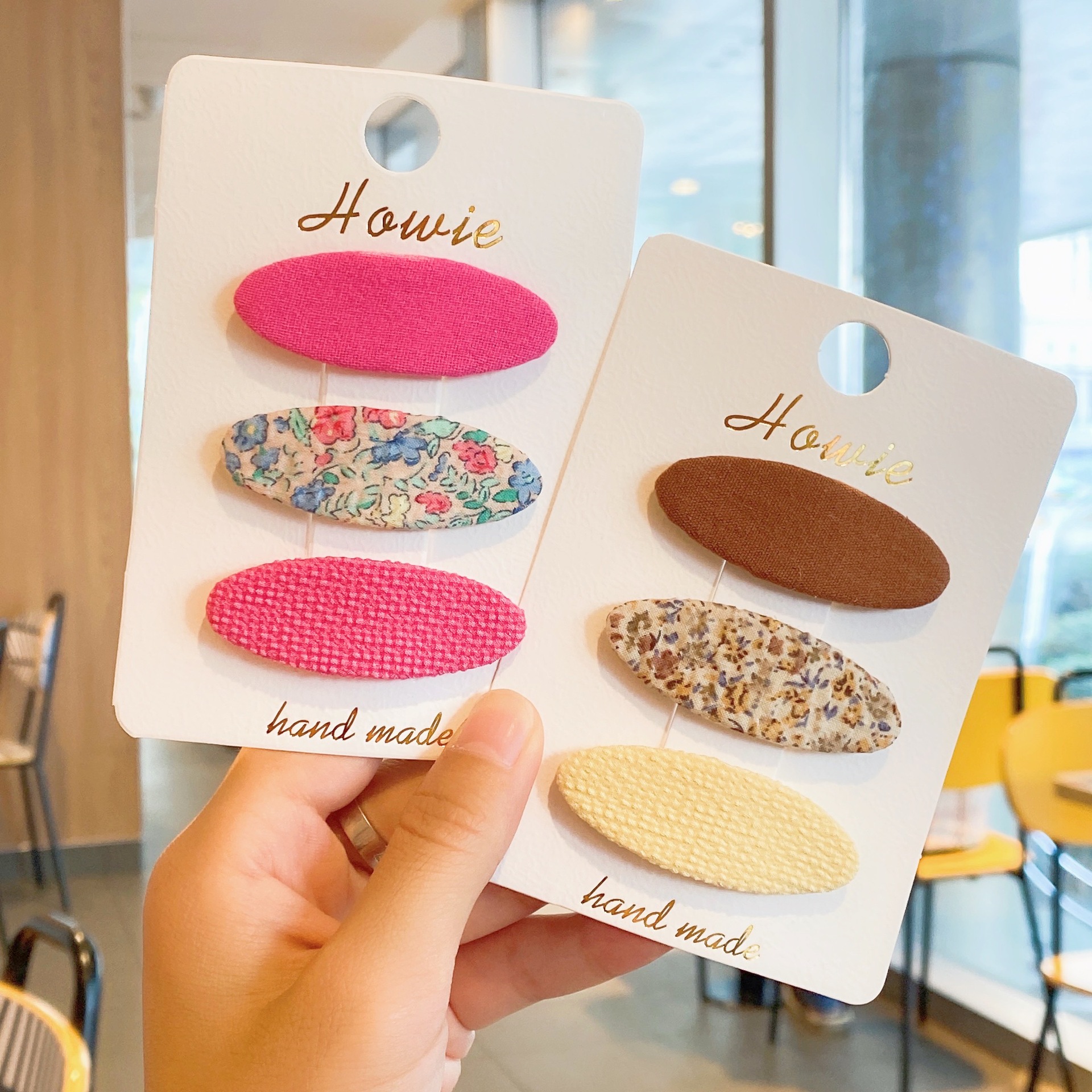 韩版布艺小碎花BB夹糖果色椭圆碎发卡少女复古气质简约儿童发夹