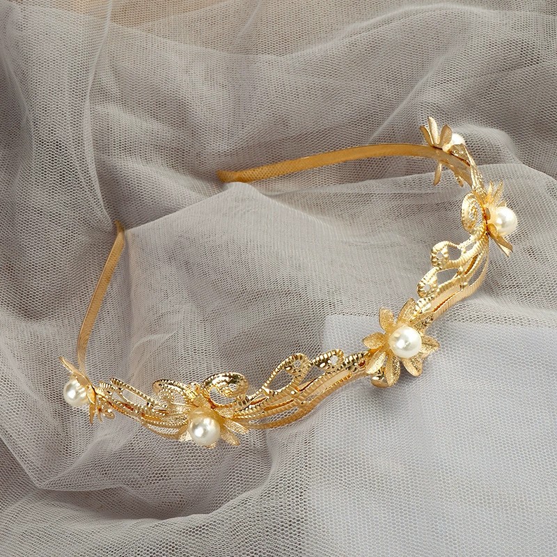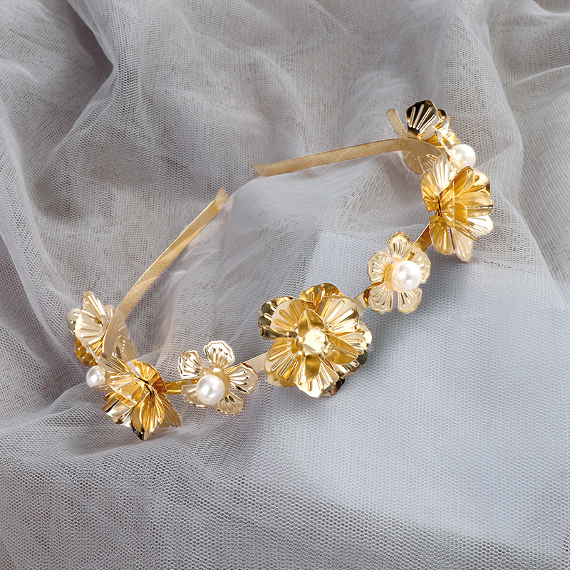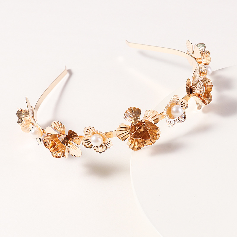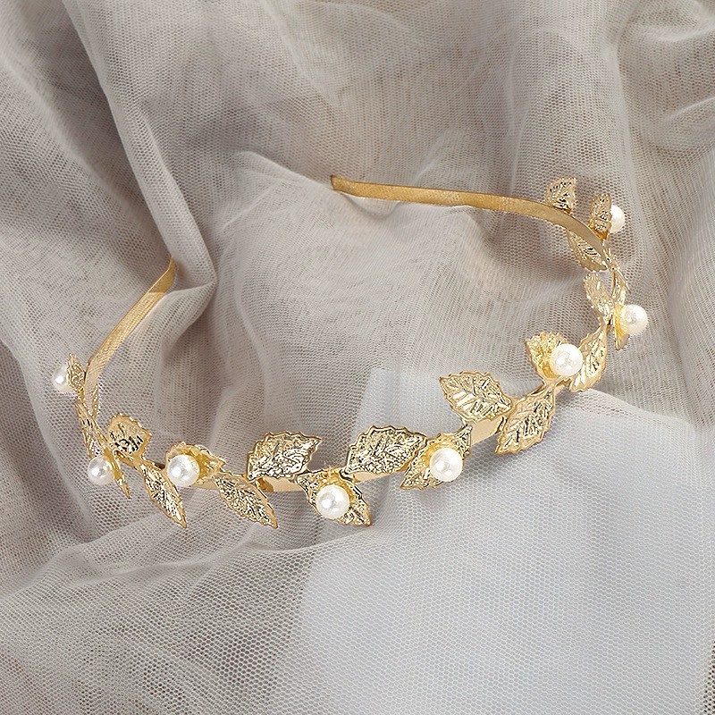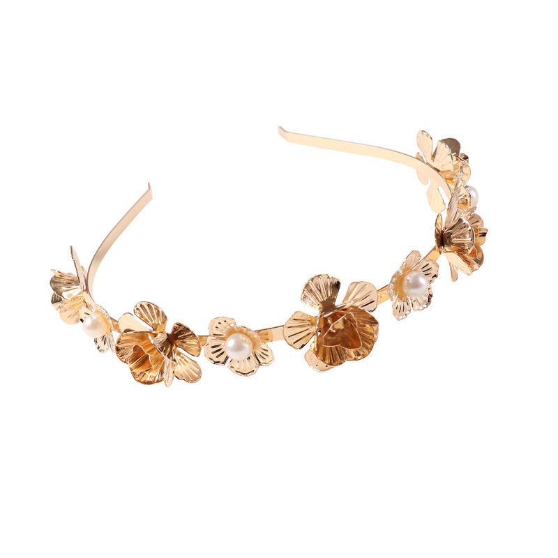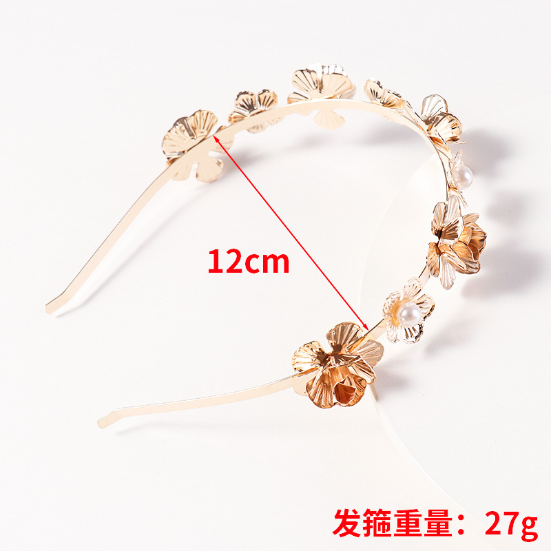 跨境头饰花朵树叶金属珍珠合金发饰头箍批发文艺复古宫廷风发箍