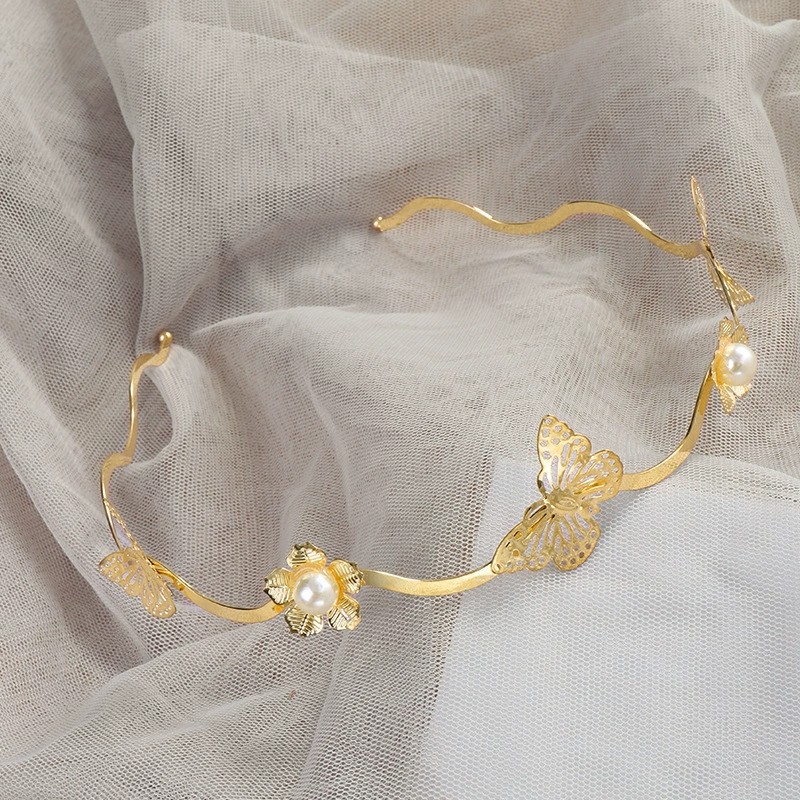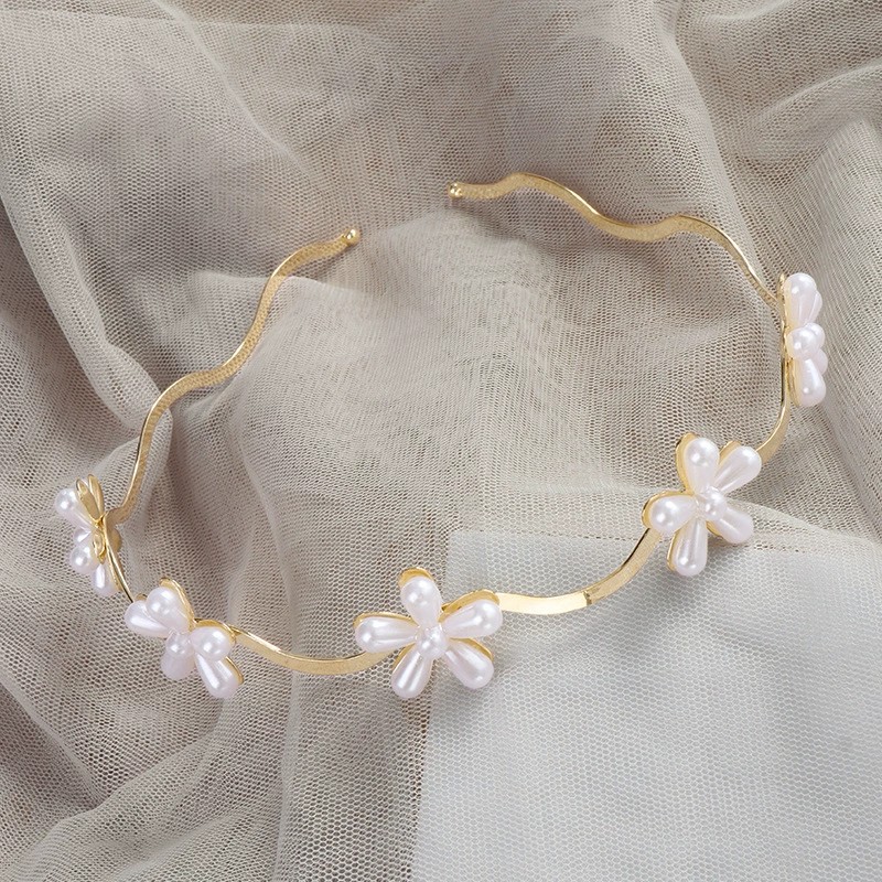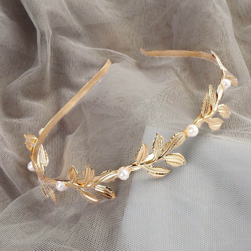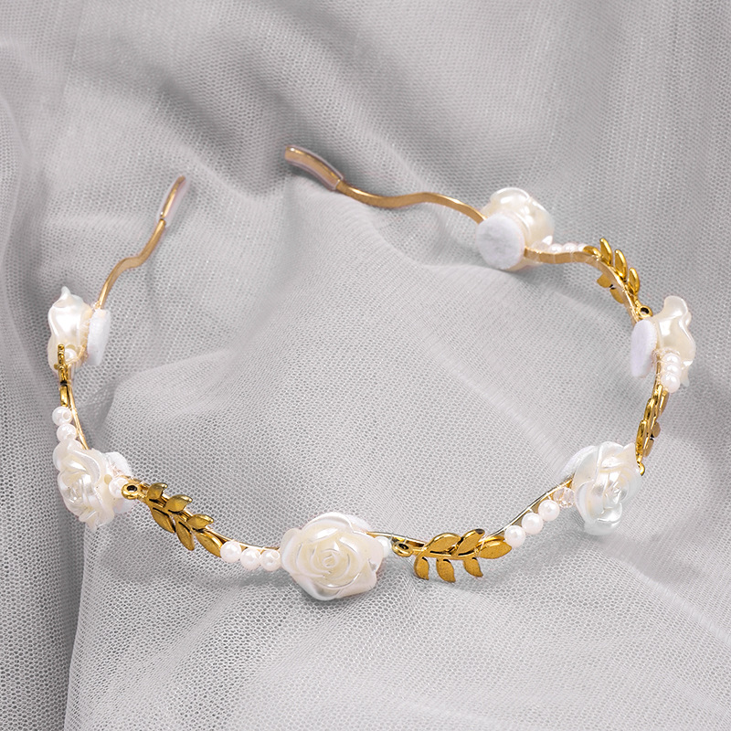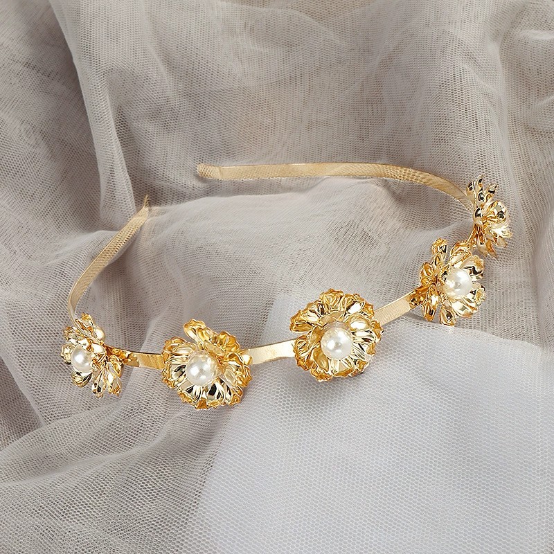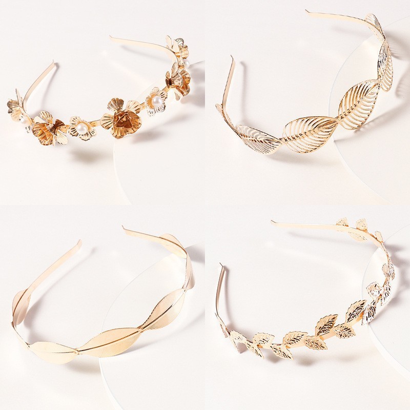 跨境头饰花朵树叶金属珍珠合金发饰头箍批发文艺复古宫廷风发箍