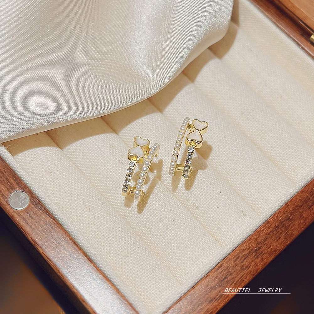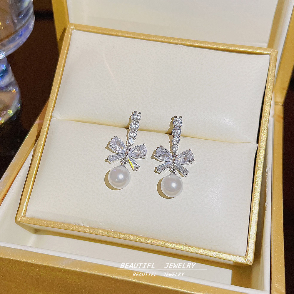 S925银针时尚甜美珍珠耳环高质量批发百搭气质耳饰女镶钻几何耳钉