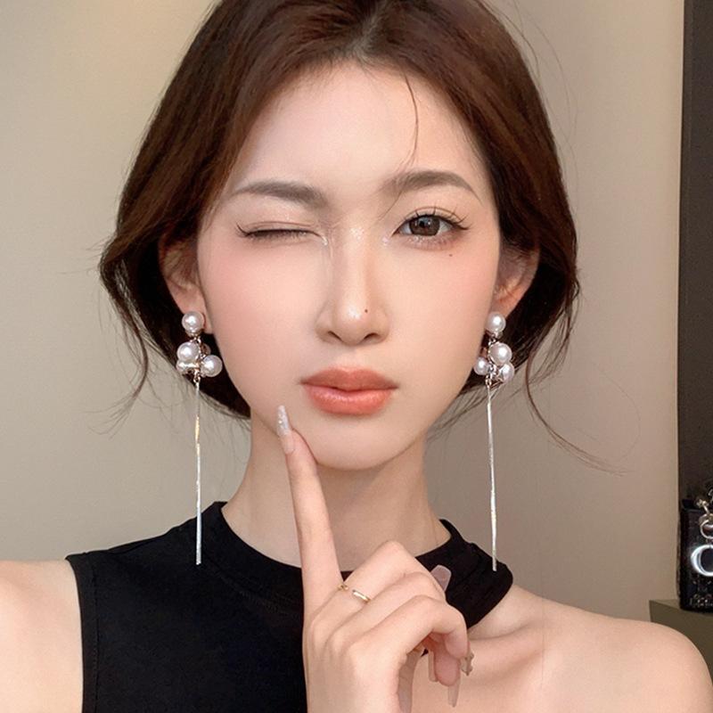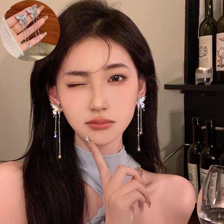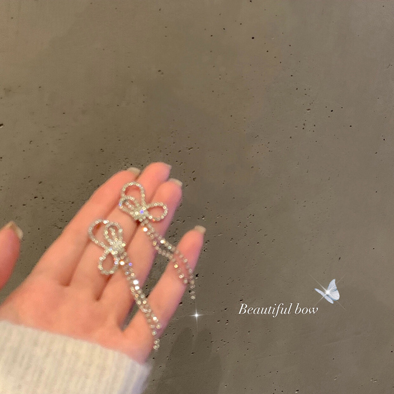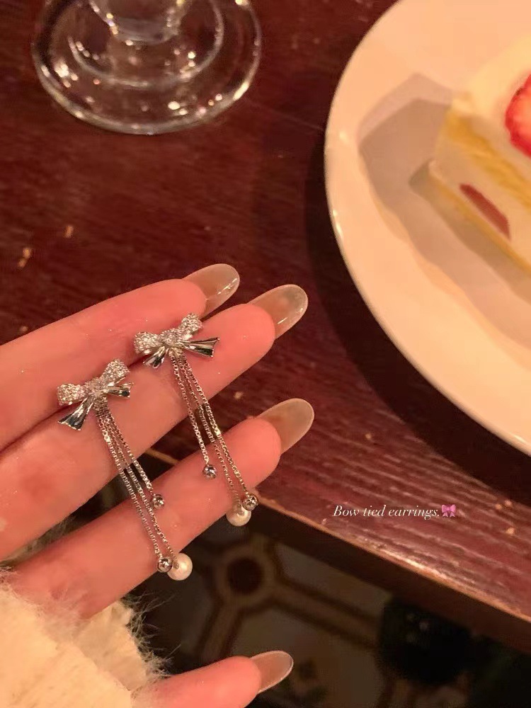 韩系小众高级感流苏耳环女轻奢设计感蝴蝶结耳钉百搭长款耳坠耳饰