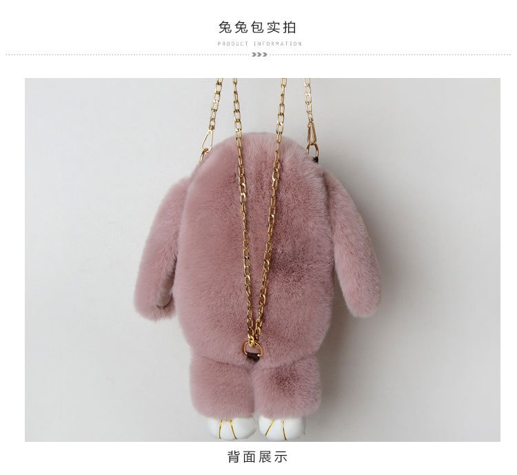 厂家现货卡通新款兔子包女可爱装死兔兔毛绒包斜跨链条单肩公仔包