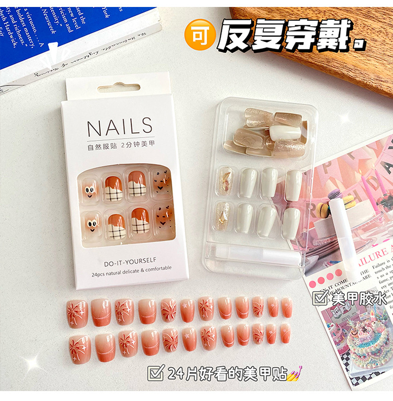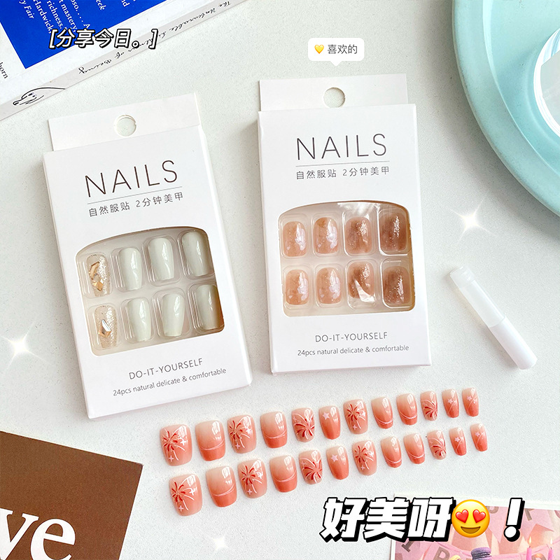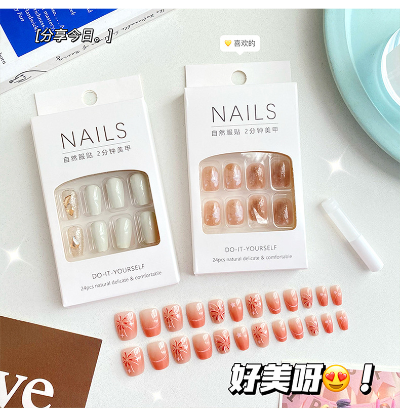 秋冬穿戴甲果冻胶美甲高级感小清新气质显白可拆卸成品网红美甲片