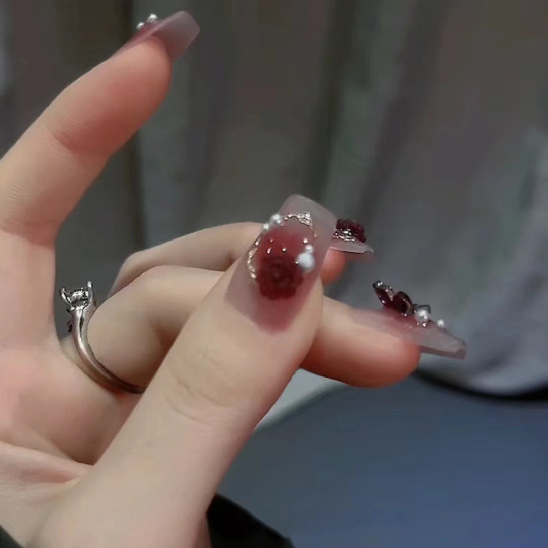 小红书乌梅子酱穿戴甲感甜酷辣指甲贴片新娘结婚美甲成品