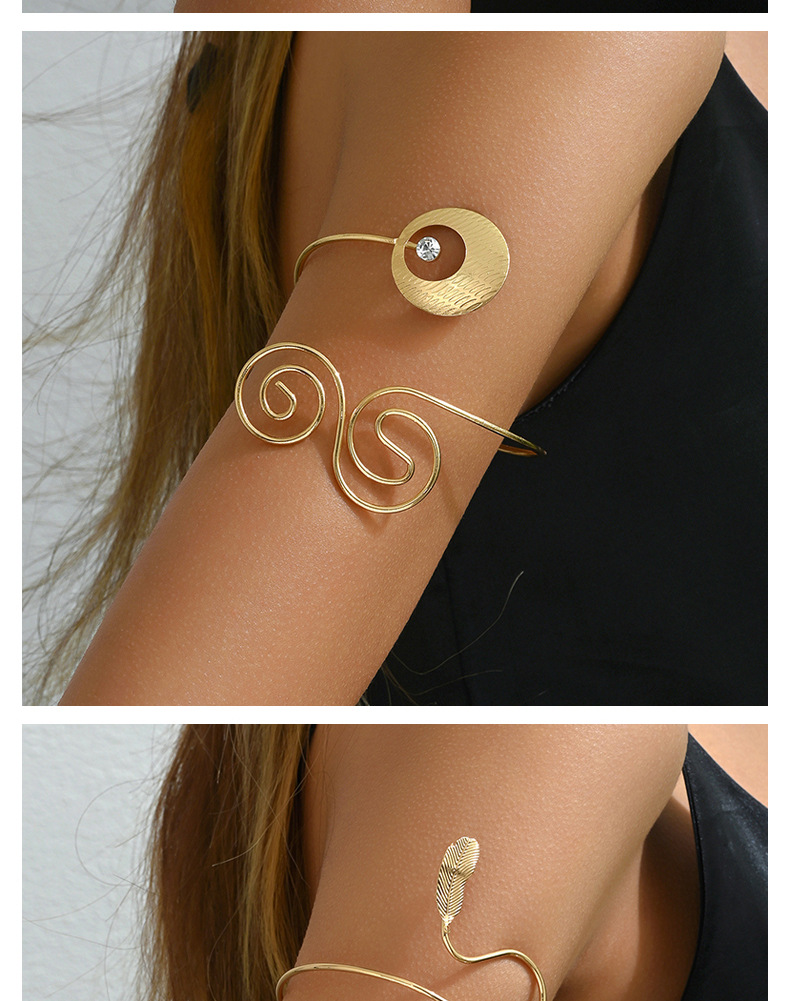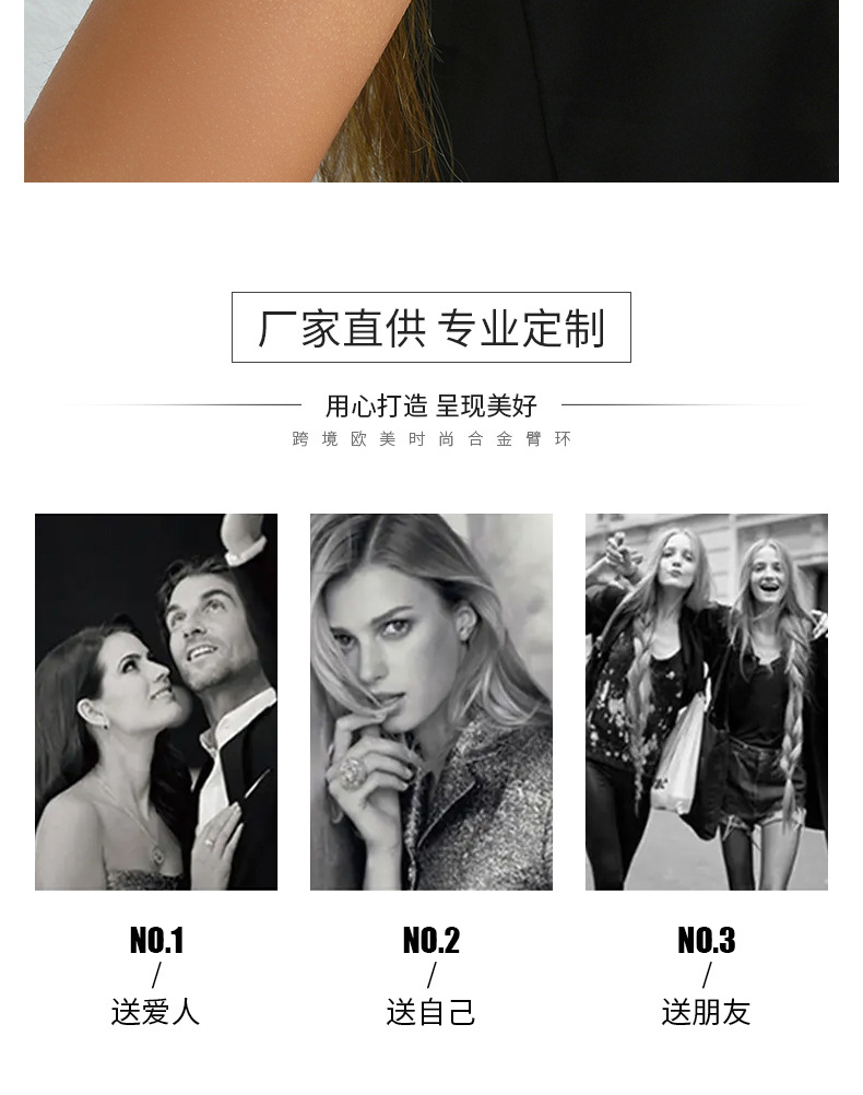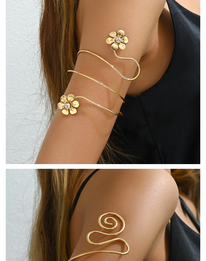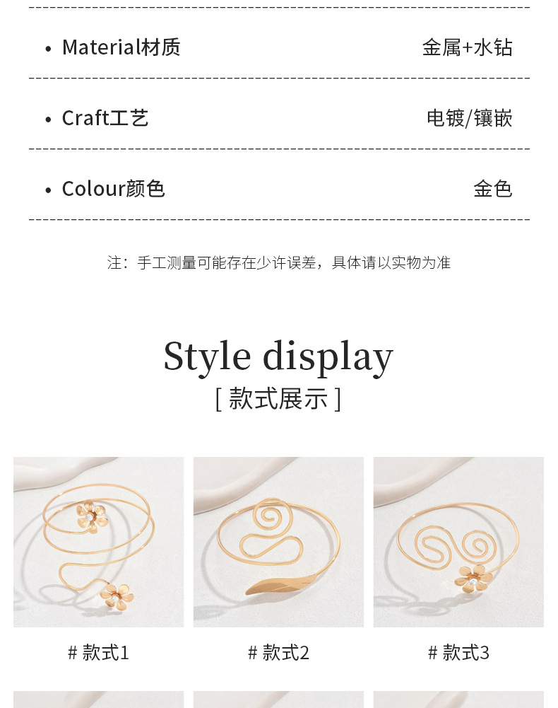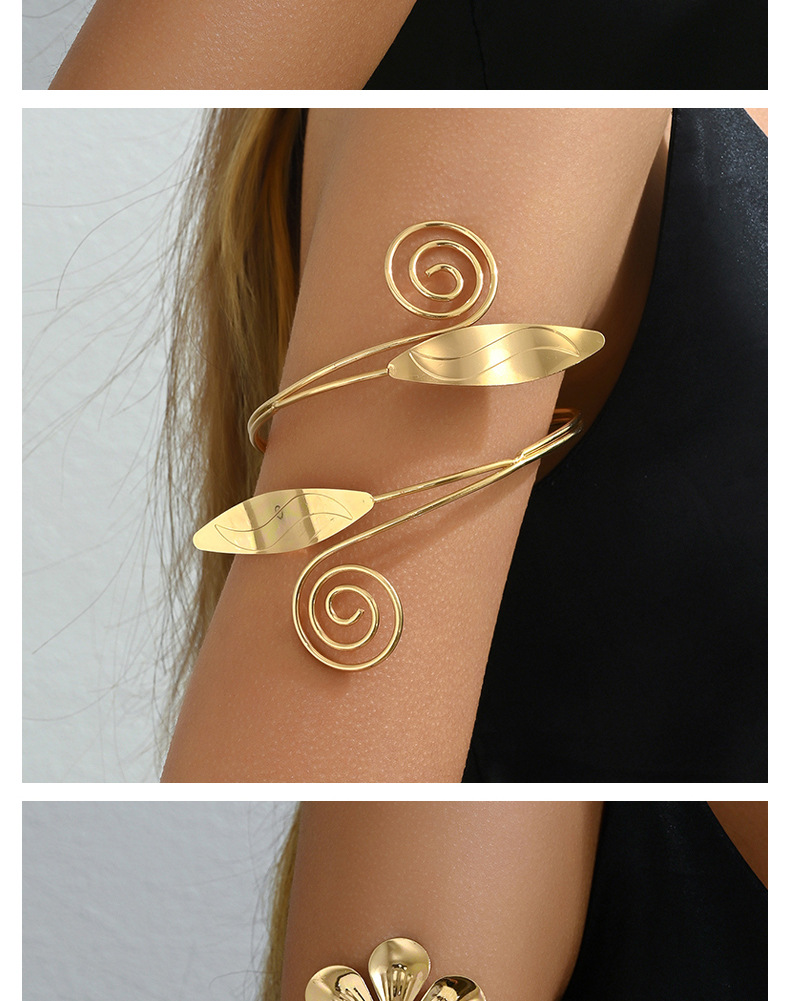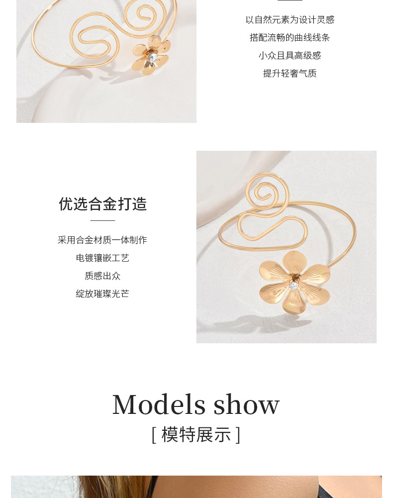 跨境欧美时尚潮酷可调节手饰女光面纹理开口臂环饰品花朵树叶手环