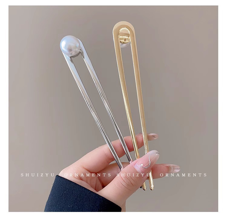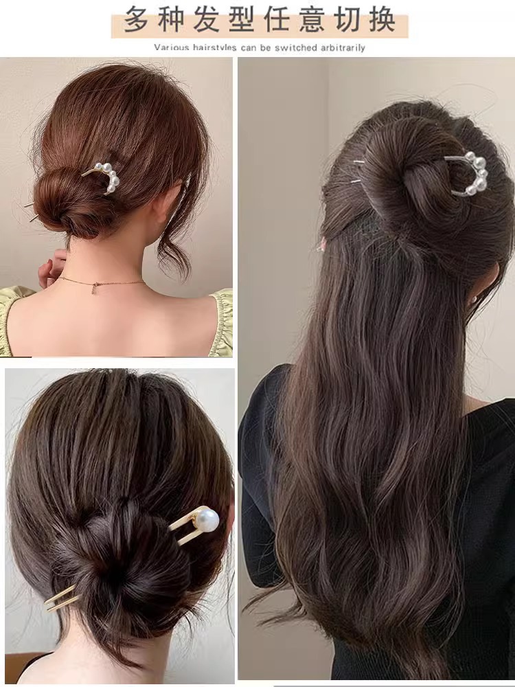 2024新款u型发簪珍珠发夹女后脑勺丸子头饰盘发神器插梳发钗簪子