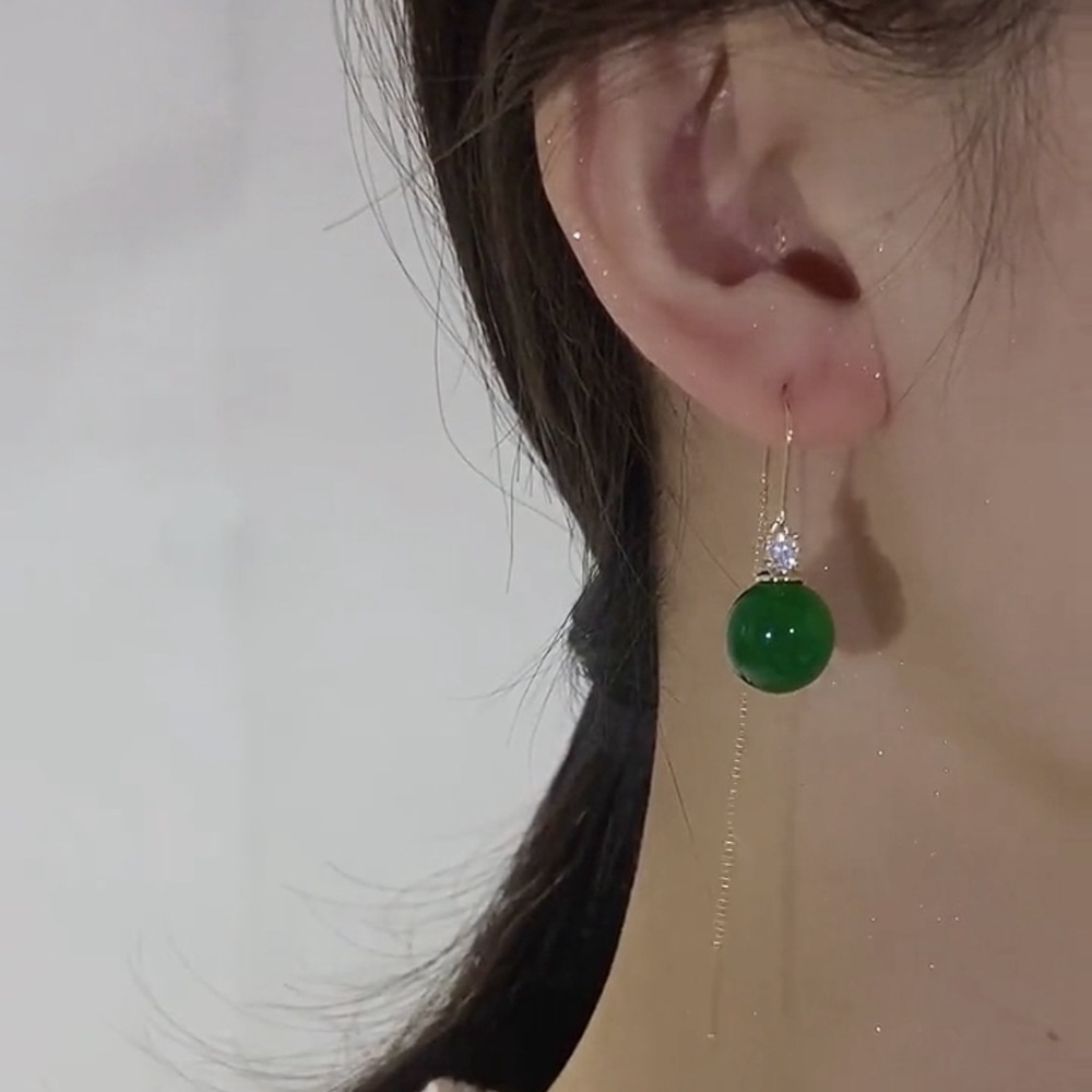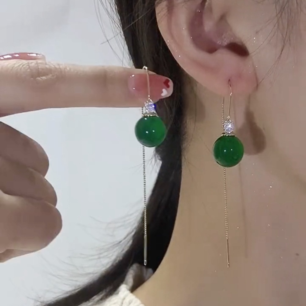 绿色猫眼石流苏耳线超仙长款耳环轻奢小众新款气质显瘦百搭耳饰女