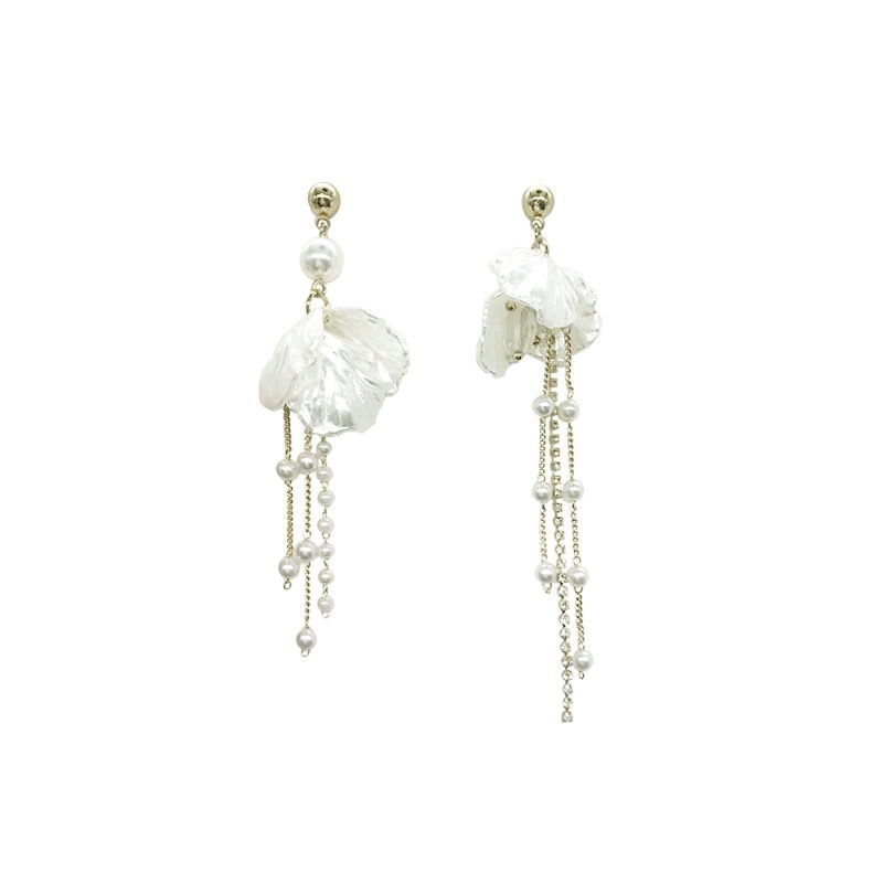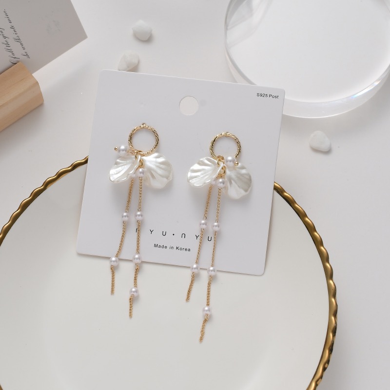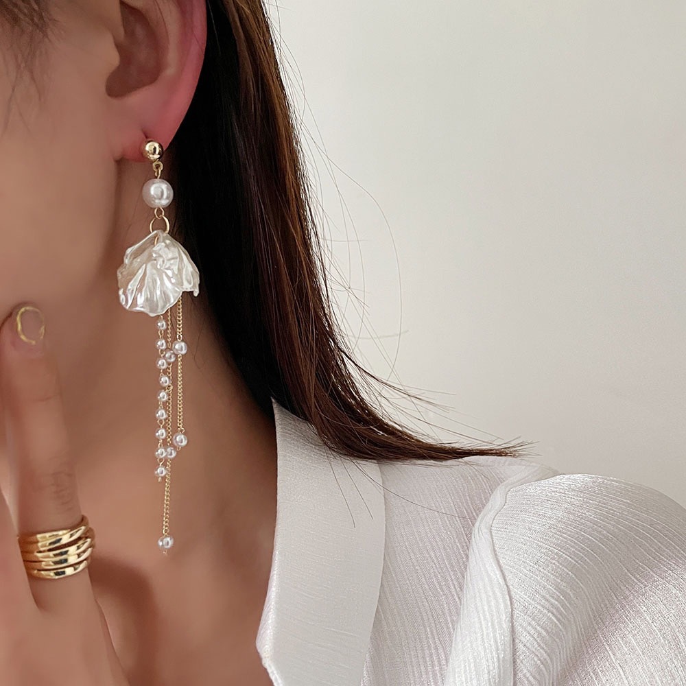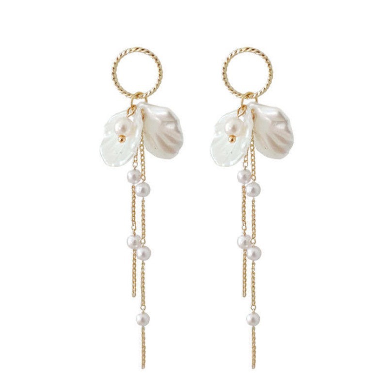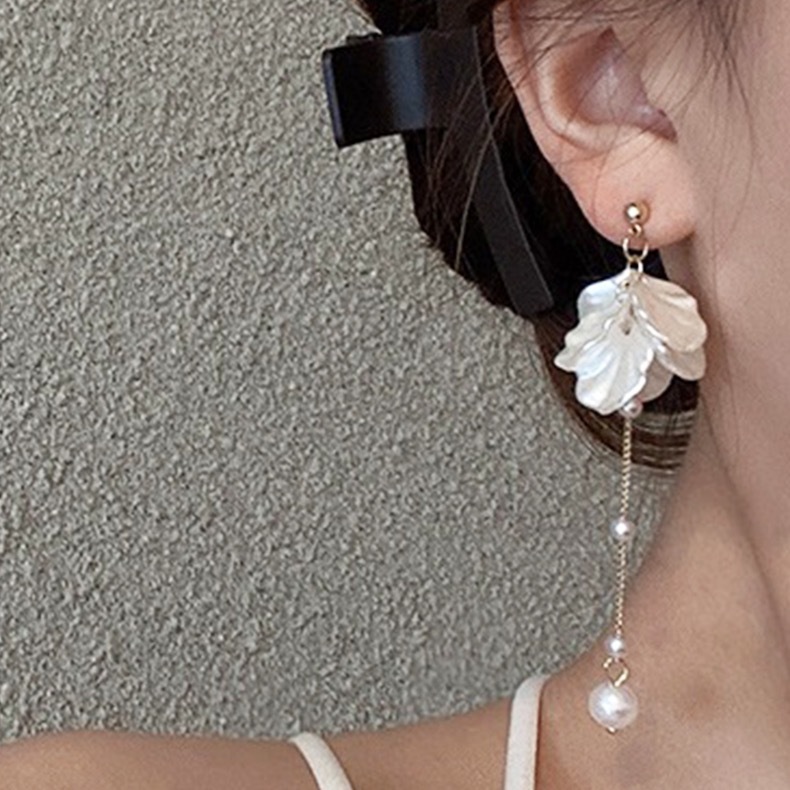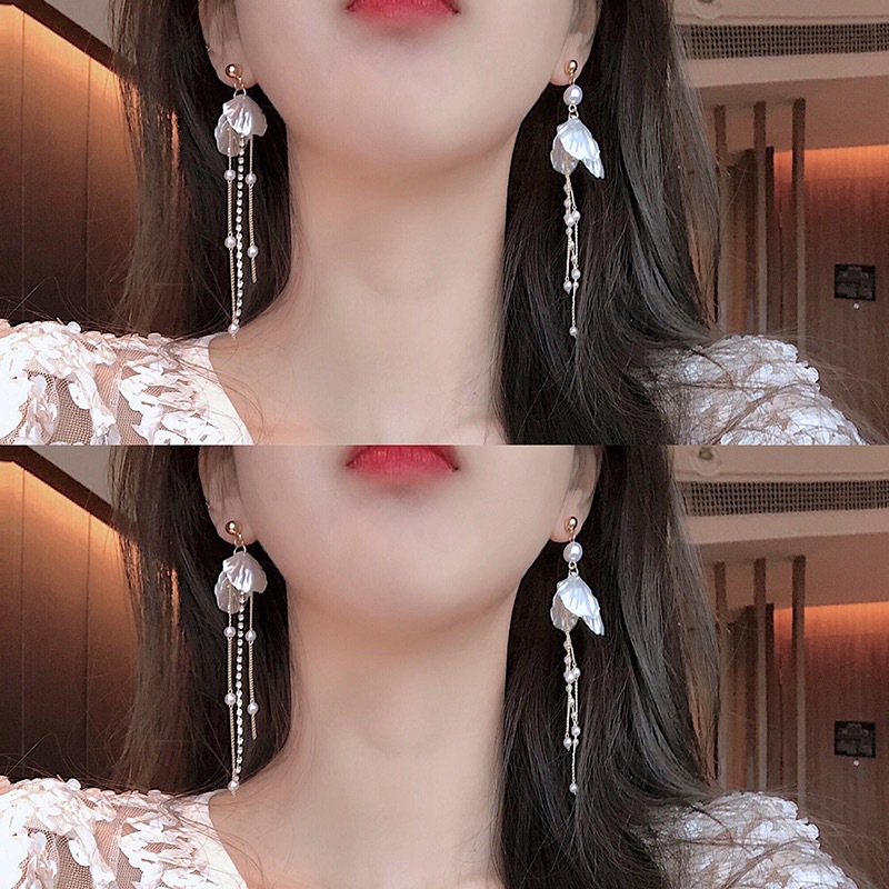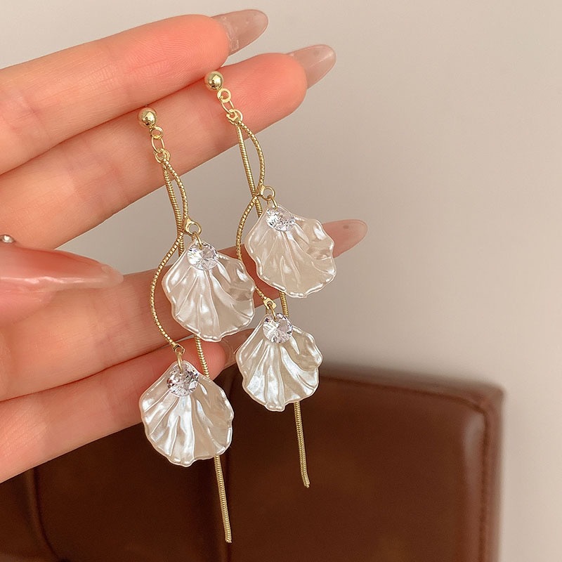 贝壳花流苏~ 超仙花瓣长款显瘦轻奢耳环新款小清新森系几何耳饰潮