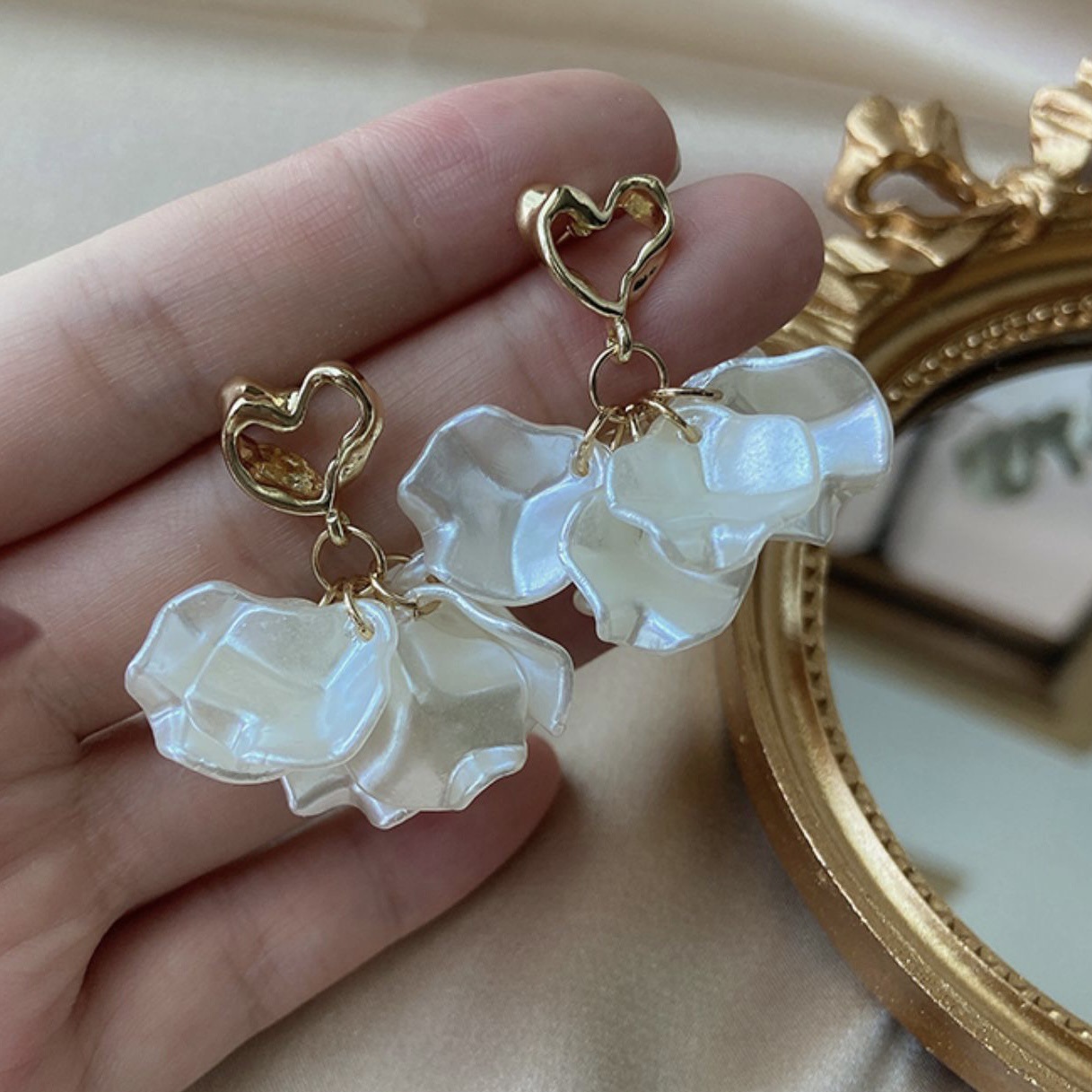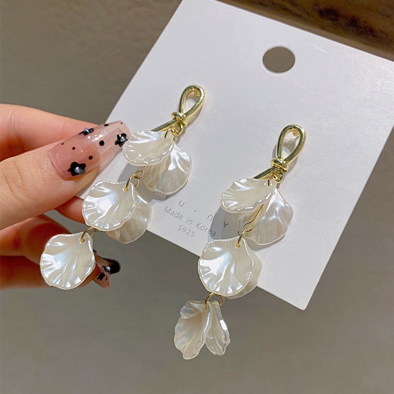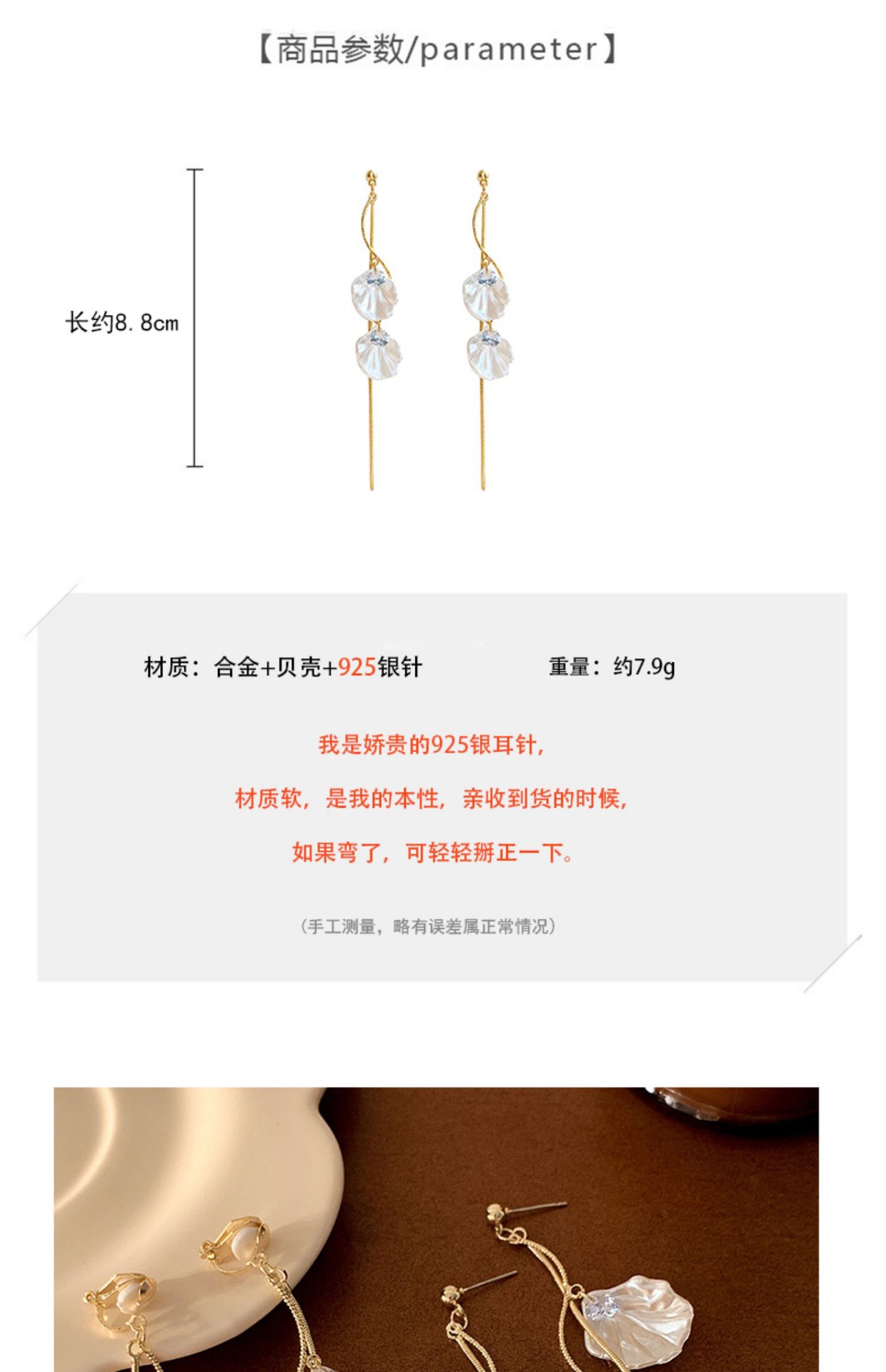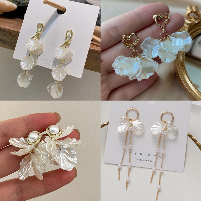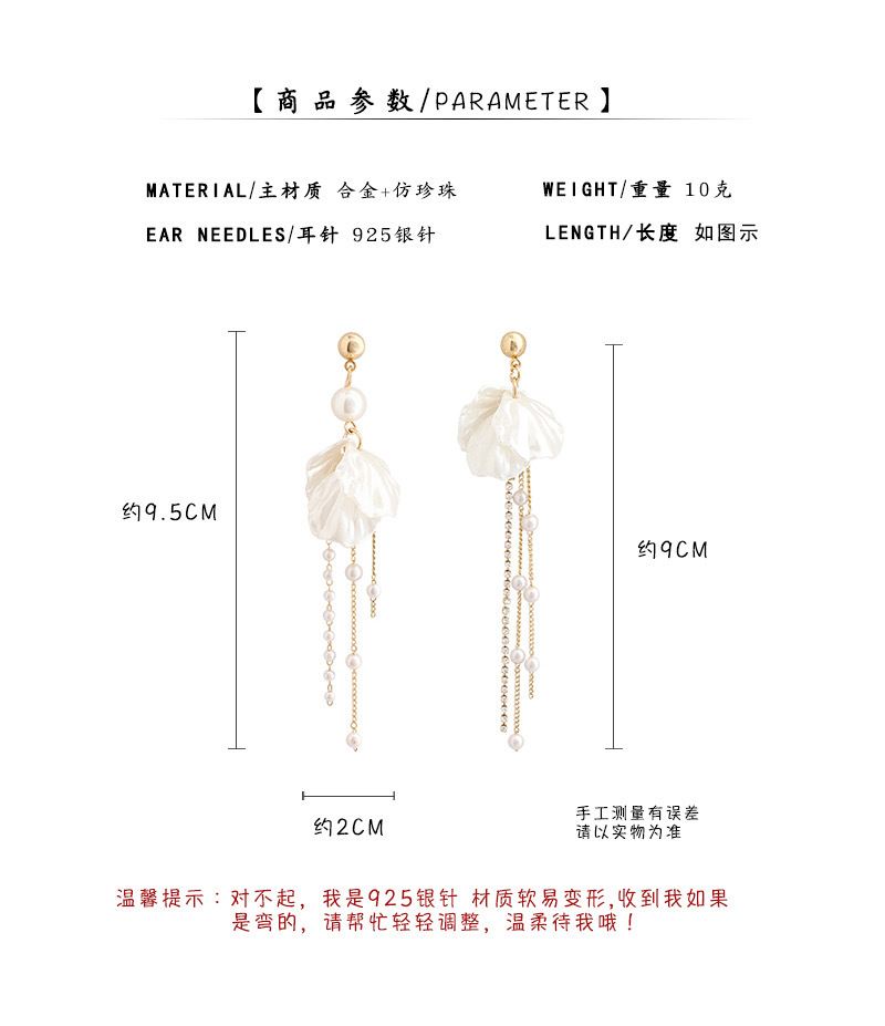 贝壳花流苏~ 超仙花瓣长款显瘦轻奢耳环新款小清新森系几何耳饰潮