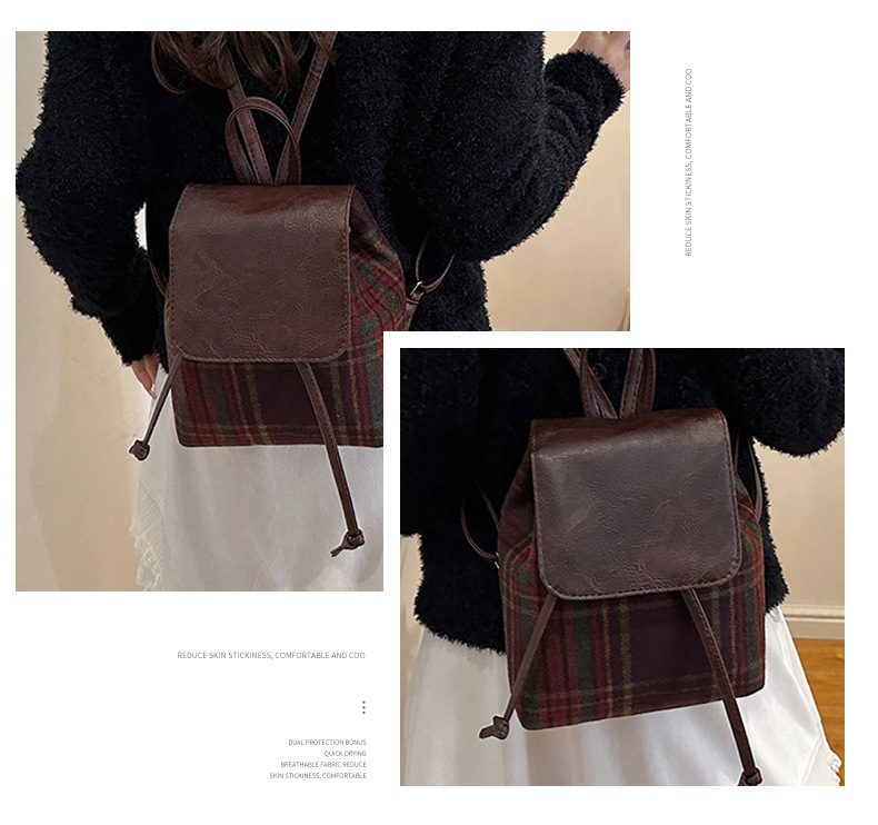 韩国少女包包女2024新款秋冬撞色毛呢双肩包小众高级感单肩包