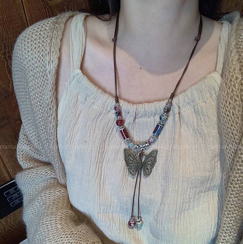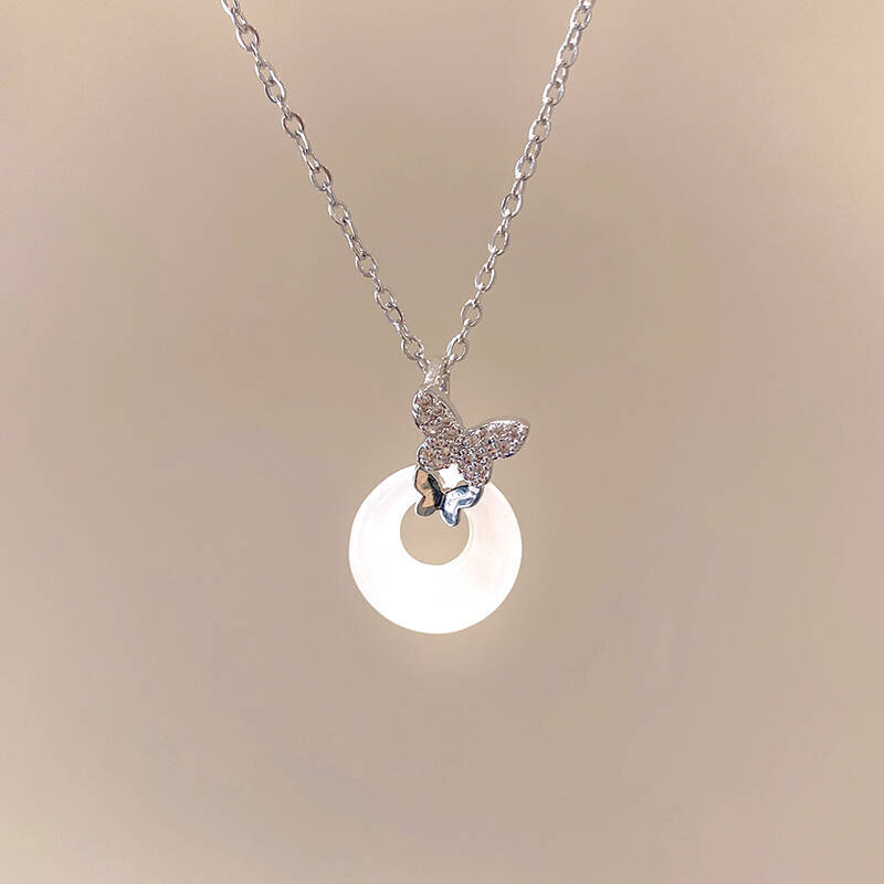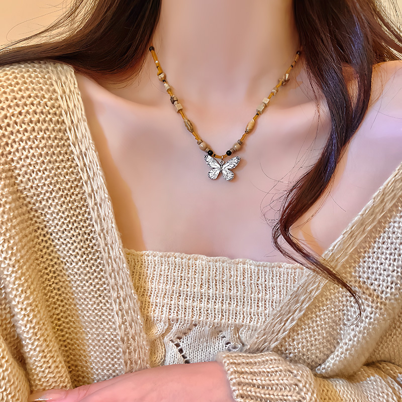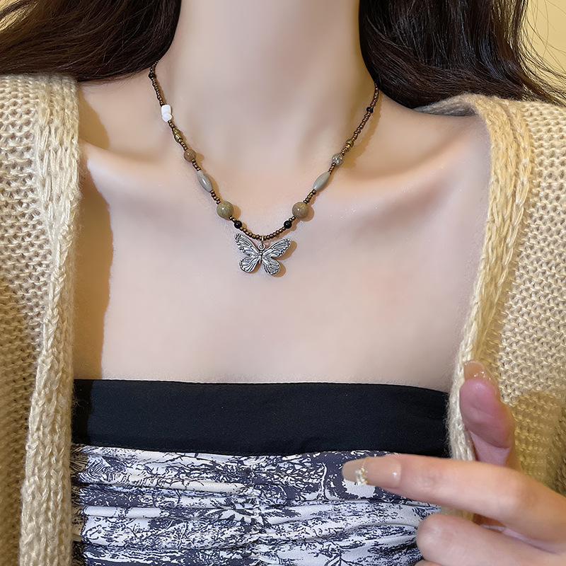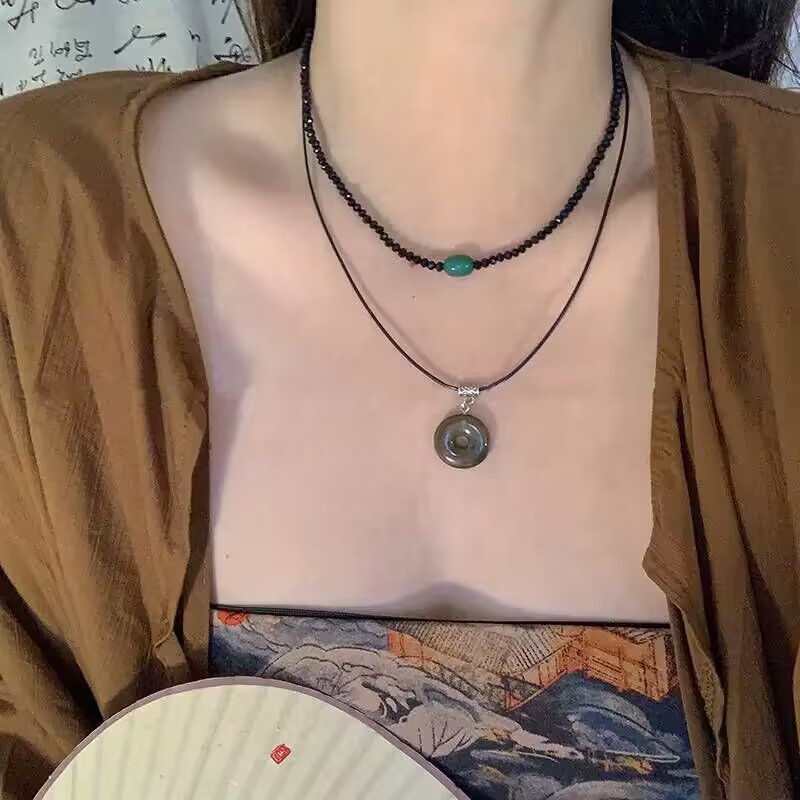新中式项链蝴蝶串珠百搭民族风平安扣古风汉服复古锁骨链配饰批发