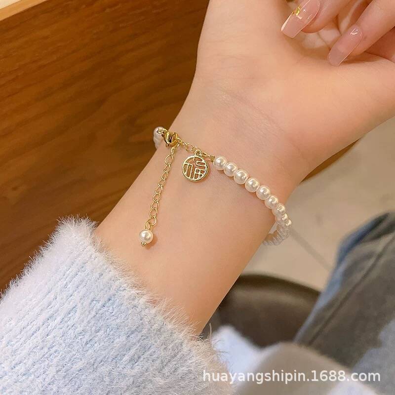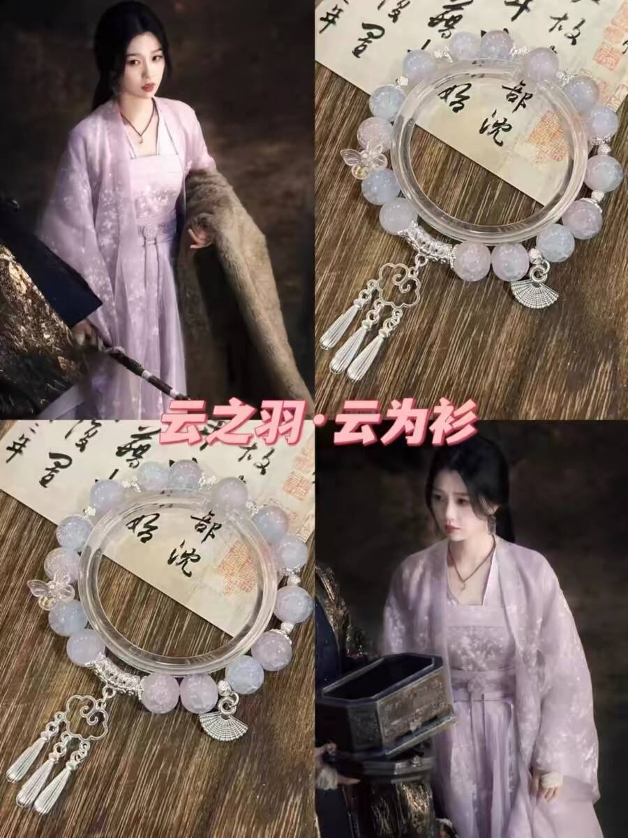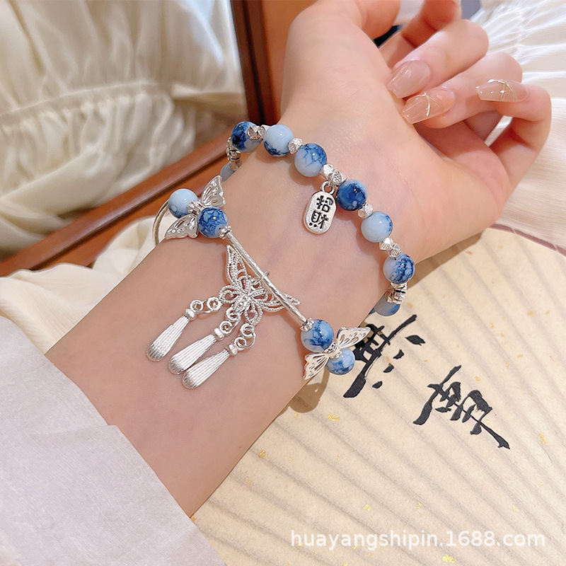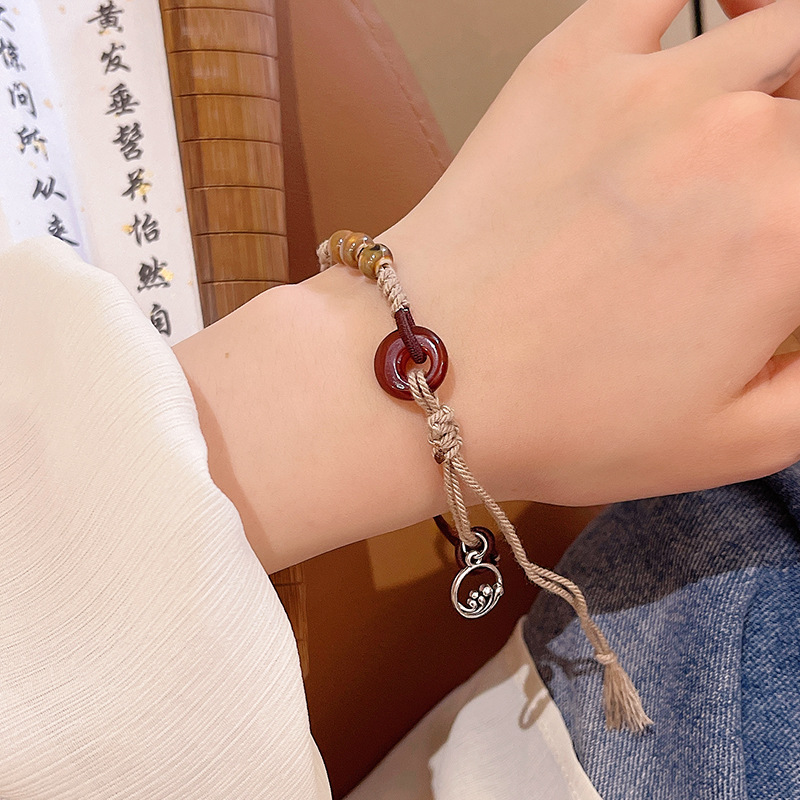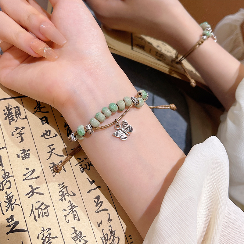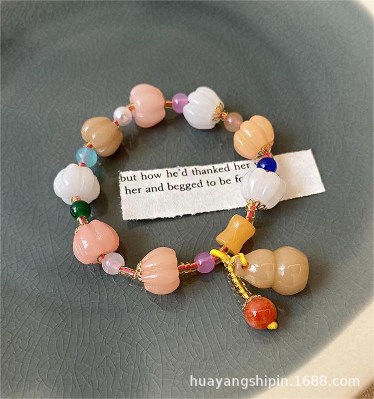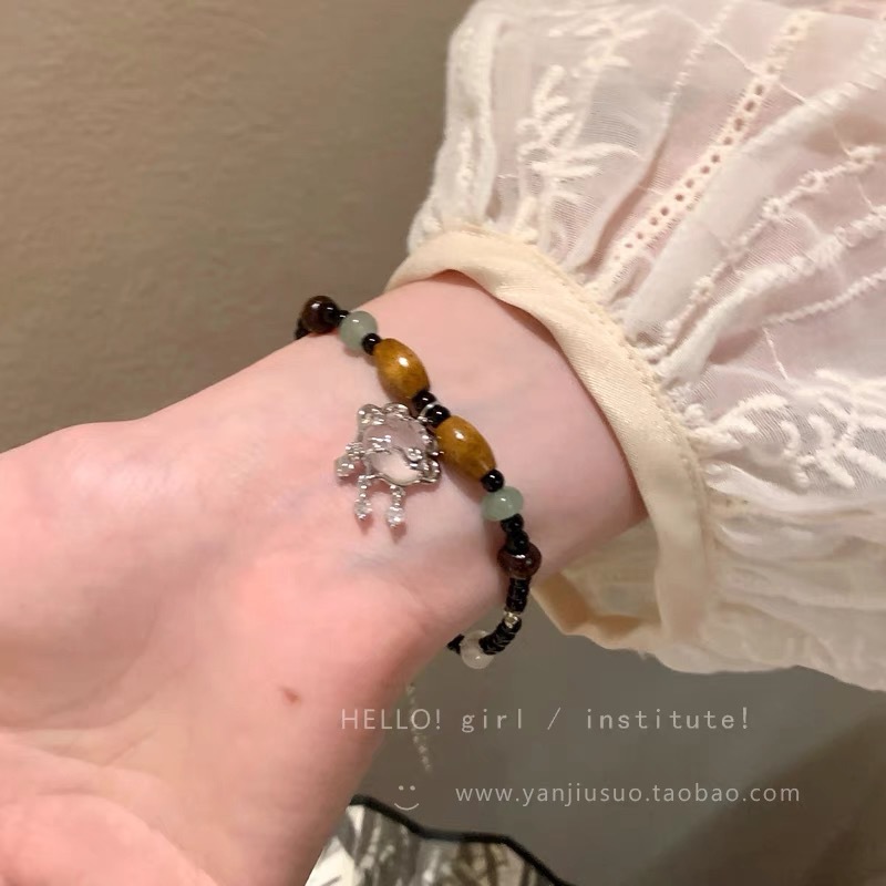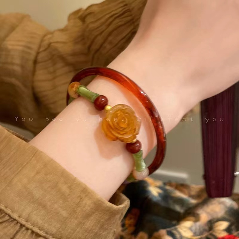 新中式串珠手链女小众复古高级感树脂汉服百搭手串 古风叮当手镯