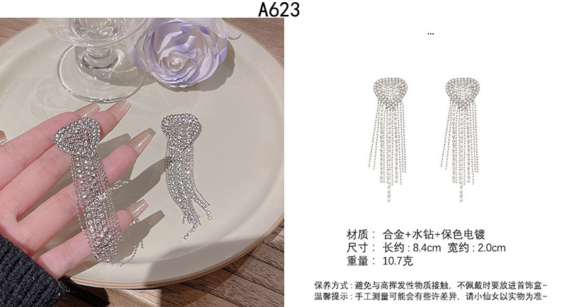 925银针高级感爪锆流苏耳环女轻奢小众气质长款耳钉圆脸显瘦耳饰