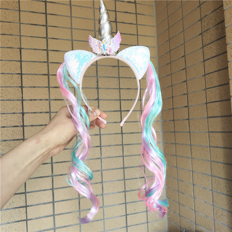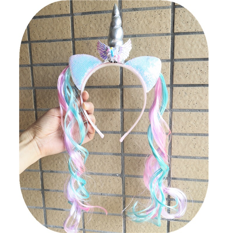 亚马逊新款通独角兽发箍假发儿童发饰可爱卡通小马宝利头饰发卡