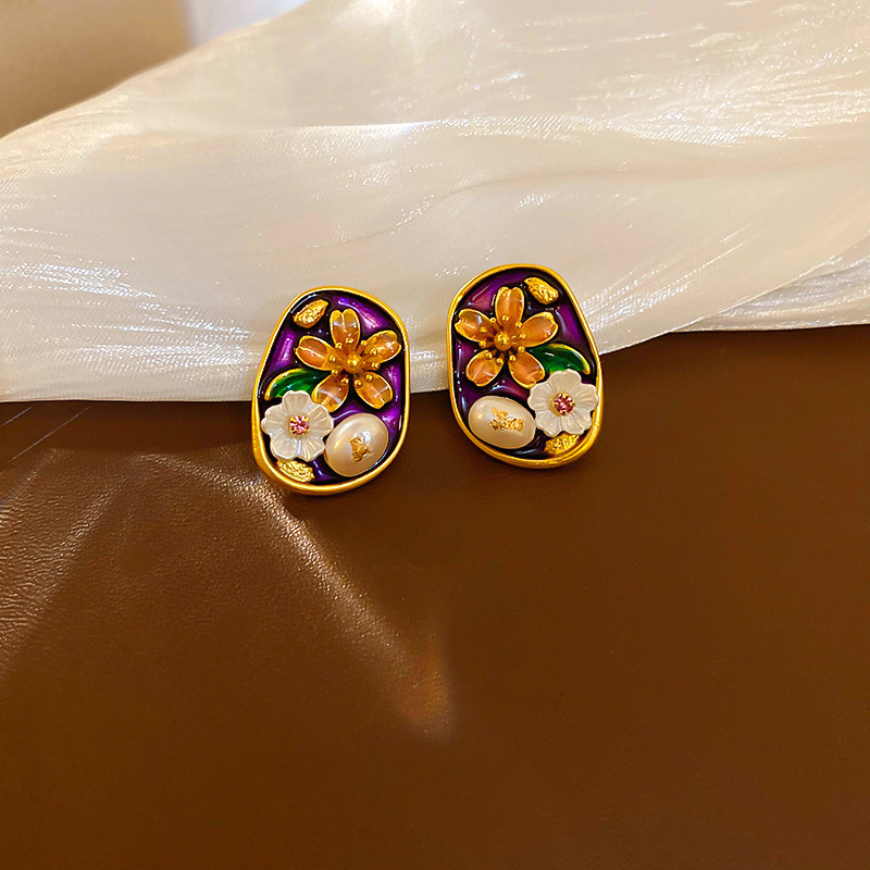 莫奈花园珍珠花朵耳钉法式森系高级感气质耳环轻奢中古耳饰女批发