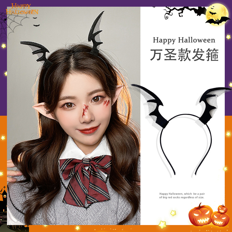 万圣节头饰恐怖女巫发箍cos小恶魔翅膀发箍配饰万圣头饰精灵耳朵