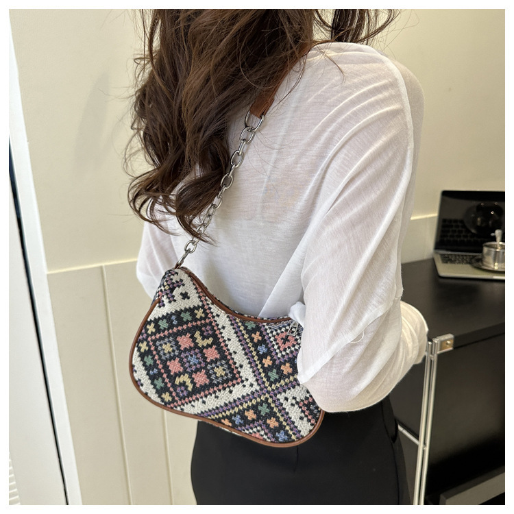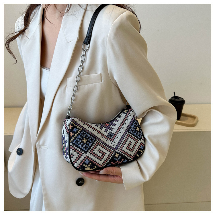 民族风腋下小方包简约时尚2024秋新款单肩手提新月包洋气个性女包