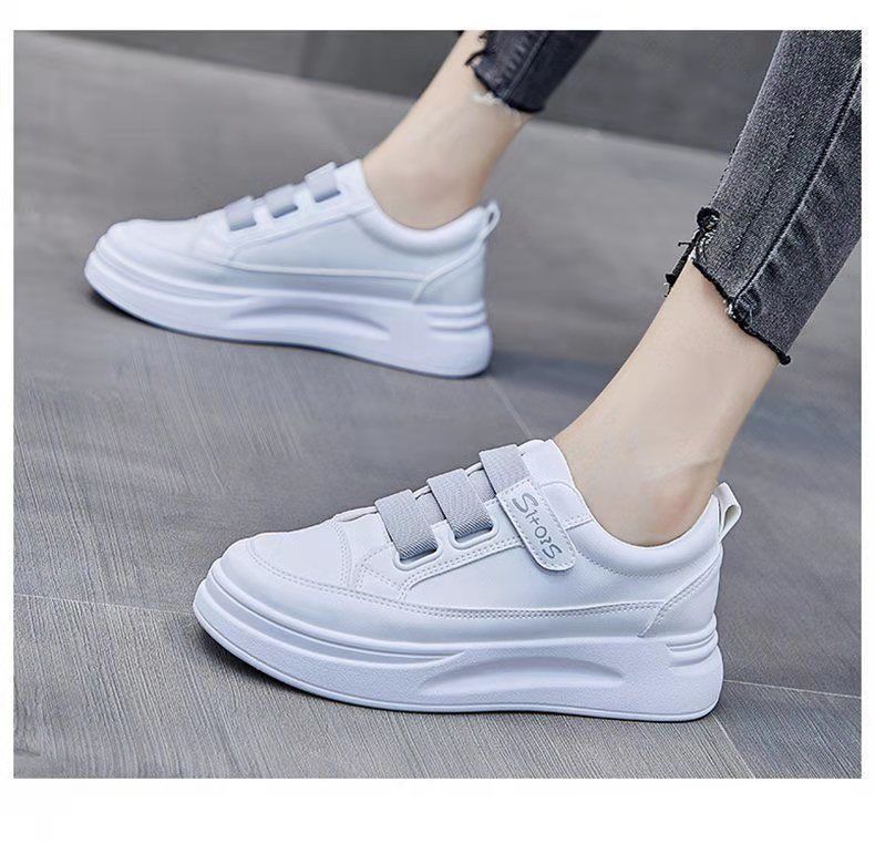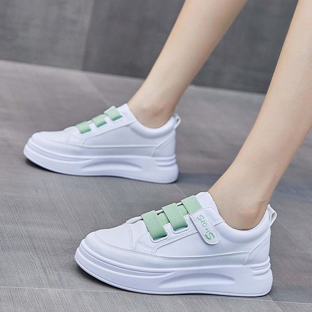 小白鞋女鞋2024春季新款魔术贴休闲百搭爆款厚底运动帆布板鞋春秋