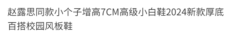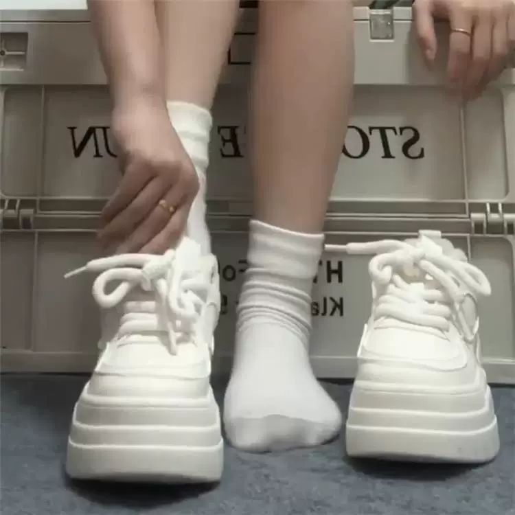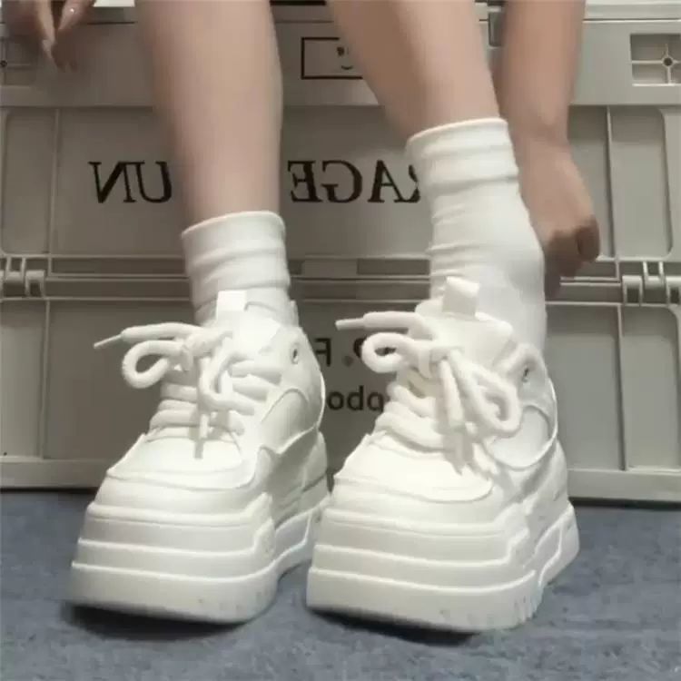 赵露思同款小个子6CM高级小白鞋2024新款厚底百搭校园风板鞋
