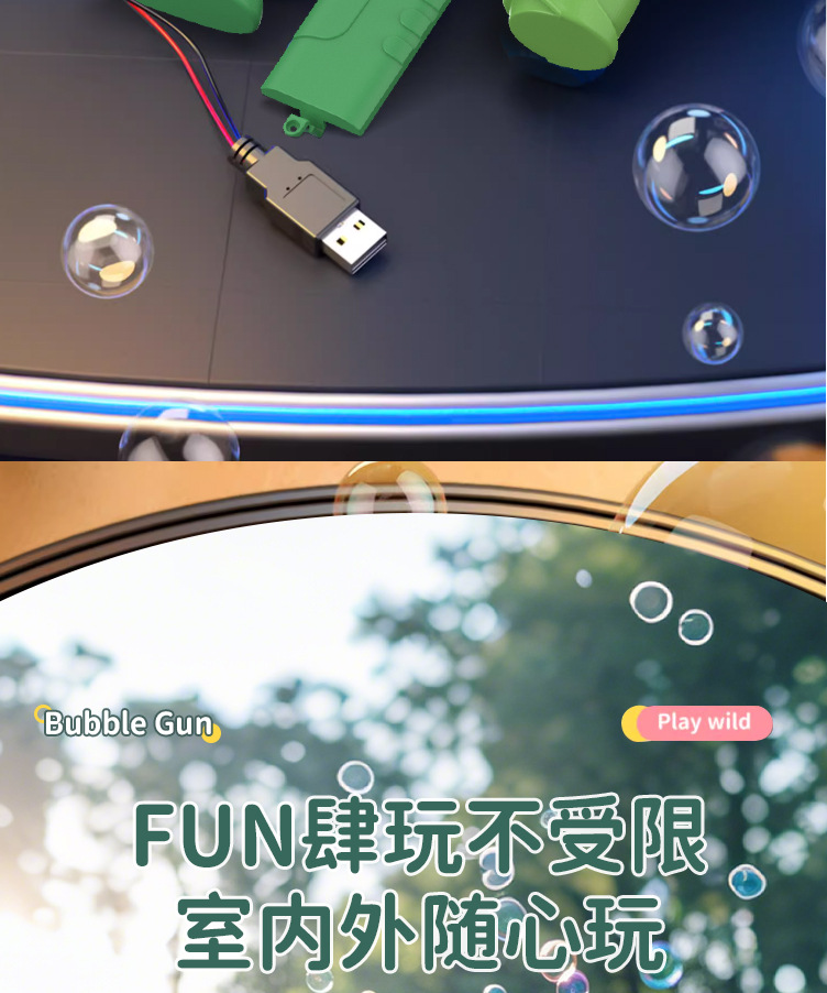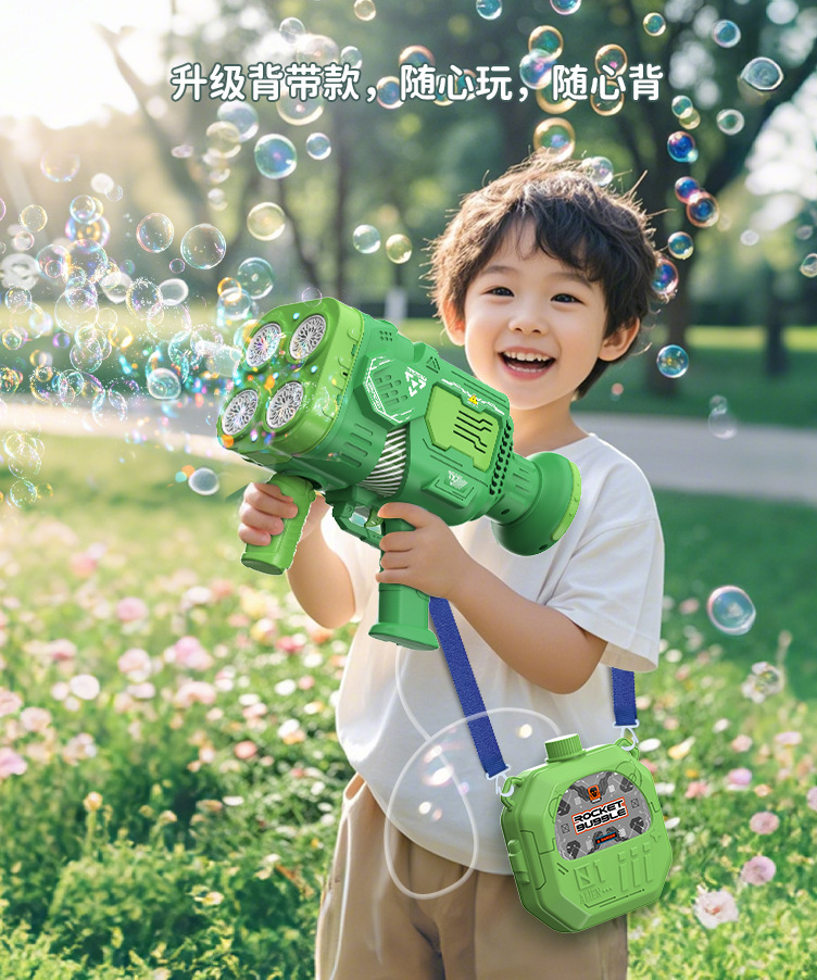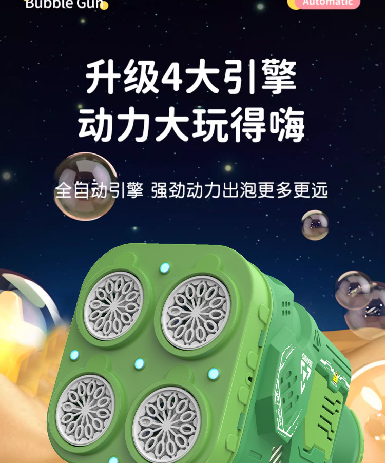 48孔太空火箭筒天使泡泡枪儿童全自动灯光电动充电款加特林泡泡机