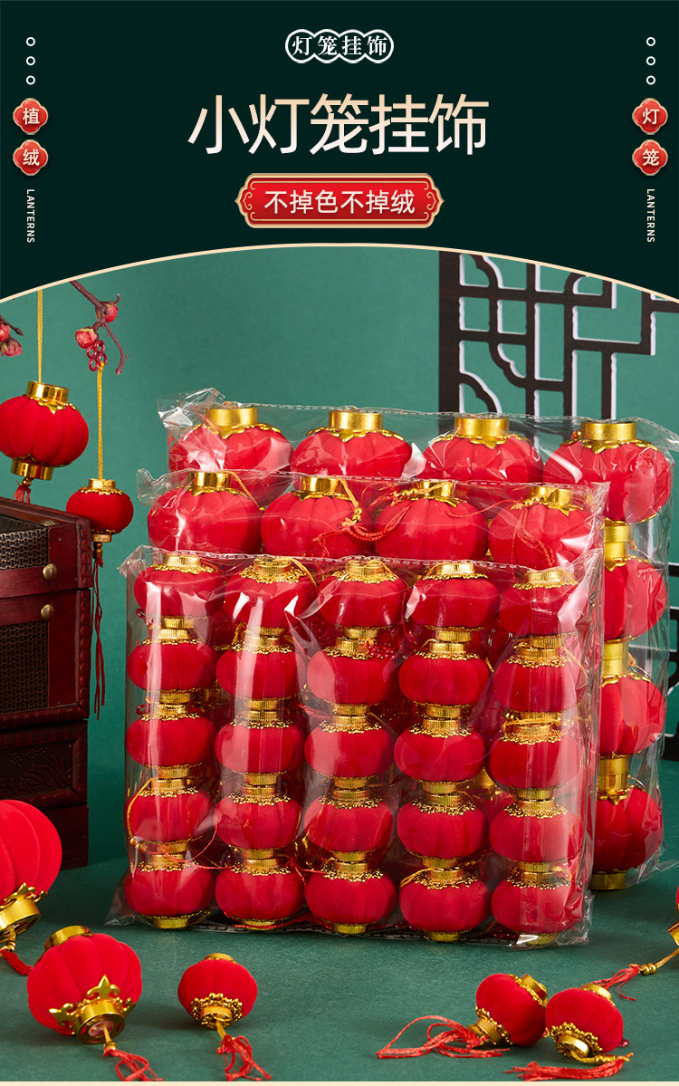 批发植绒球小红灯笼结婚装饰户外布置挂件乔迁新年春节装饰用品