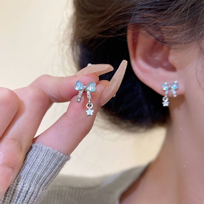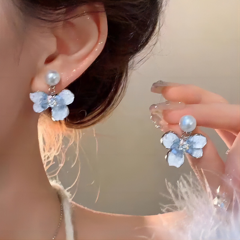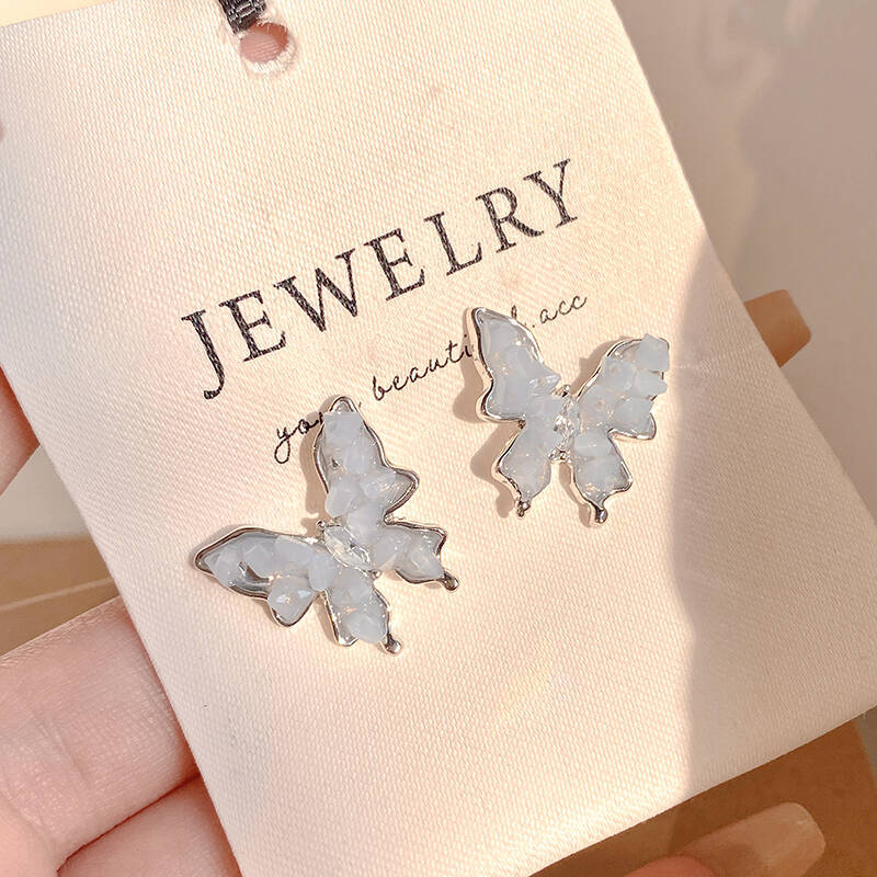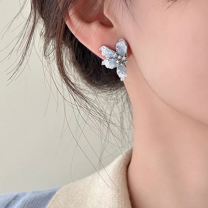 蓝色幻彩果冻耳环蝴蝶轻奢耳环高级感耳钉仿水晶气质耳饰925银针