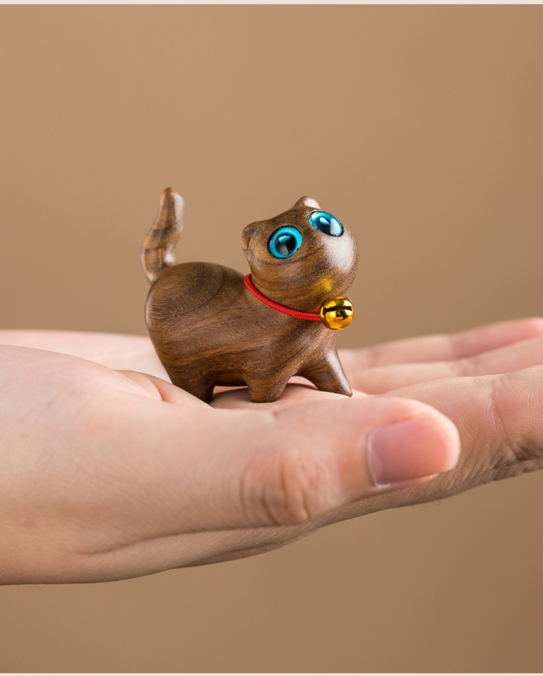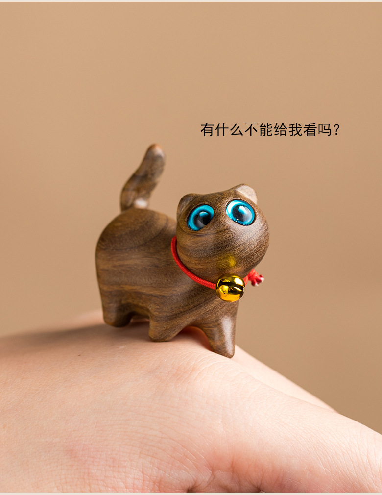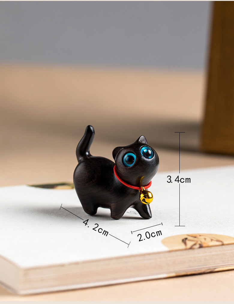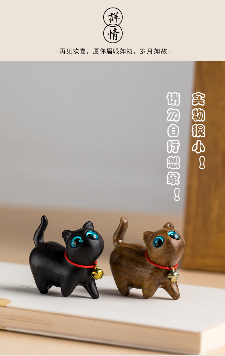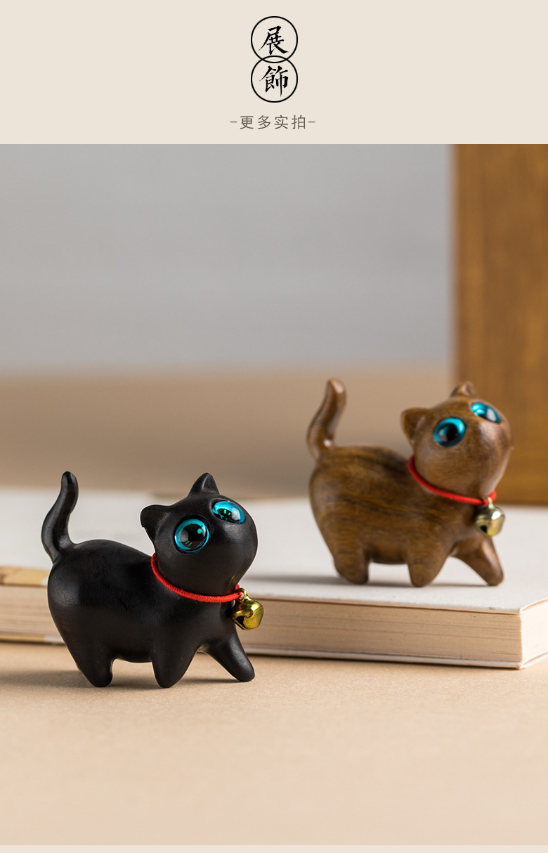 绿檀木黑檀木可爱小猫木质猫咪汽车摆件雕刻动物创意简约生日礼物