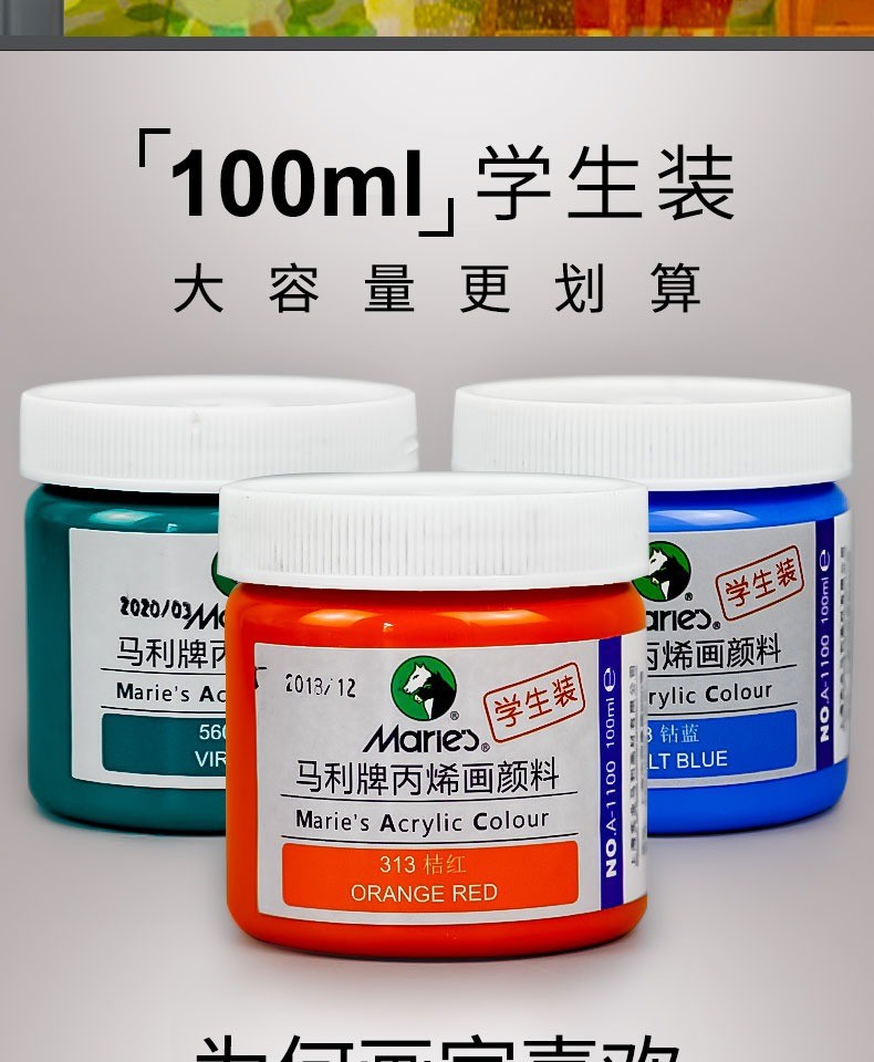 马利丙烯颜料批发100ml石膏娃娃diy防水墙绘丙烯套装炳烯A1100