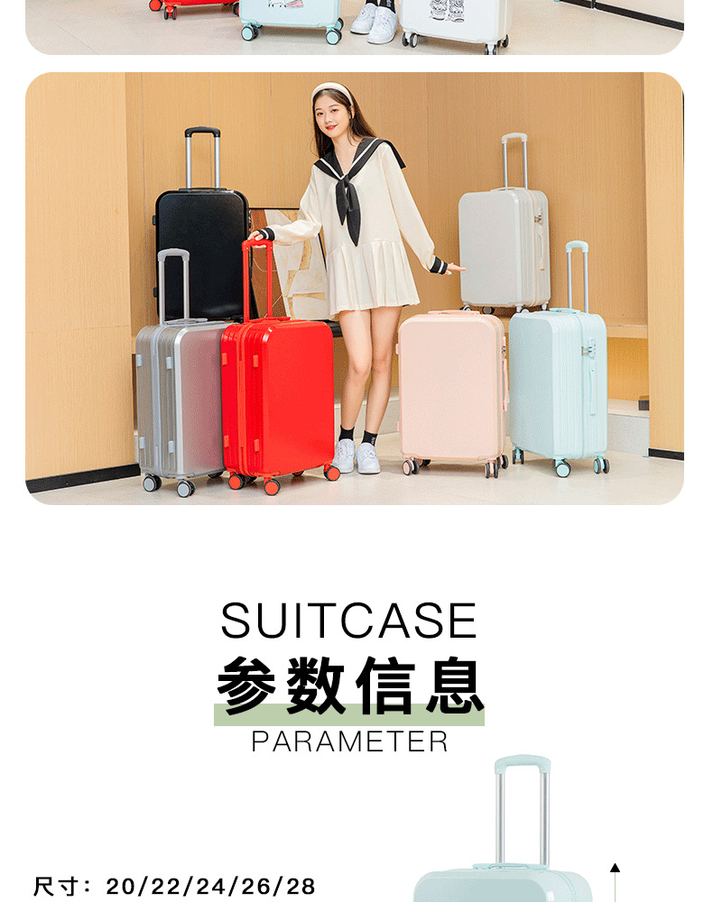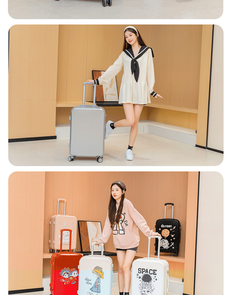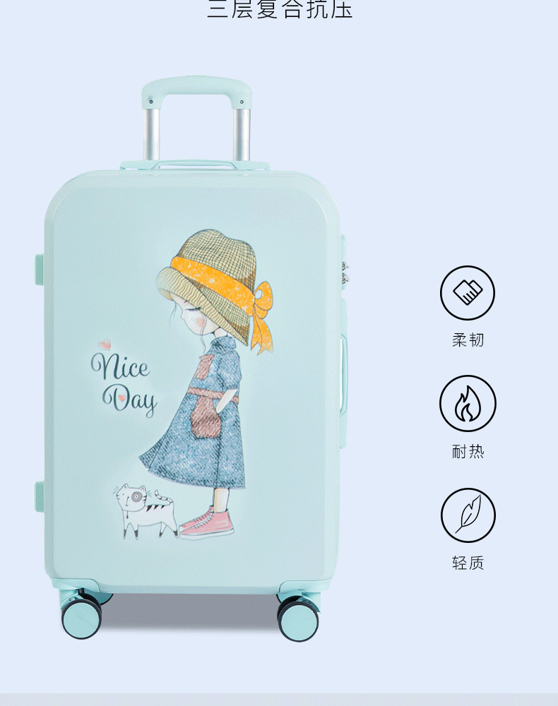 行李箱女卡通图案20寸静音万向轮密码箱26耐用结实旅行箱拉杆箱