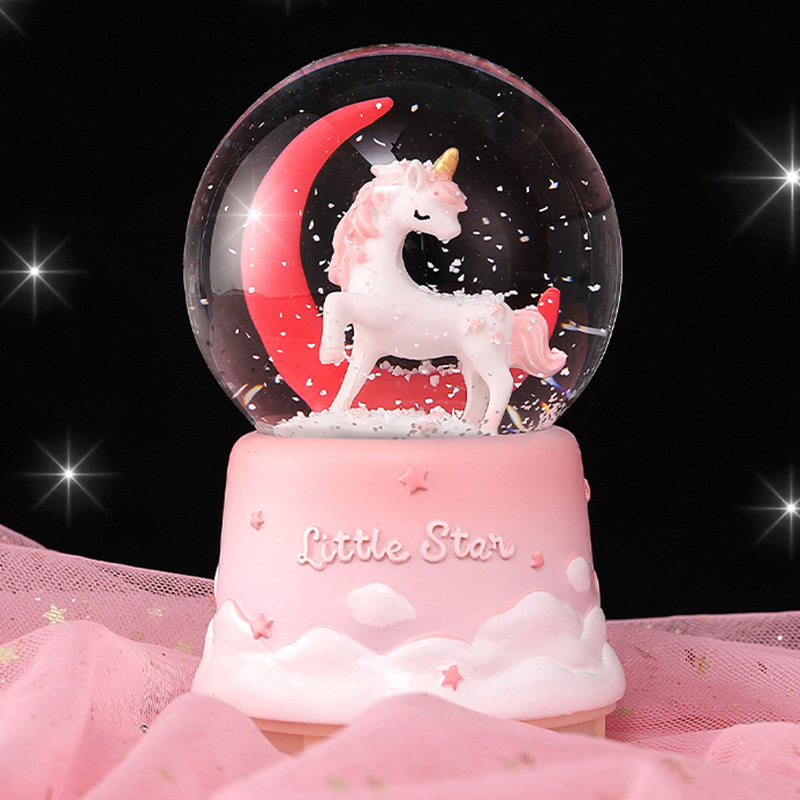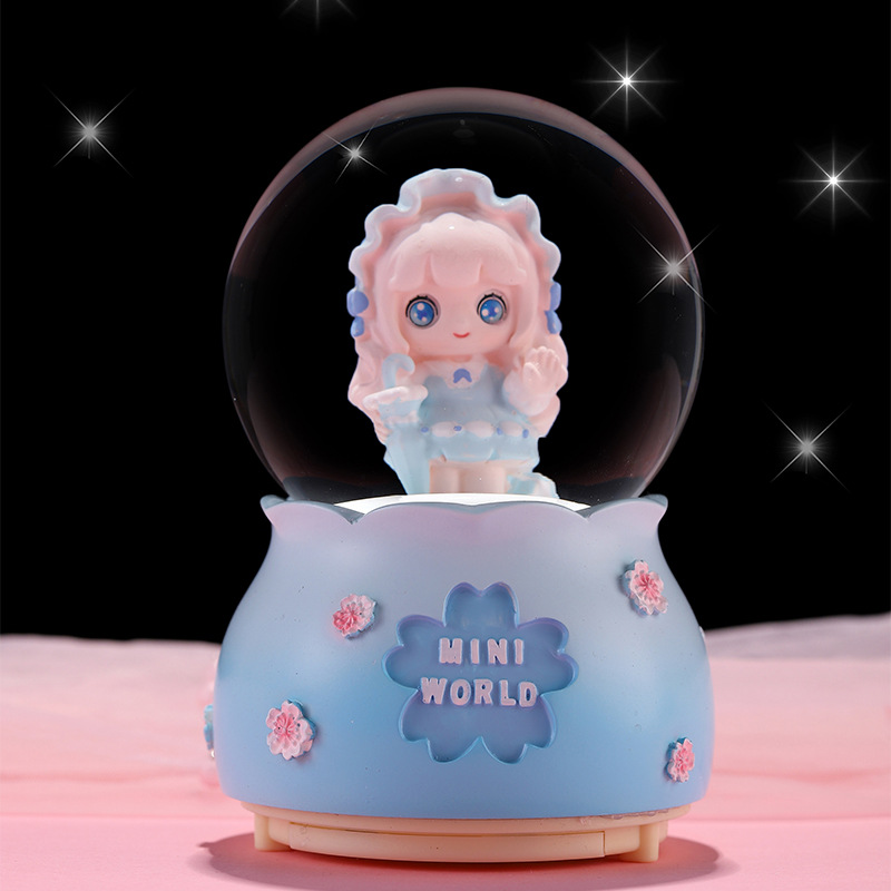 创意卡通旋转音乐盒飘雪 八音盒闪光水晶球节日纪念情侣礼物