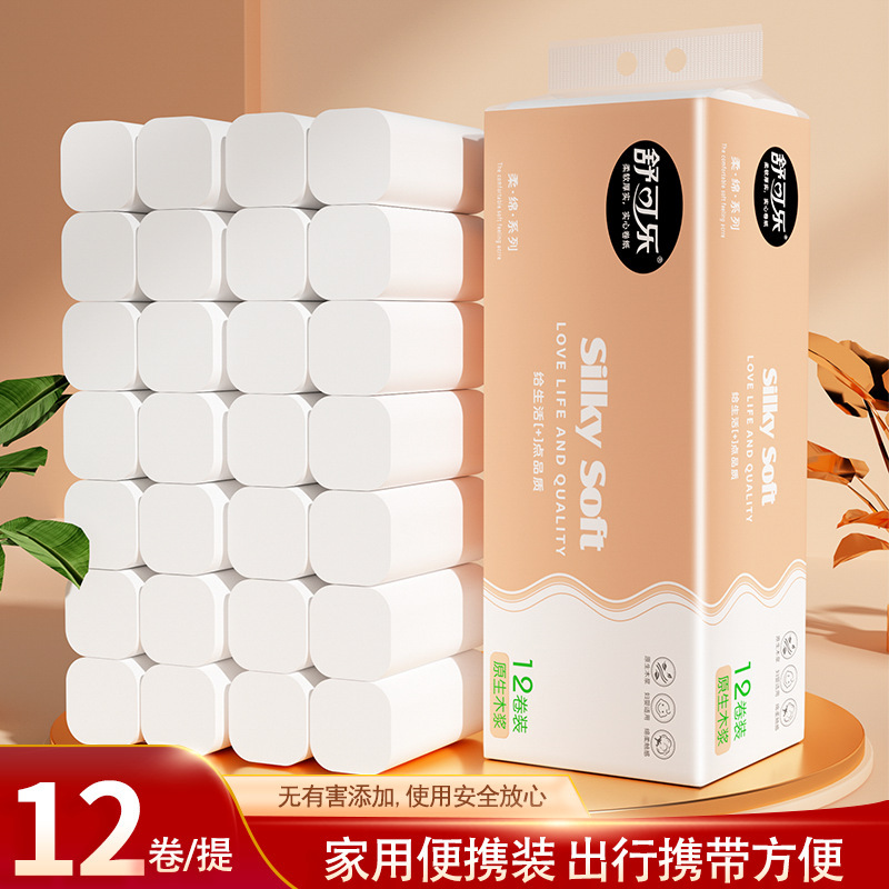 卫生纸12卷家用整箱实惠装纸巾木浆卷纸无芯厕纸手纸厕所纸巾批发