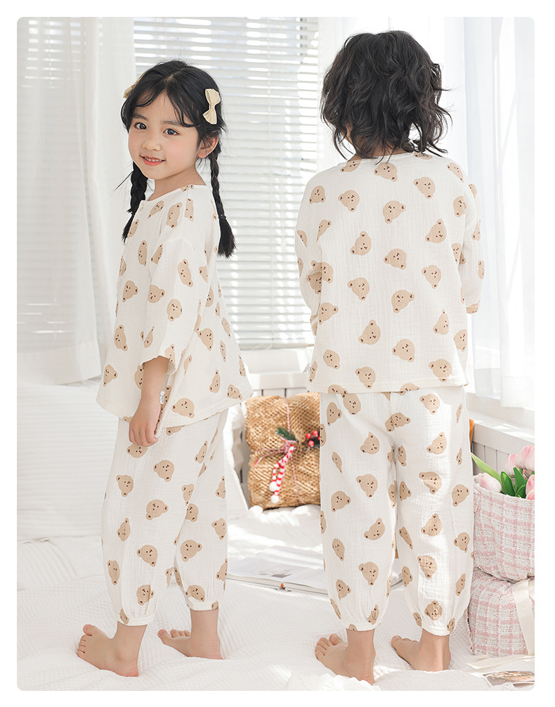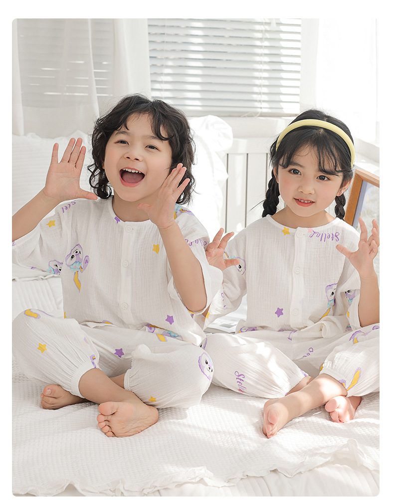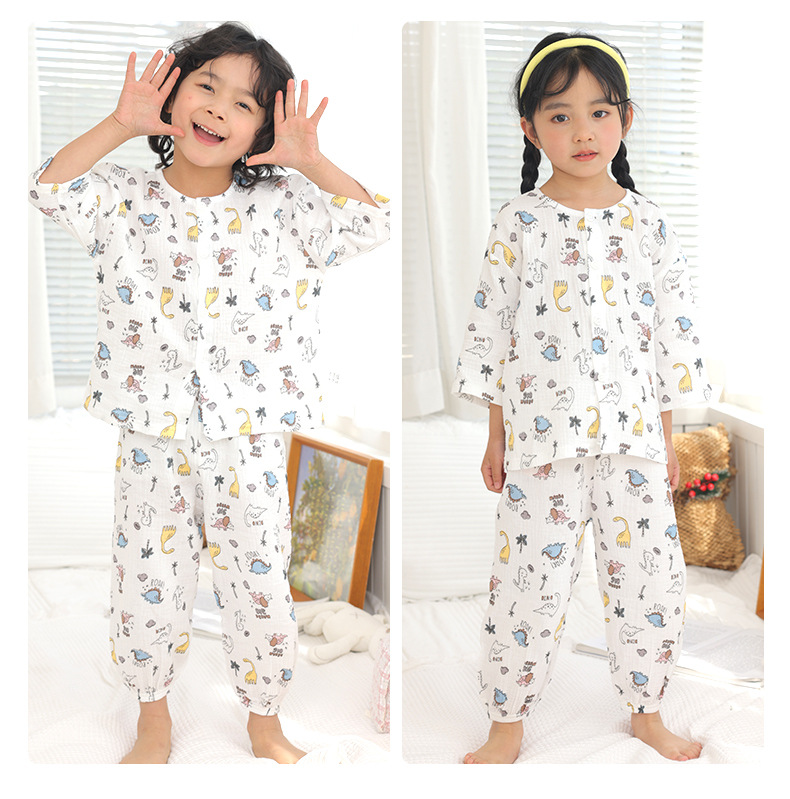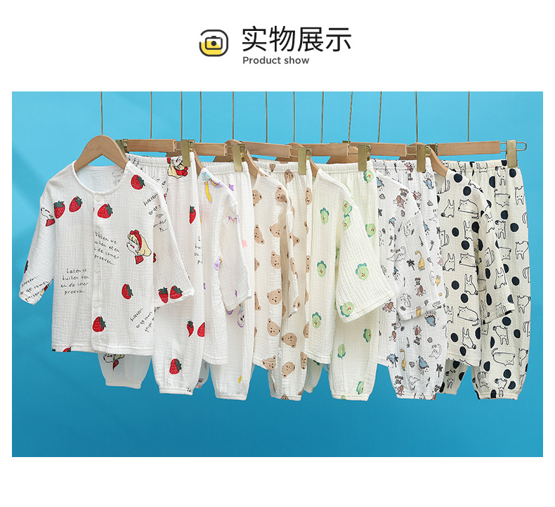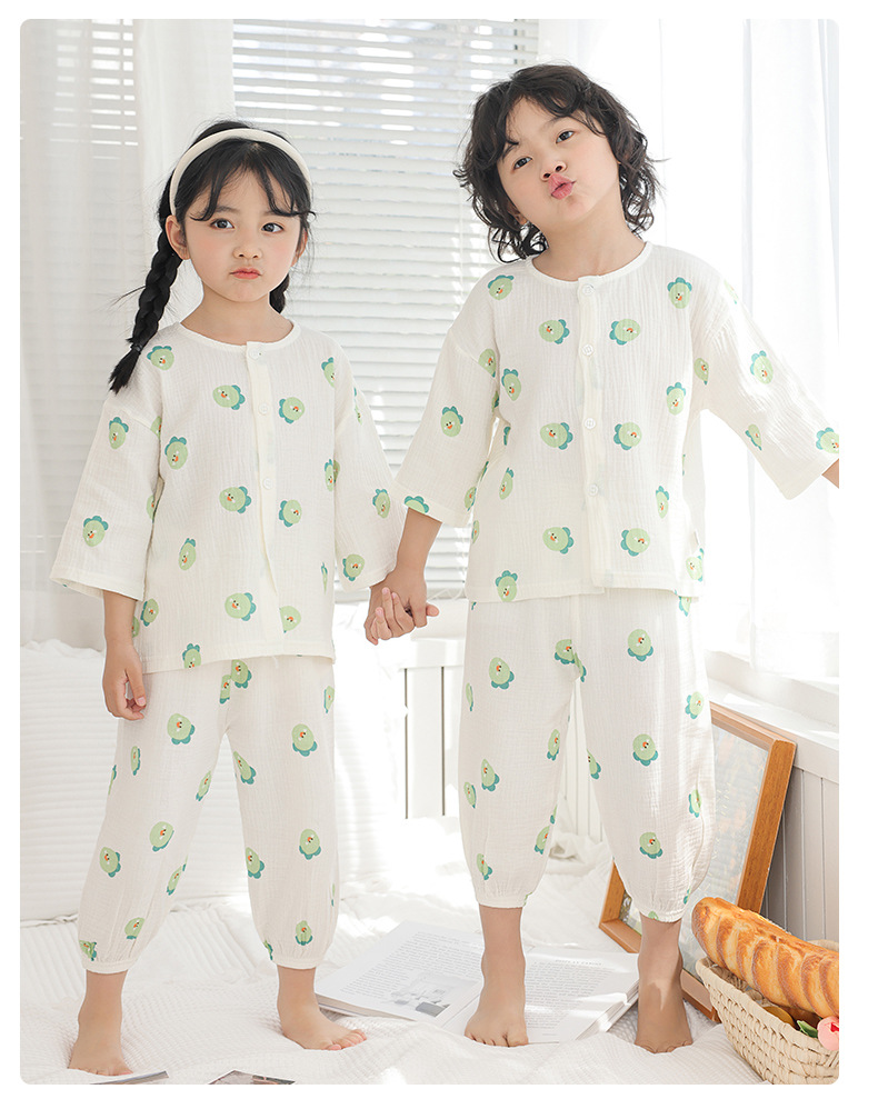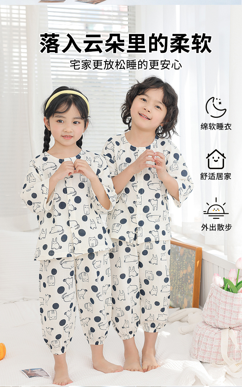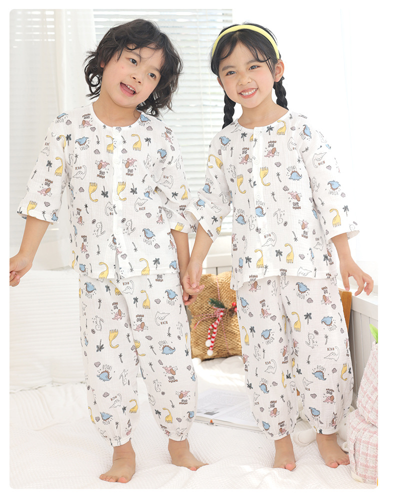 儿童棉纱布家居服套装纯棉春夏休闲女男宝宝童装批发睡衣空调服