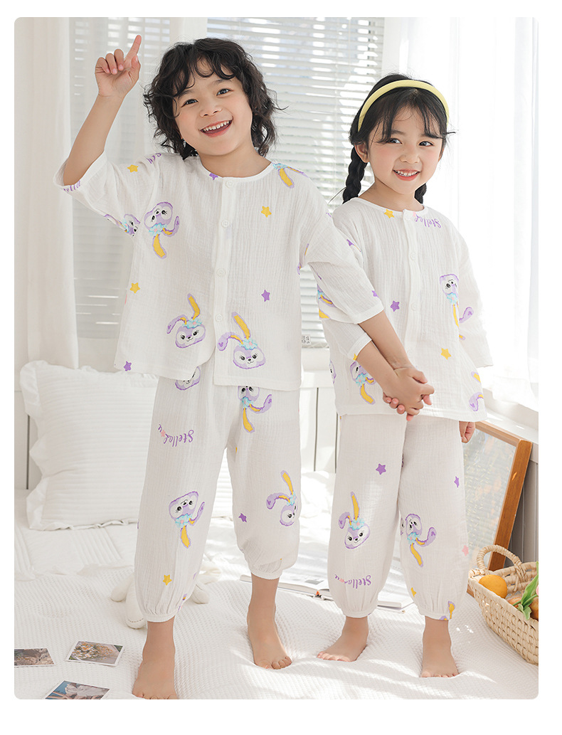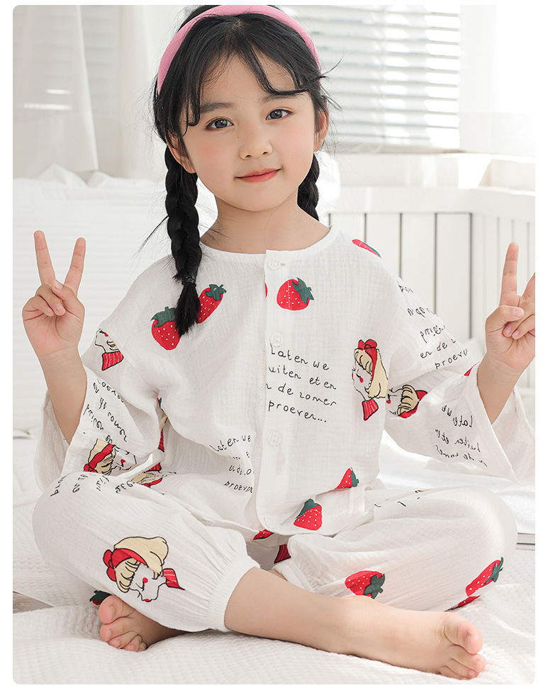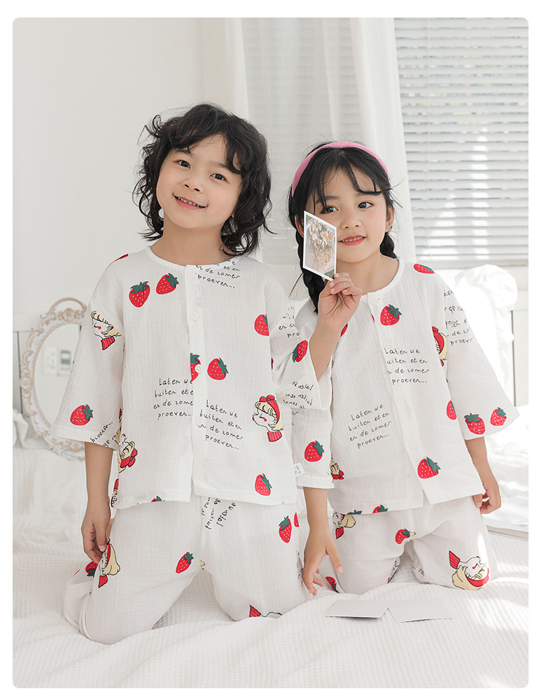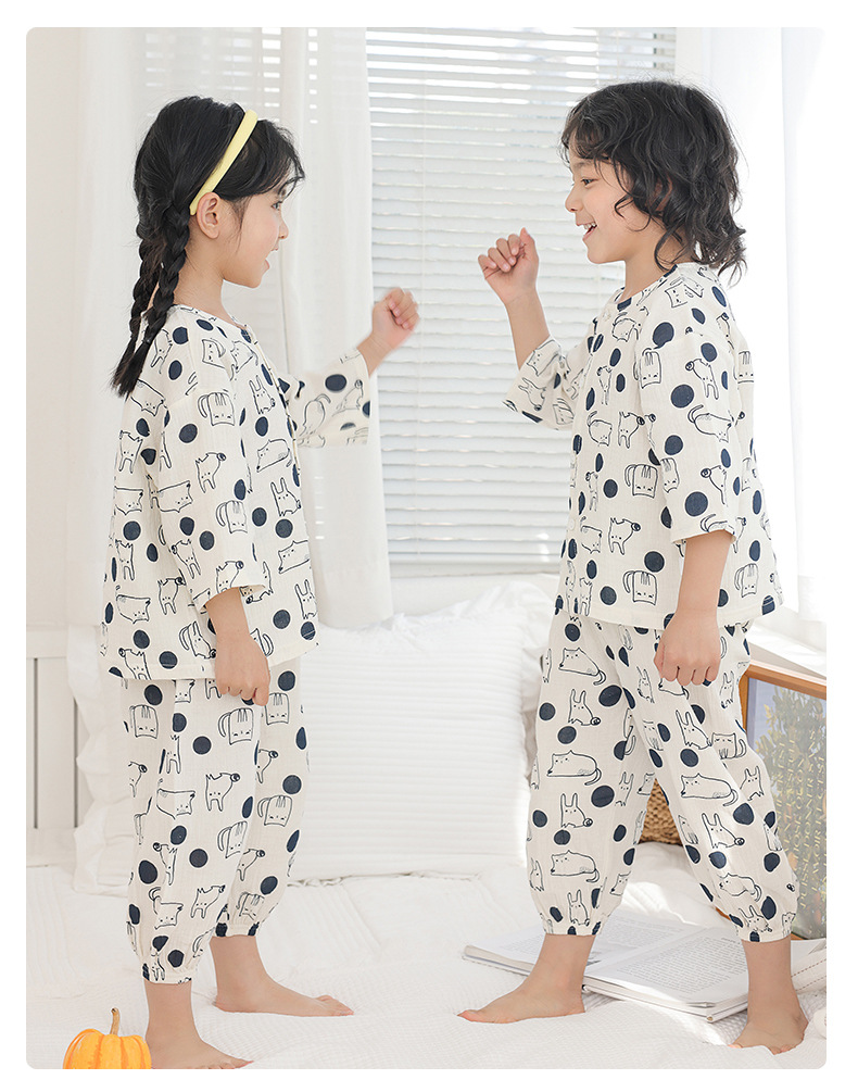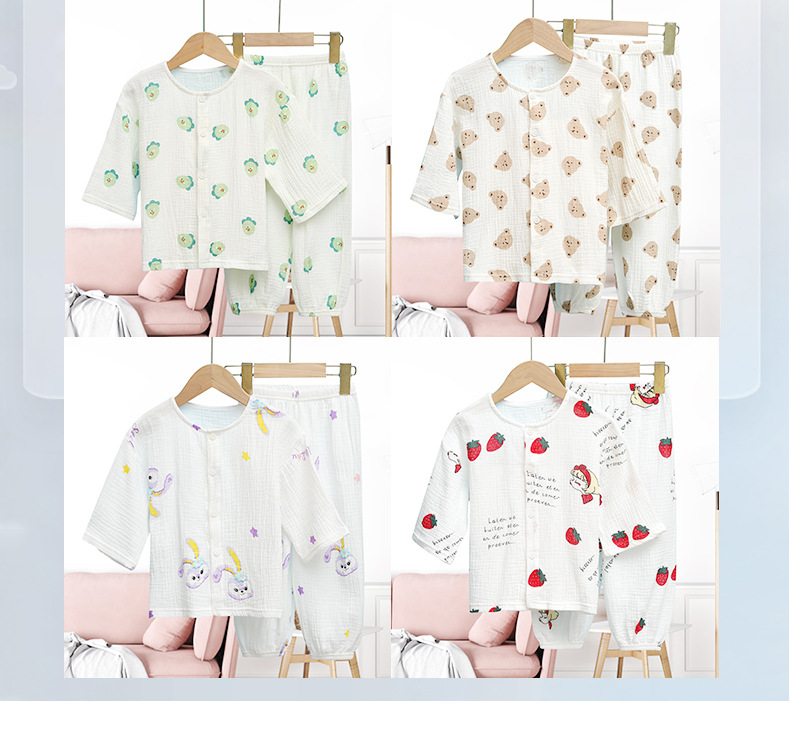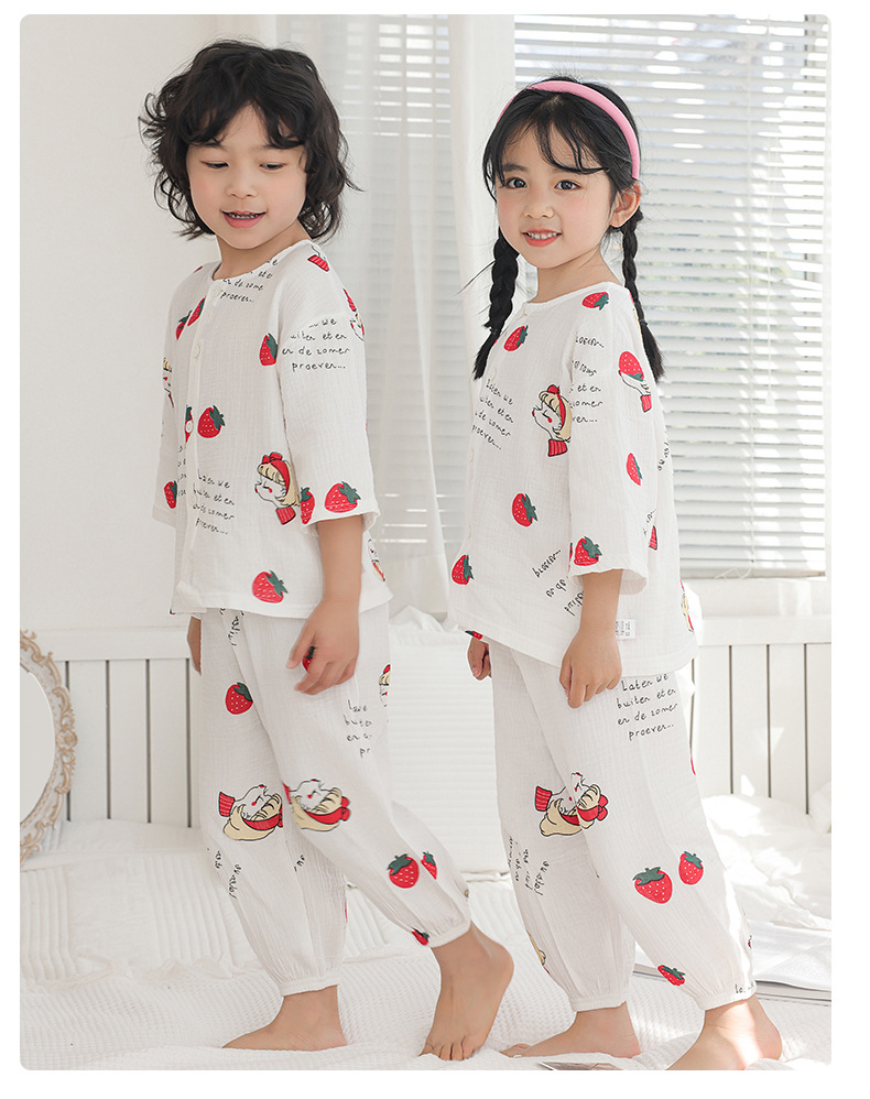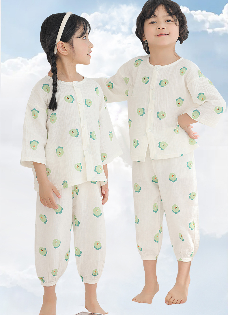 儿童棉纱布家居服套装纯棉春夏休闲女男宝宝童装批发睡衣空调服