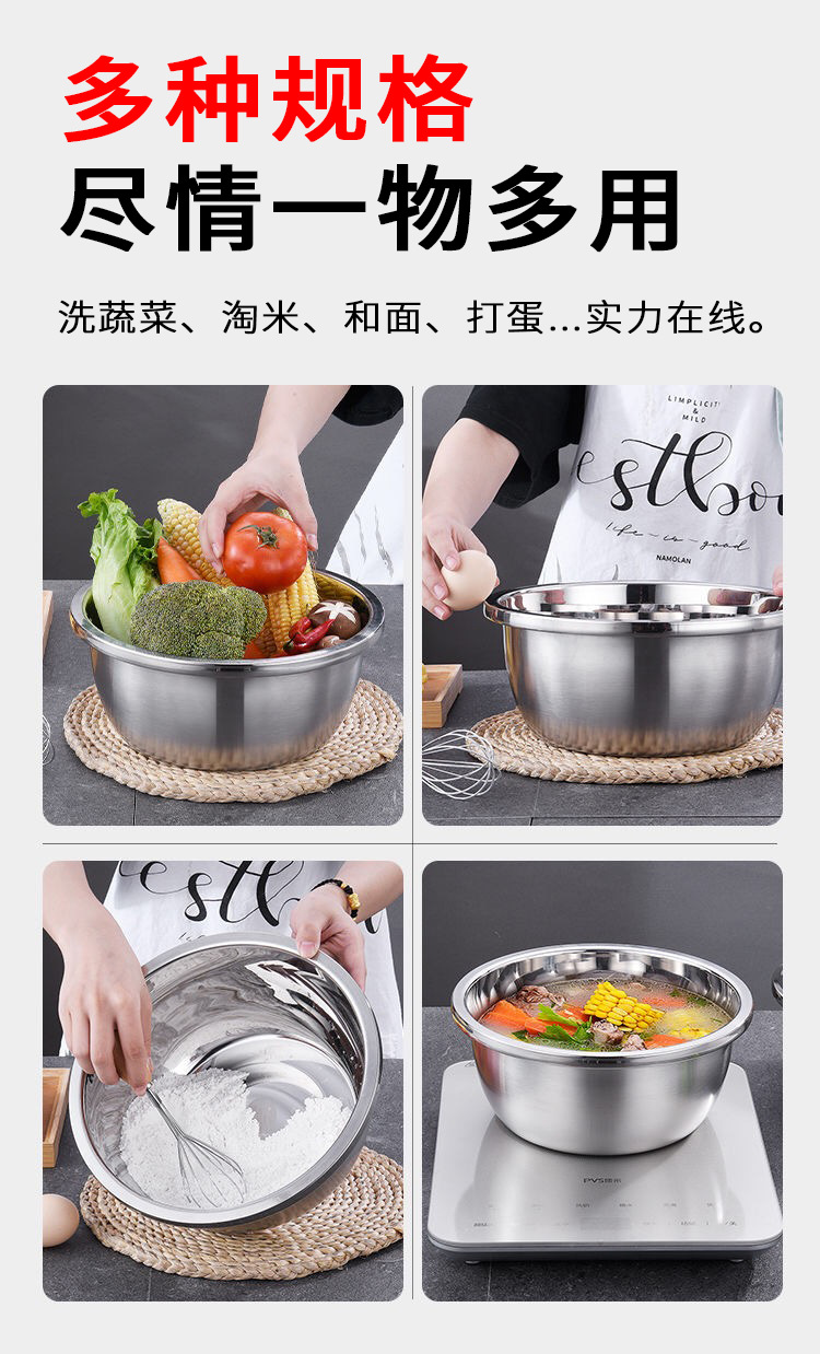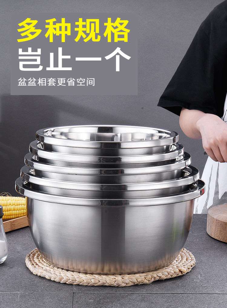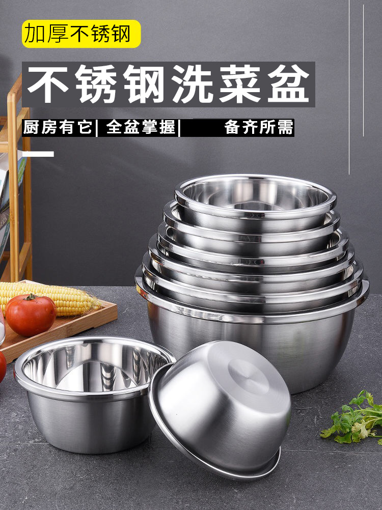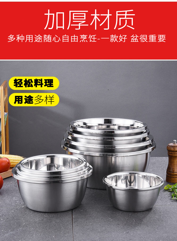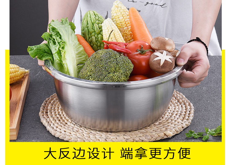 特厚无磁大反边不锈钢小边调料缸盆子厨房加深洗菜沙拉盆水盆面盆